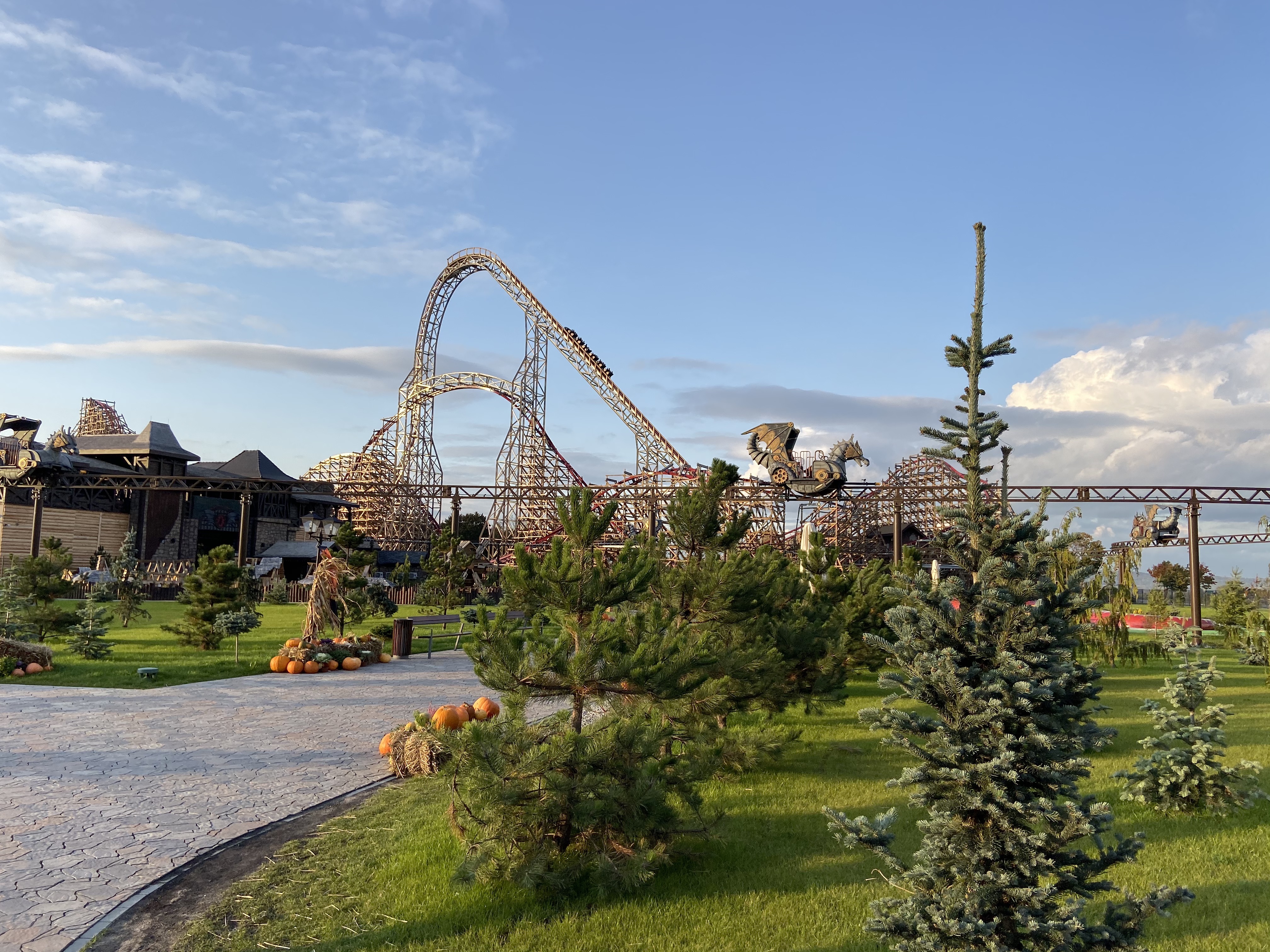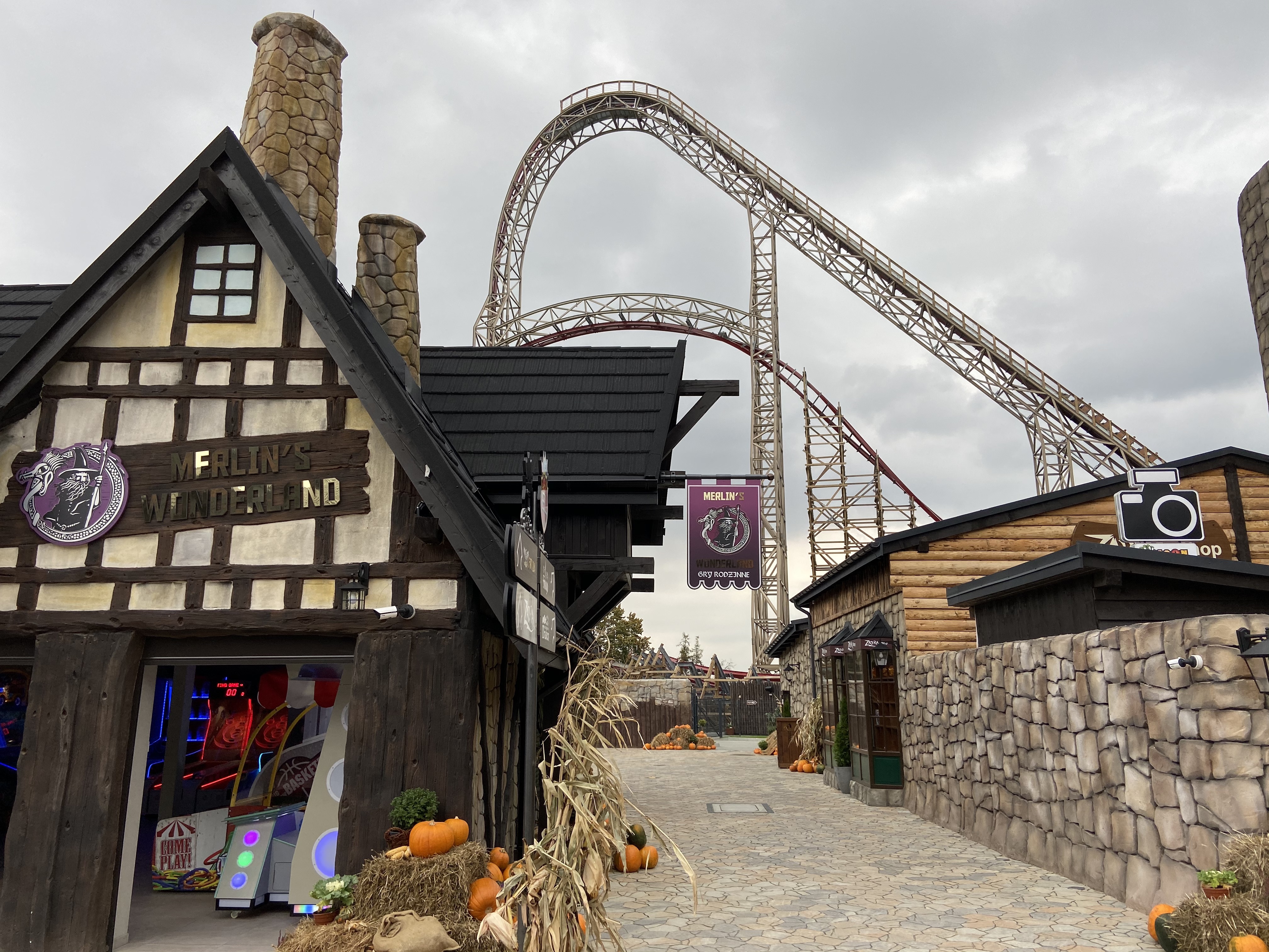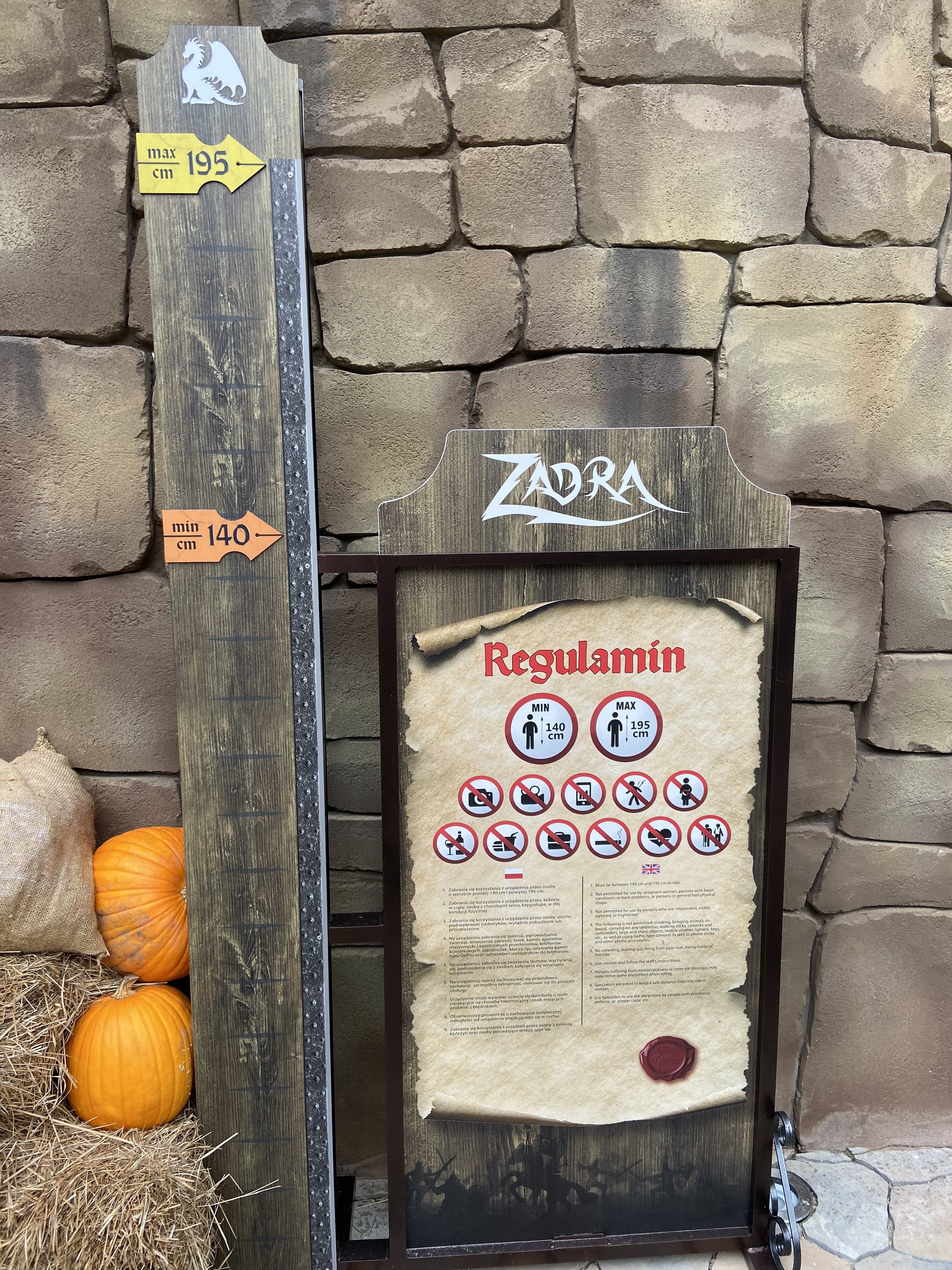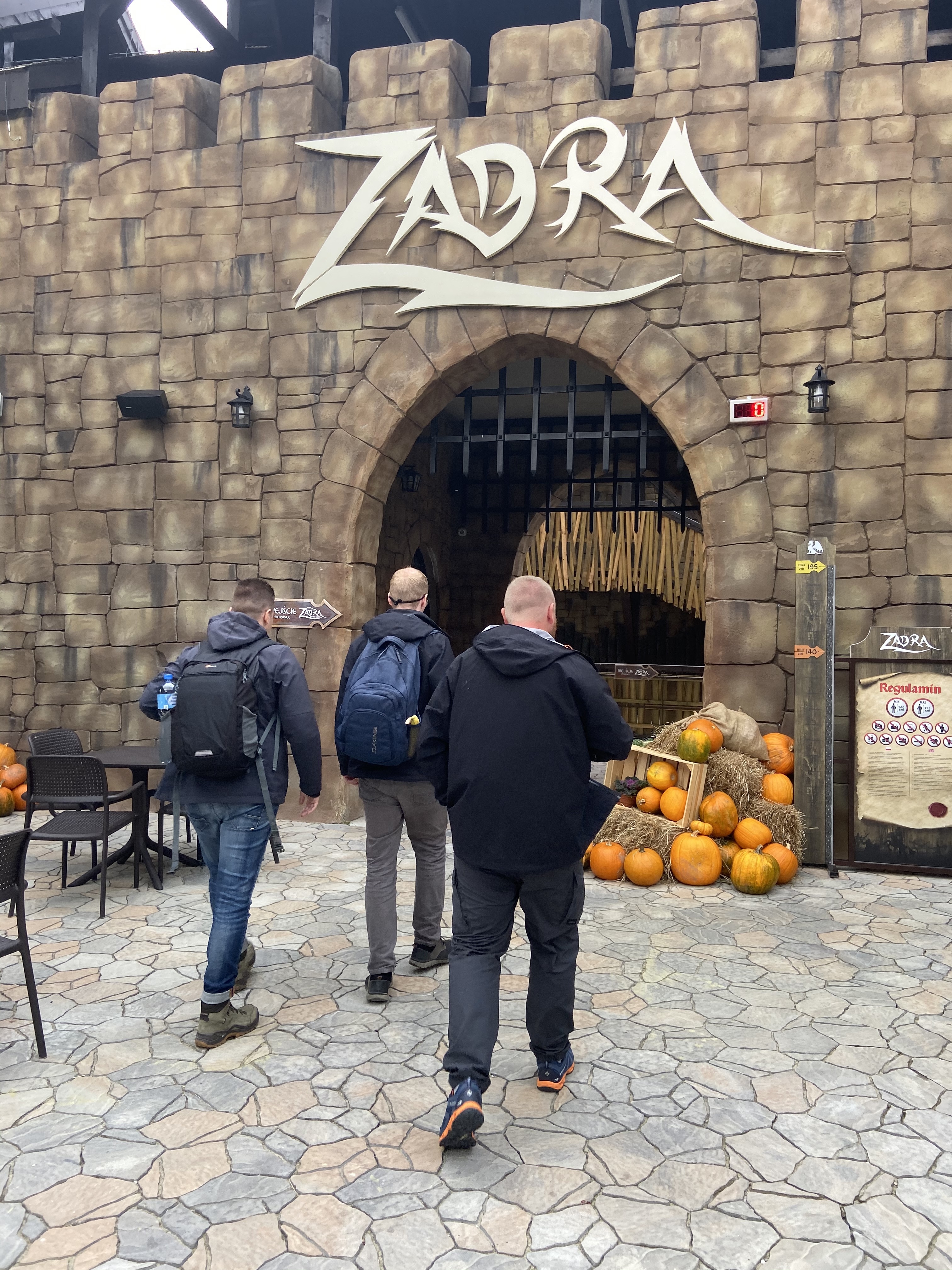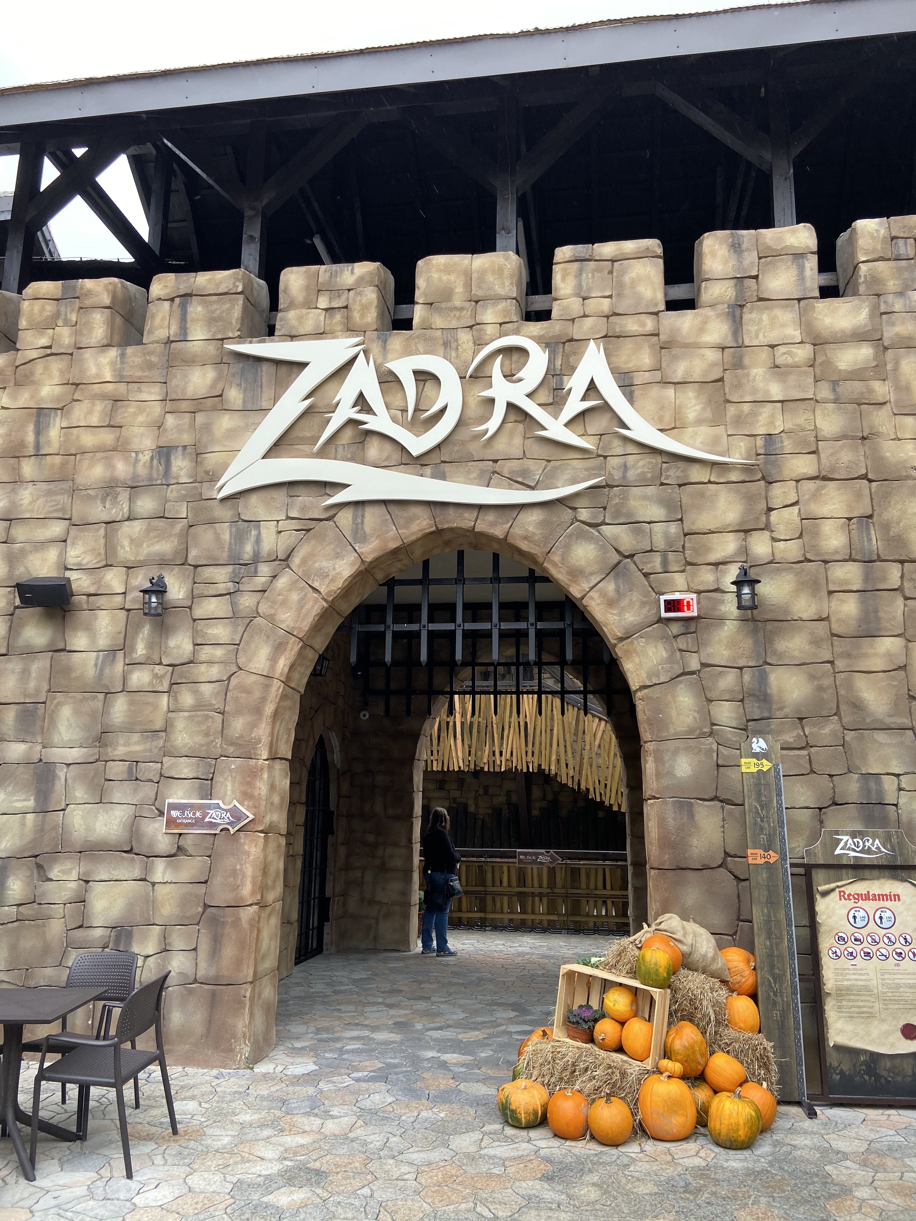 Um zum Eingang von Zadra zu gelangen muss man aktuell bis ganz ans Ende des aktuellen Parkareals gehen. In der Drachen Zone, die komplett im letzten Jahr aus dem Boden gestampft wurde gibt es drei Achterbahnen, ein Kinderkarussell, eine Hochbahn und ein komplettes auf Mittelalter thematisiertes Dorf mit SB-Restaurant, Toiletten, Theater, Shops, Games Of Chance, Daddelhalle und Erste Hilfe Station.