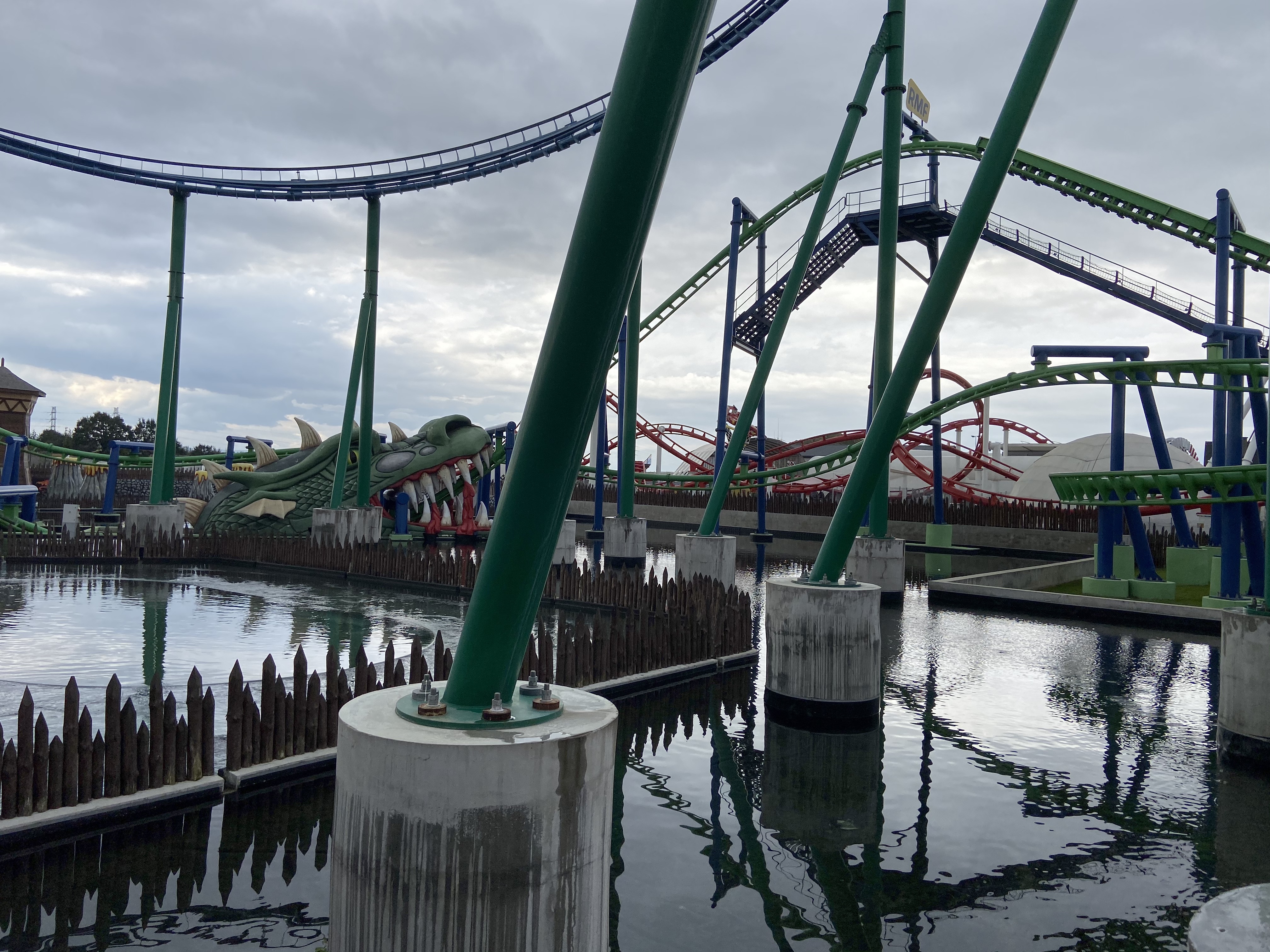 Boomerang, Energus Coaster bis schließlich Hyperion den Abschluss dieser Parkflanke bildet. Das macht dann schon Spaß, entlang dieser Straße Richtung Parkplatz zu fahren und mehr als einen Sneak Peak zu erhaschen.