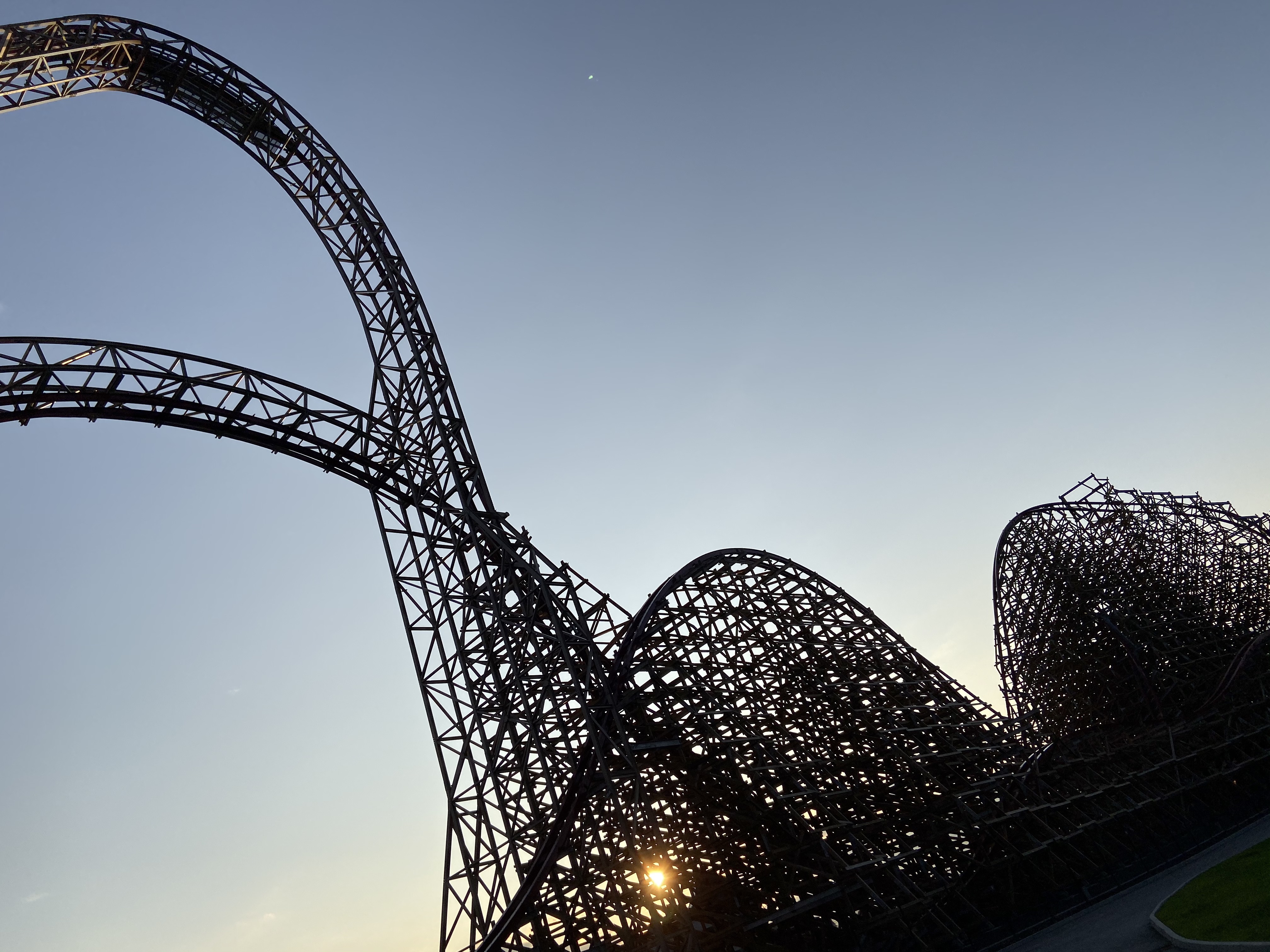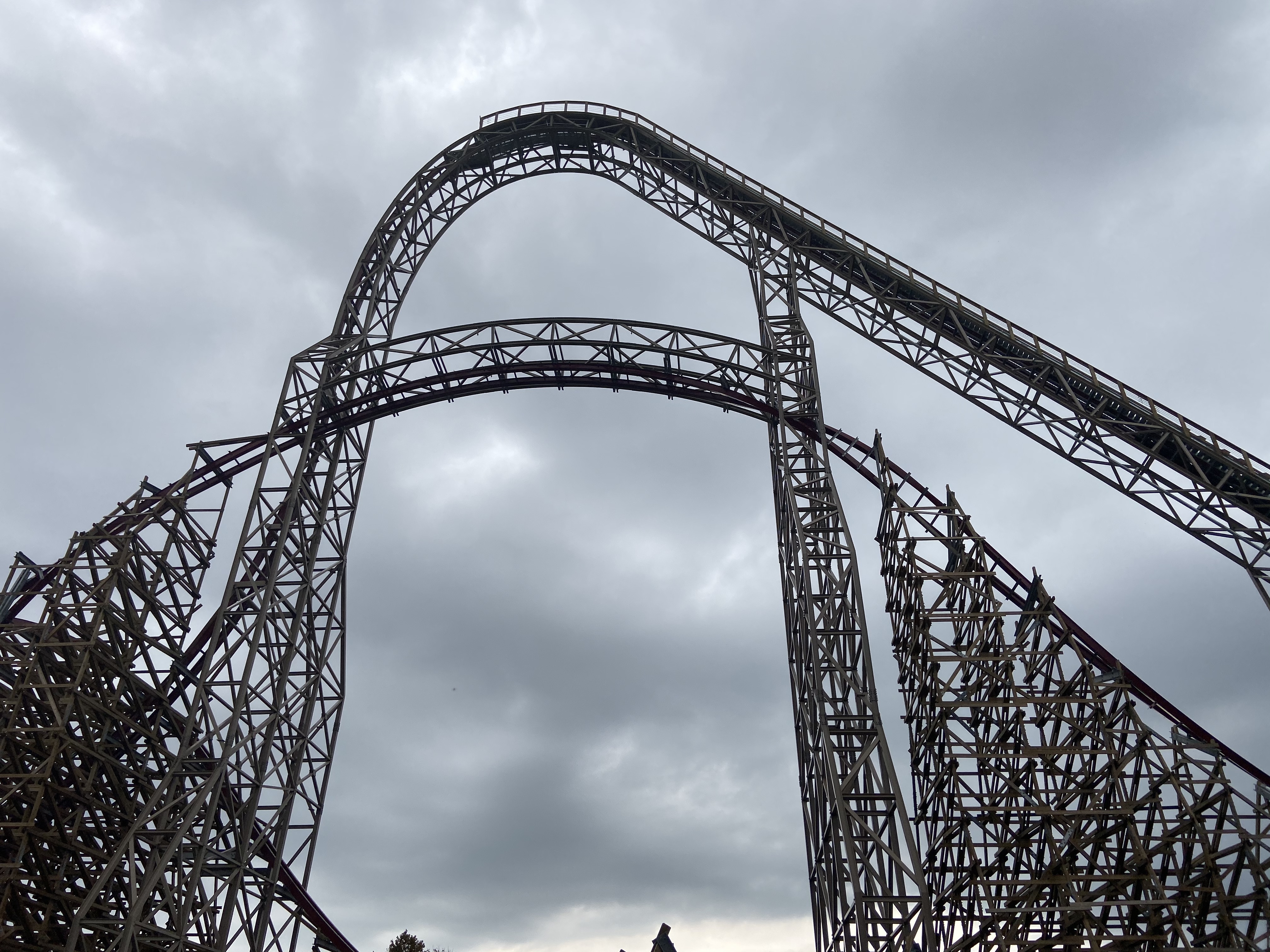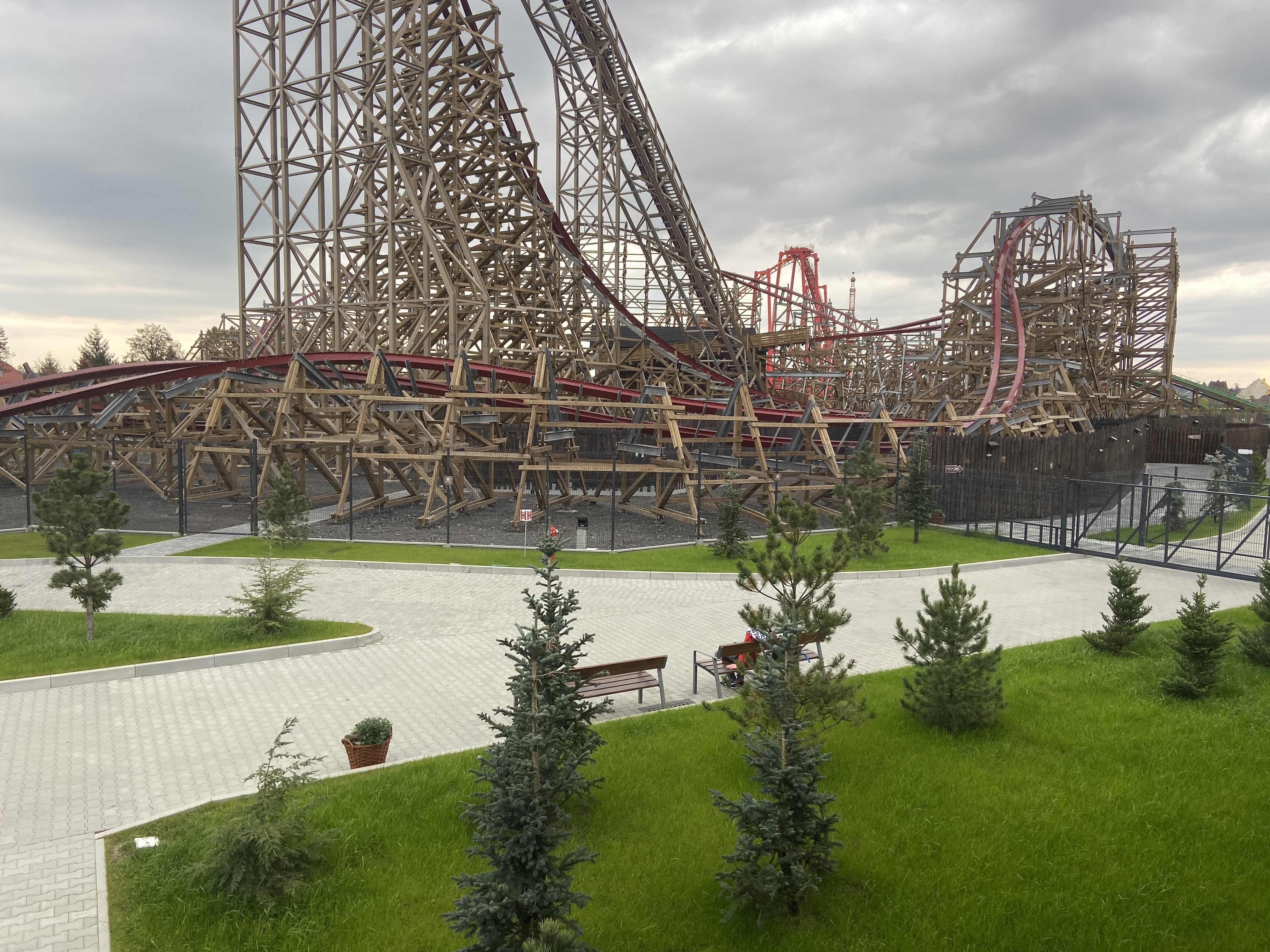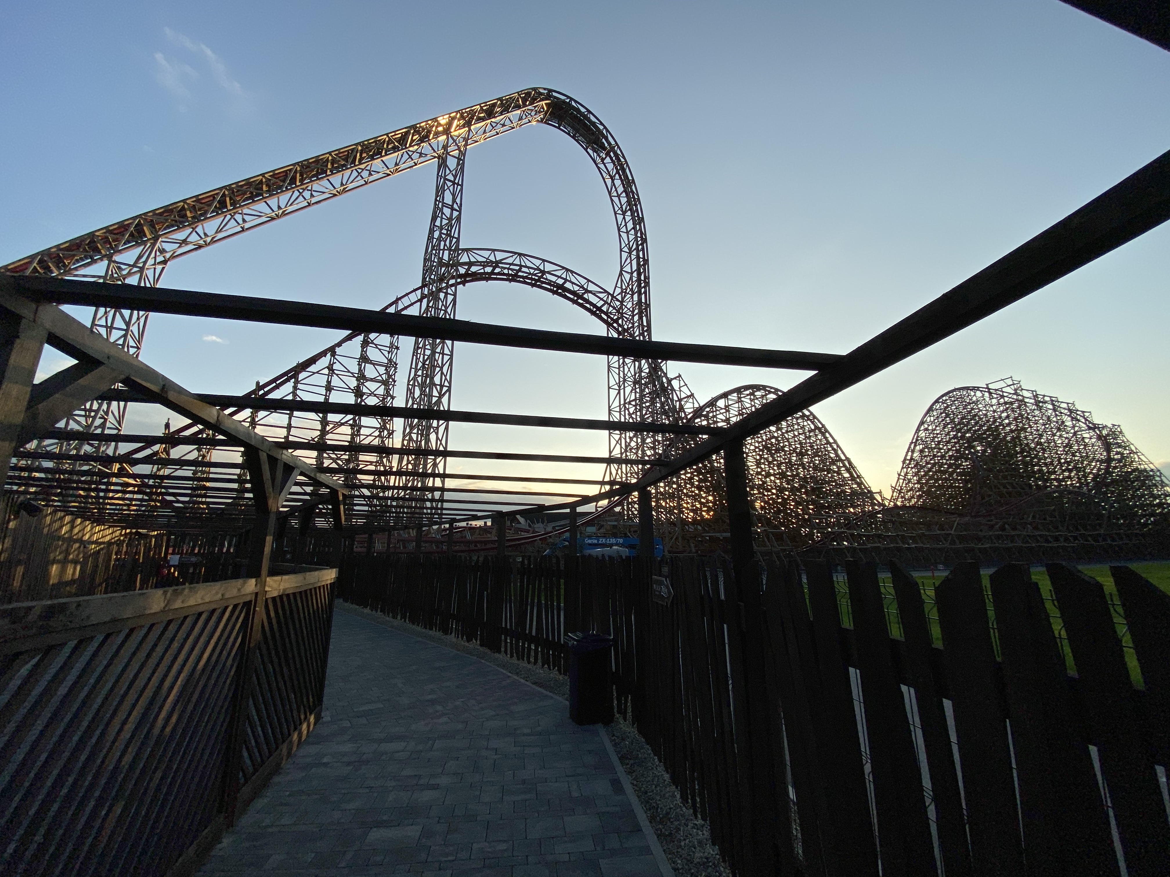 Wooden Coaster - wobei man feststellen muss - es ist Hybrid mit Stahl - also nicht alles nur Wooden Coaster. Aber das Holz ist hier schon hoch gestapelt und schaut verdammt lecker aus.