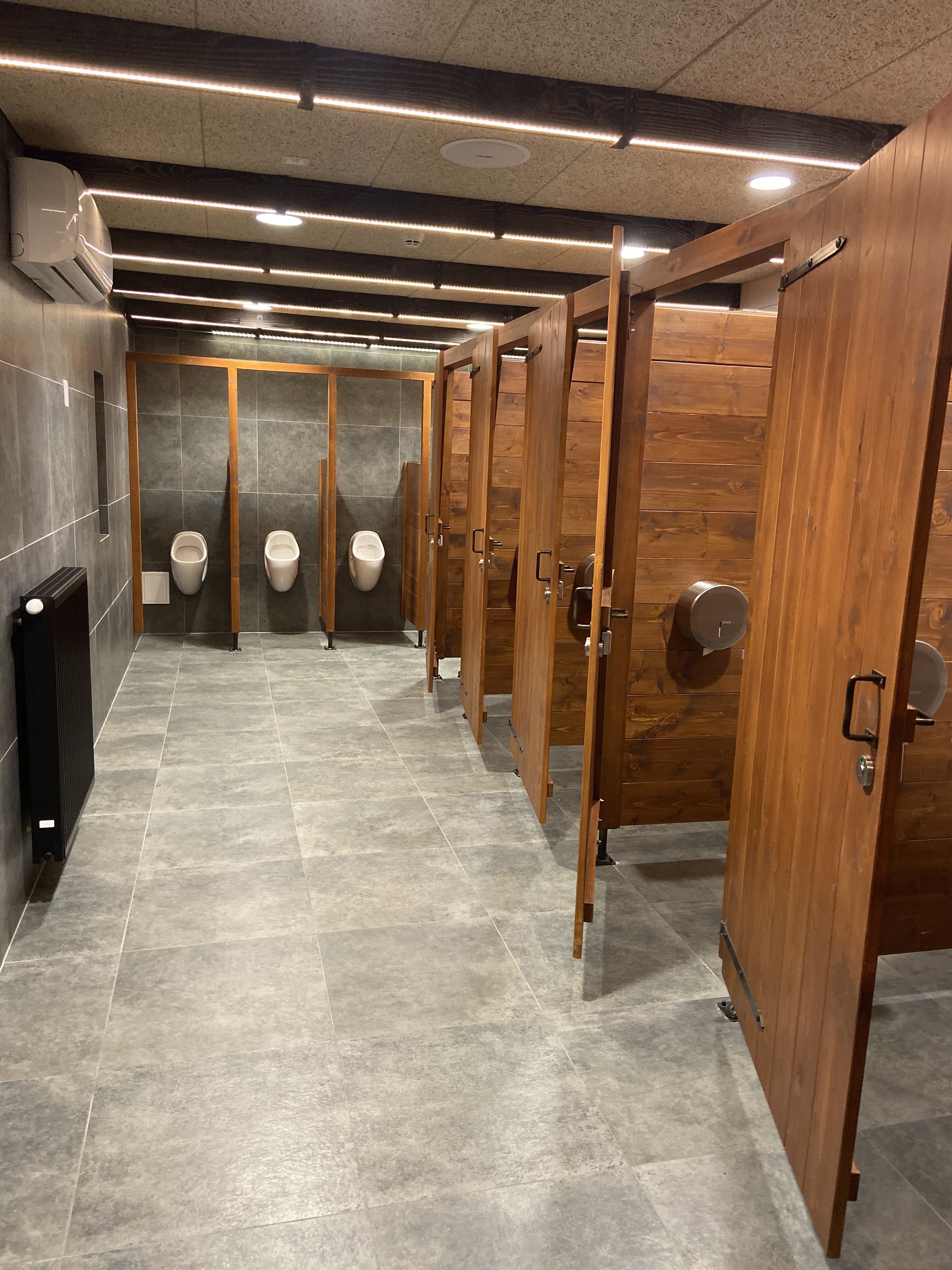 Über allen vier Zugängen leuchten Großnbildfernseher, die noch einmal die Dos und Donots erläutern.
