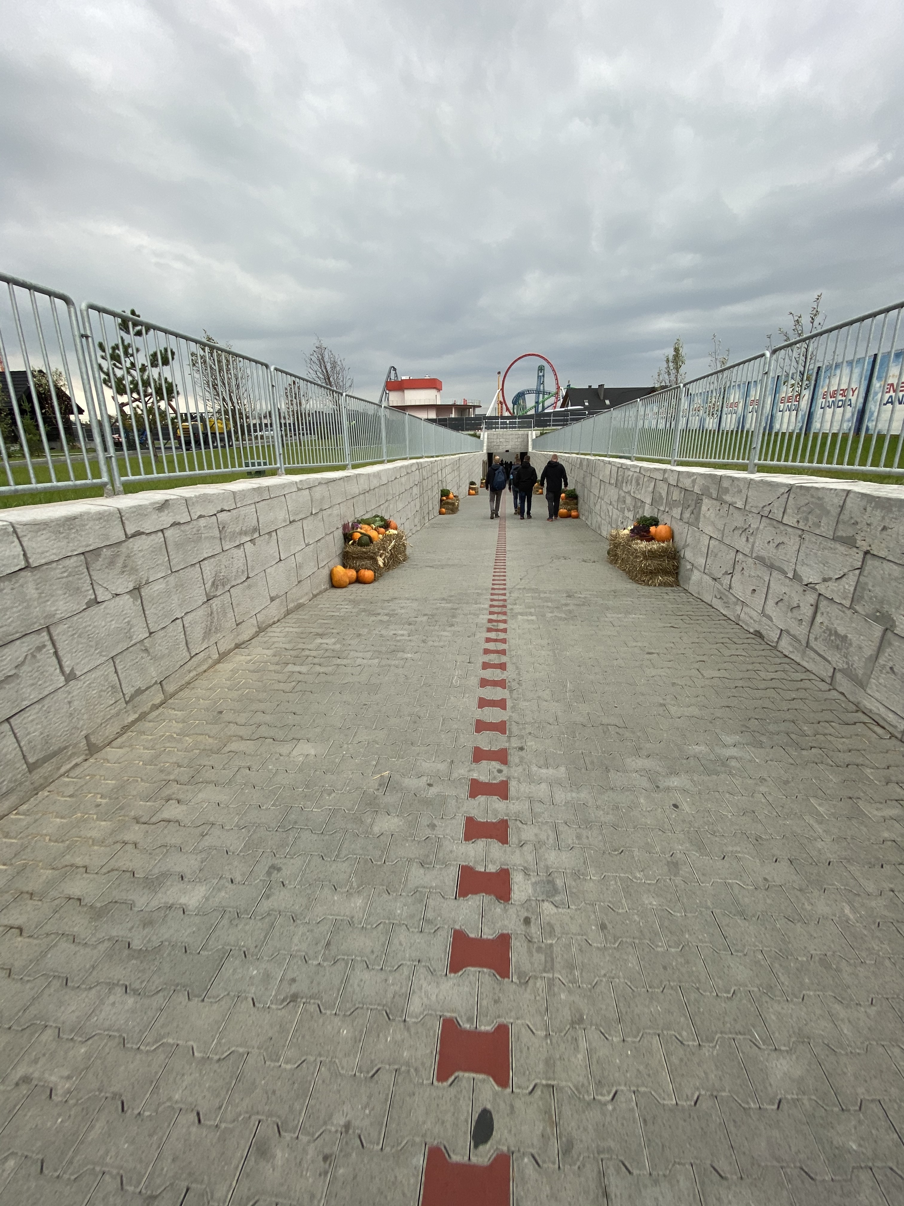 Durchquert man den Eingang zu Zadra beginnt der bei der Wiederholung nervige Teil der Achterbahnfahrt. Marvin hat gezählt: Bis zum Einstieg in den Zug sind 1.600 Schritte zu gehen. Es kommt einem ewig vor. Man geht ein wenig auf ein wenig ab und läuft dann Zickzack unter dem Lifthill um die Station zu erreichen. Interessant ist, dass so einige Coaster ziemlich nah an einer Hauptverkehrsstraße parallel geführt wurden als Begrenzung des Parks - da liegt Zadra, daran schließen sich an Mayan Roller Coaster, Viking Roller Coaster,
