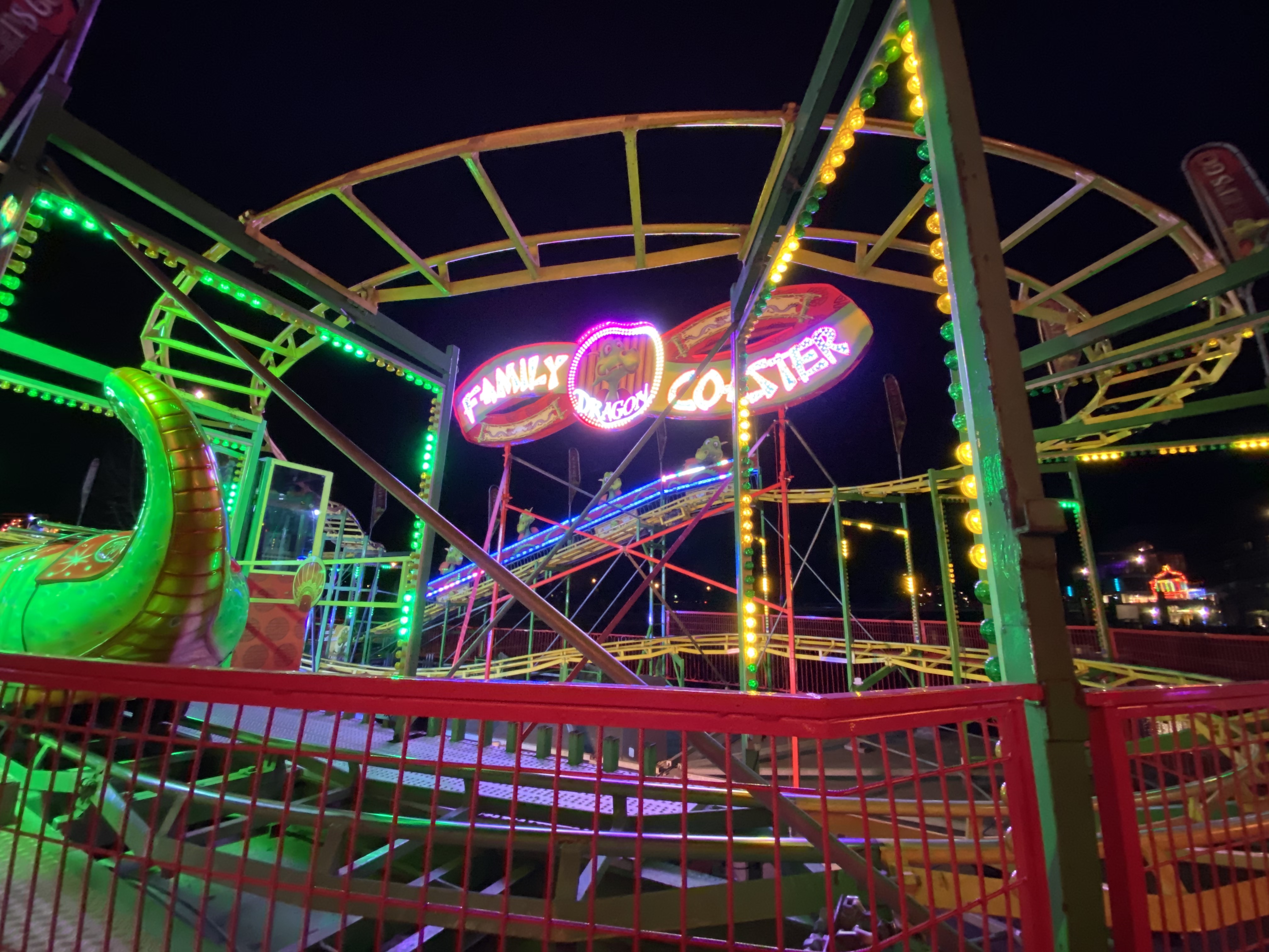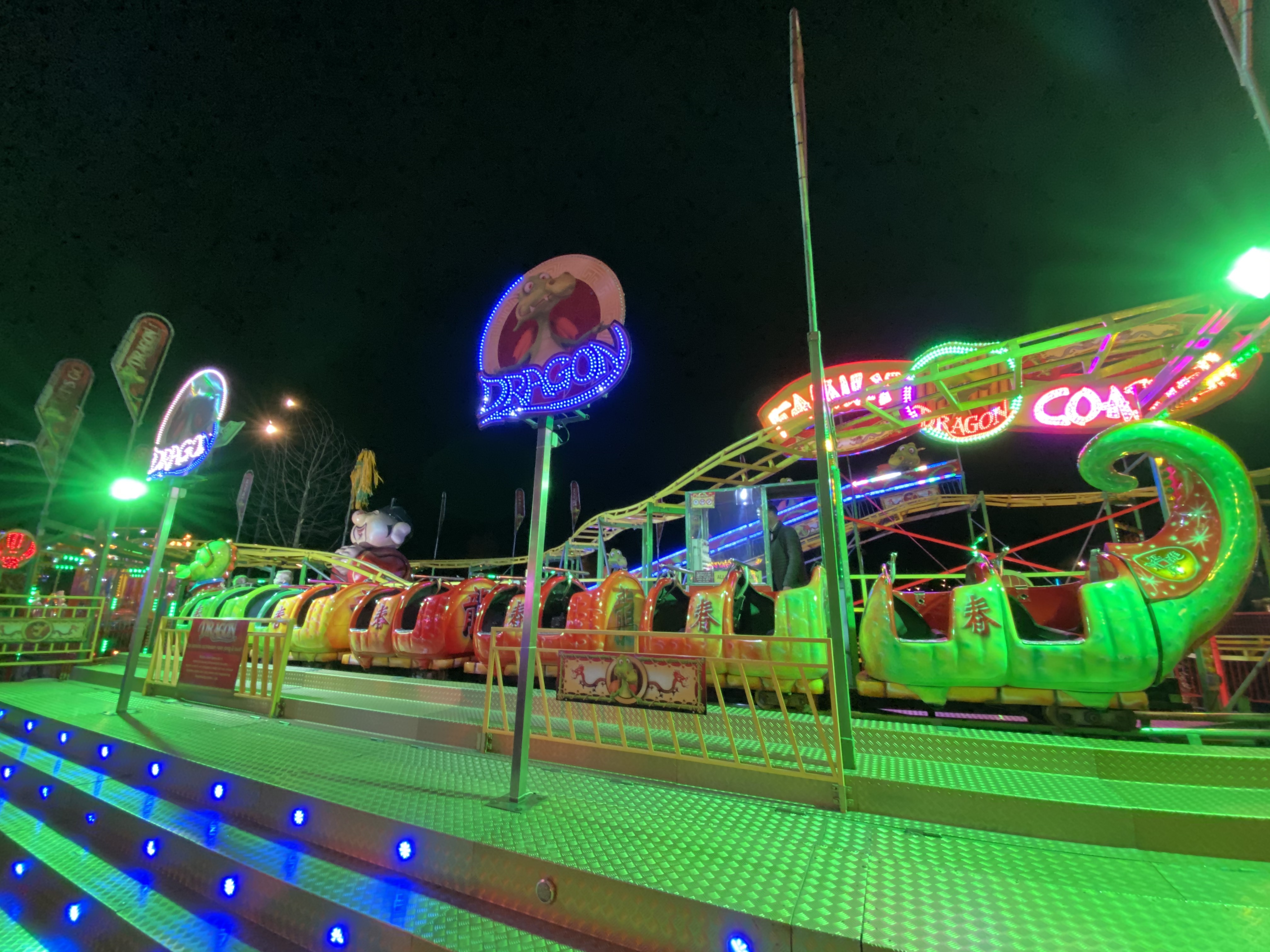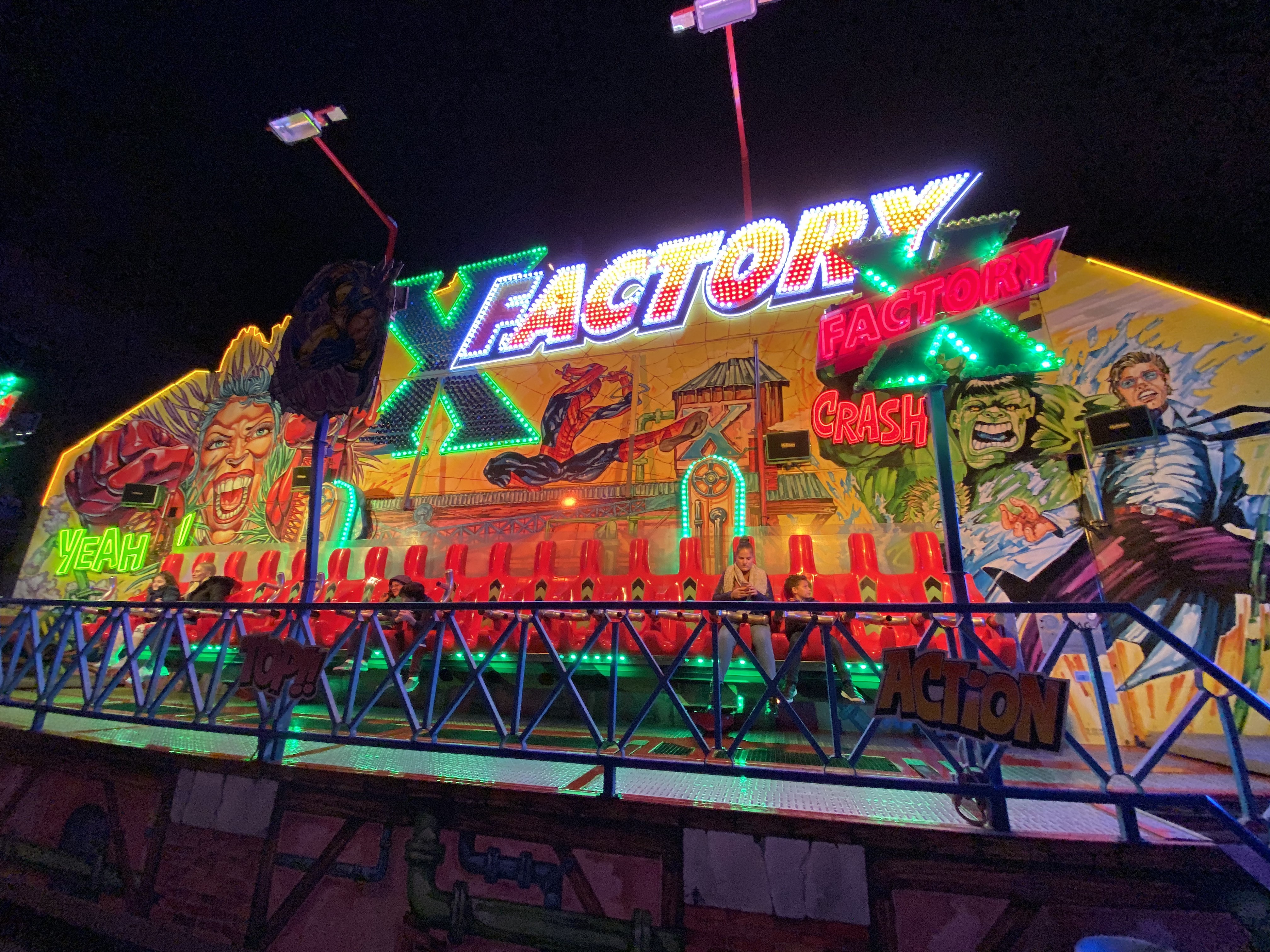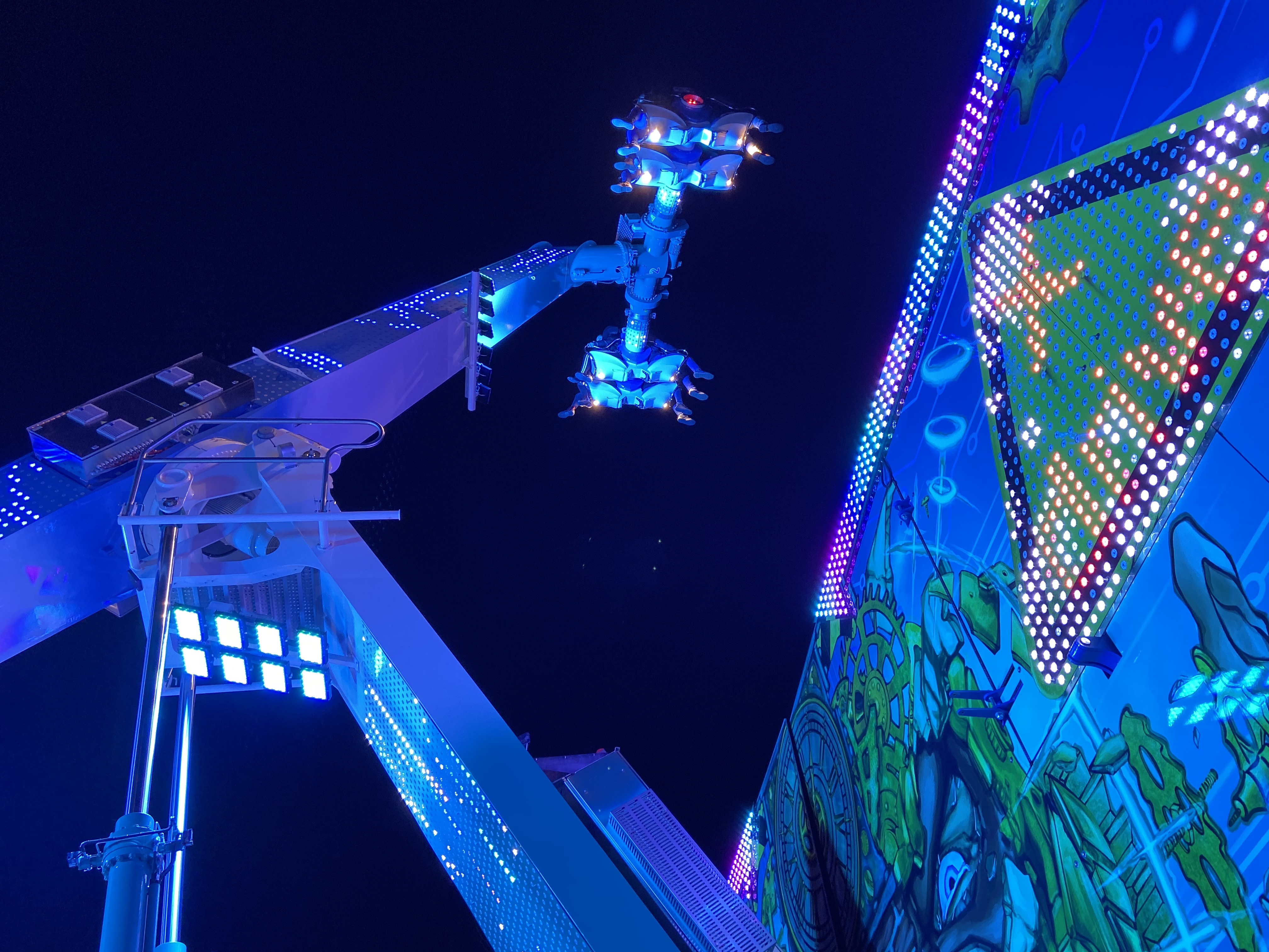 Hauptaugenmerk lag auf der KMG-Neuheit X-Drive, die hier unter dem Namen Dance-Mix unter dem Schausteller Otten den Startplatz der Kirmes am Bahnhof markiert.