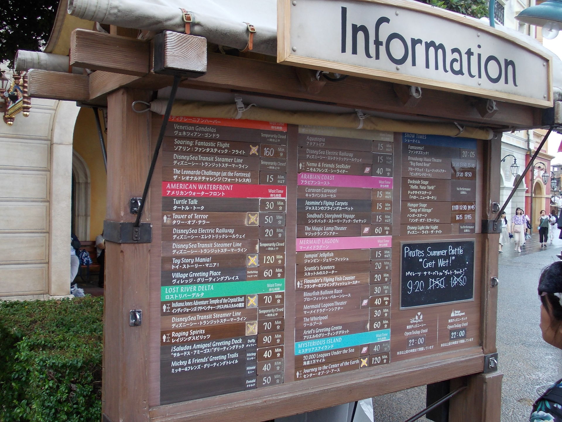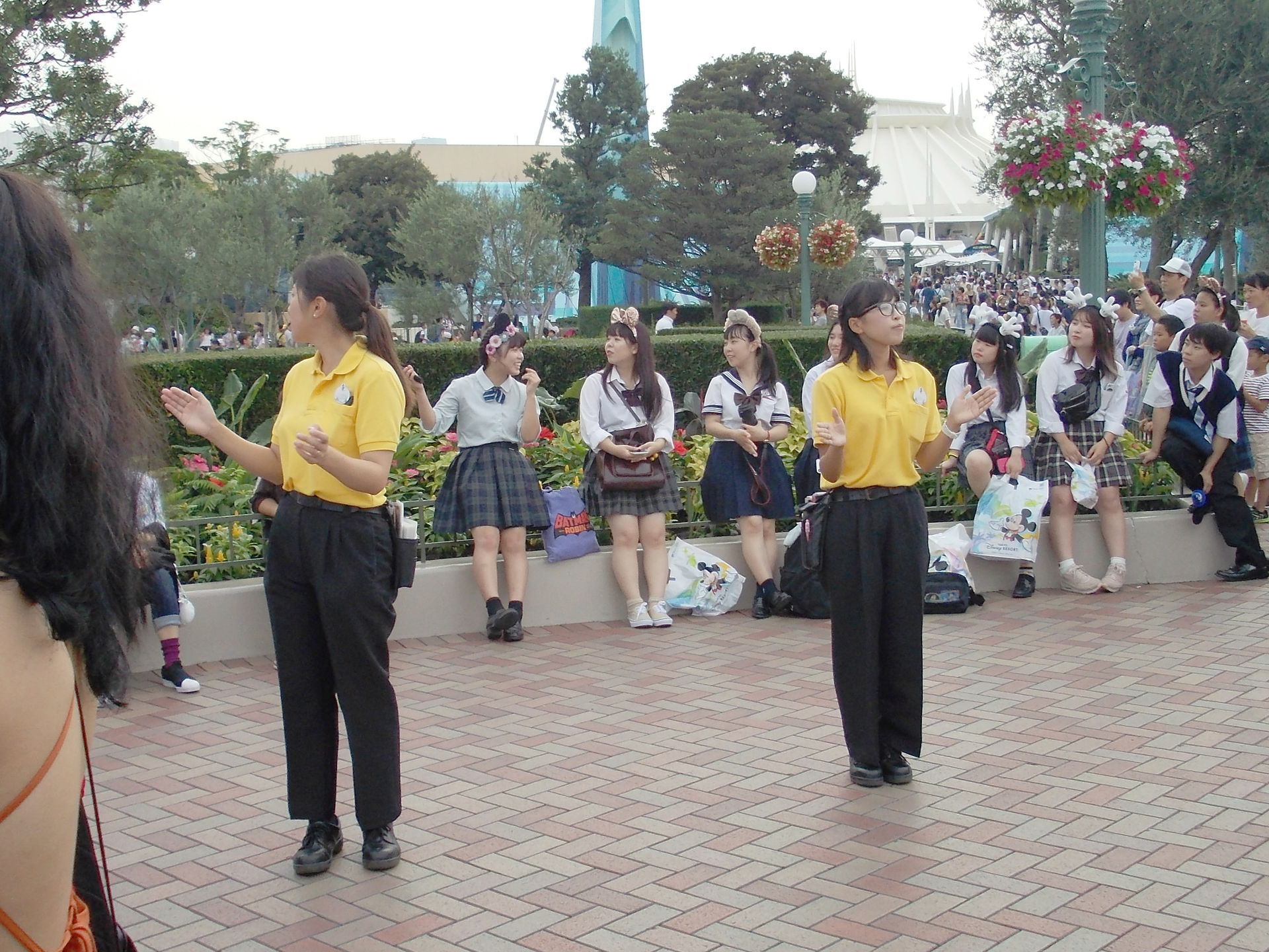 Am Eingang jeglicher Schlangen wird oft recht sinnlos gefragt, wie viele Personen die Gruppe habe – Konsequenzen hat das dort keine. Überhaupt sind überall wahnsinnig viele Castmember da (was für Japan allgemein aber üblich ist – an Servicepersonal mangelt es selten), die dann alles und jeden regeln und dabei viel reden (oft auch ohne dass jemand zuhört). Dabei sind sie unglaublich höflich und freundlich, eher behutsam und lächeln ständig. Haben Sie mal Leerlauf, stehen sie rum und winken die Leute an – oder winken auch einfach mal nur so in die Gegend rein (was ein bisschen grenzdebil aussieht). Etwas bedauerlich: Rollen spielen sie nie. Im Tower of Terror ernst gucken und kurz angebunden sein – vergiss es. Das ist in Japan offensichtlich nicht machbar.