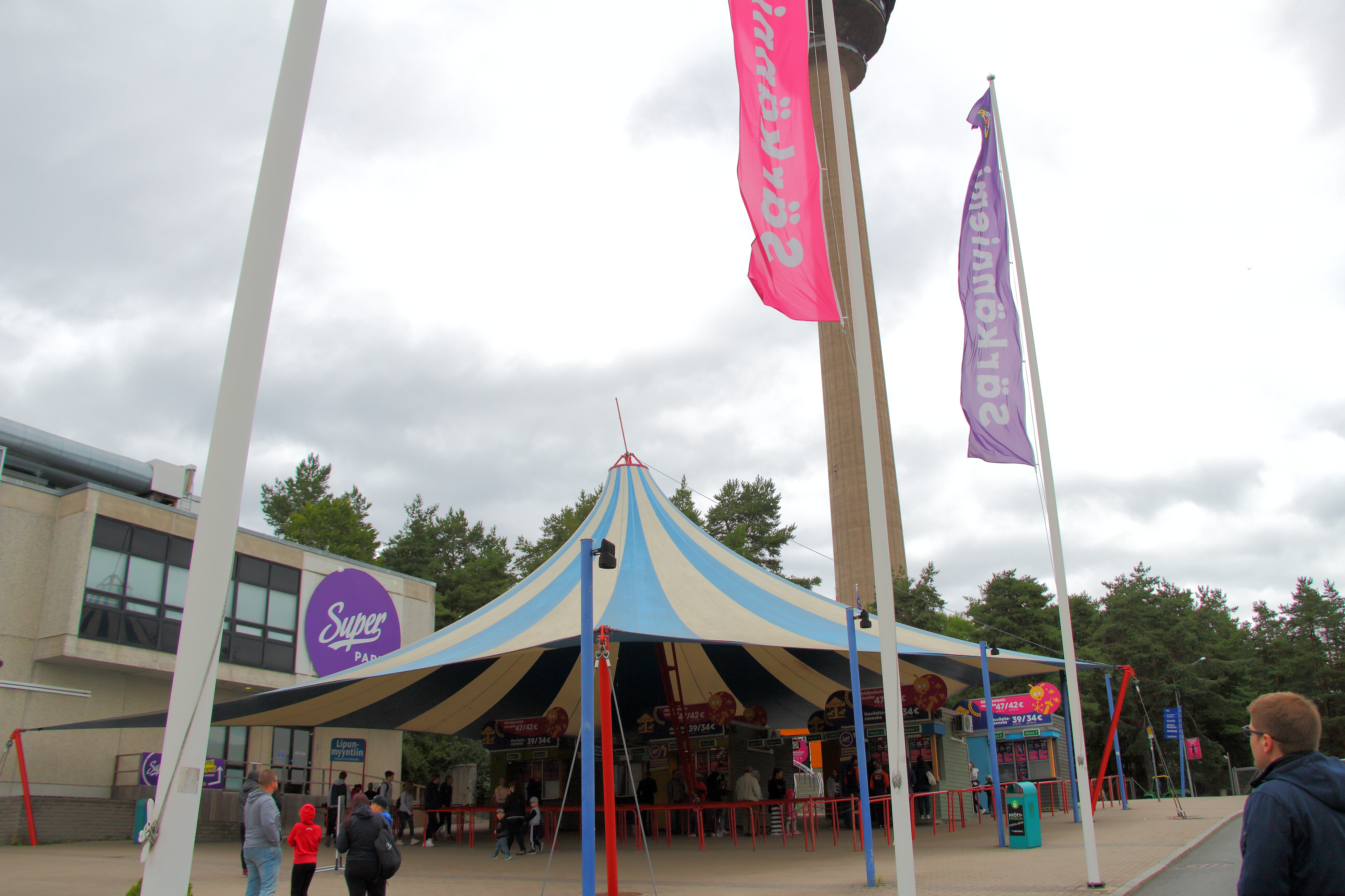 Aber beginnen wir von vorne auf der Halbinsel namens Särkänniemi. Ich finde das Logo mit dem eingebauten Turm sehr schick! Hier die schöne Parkvorstellung von Julian.