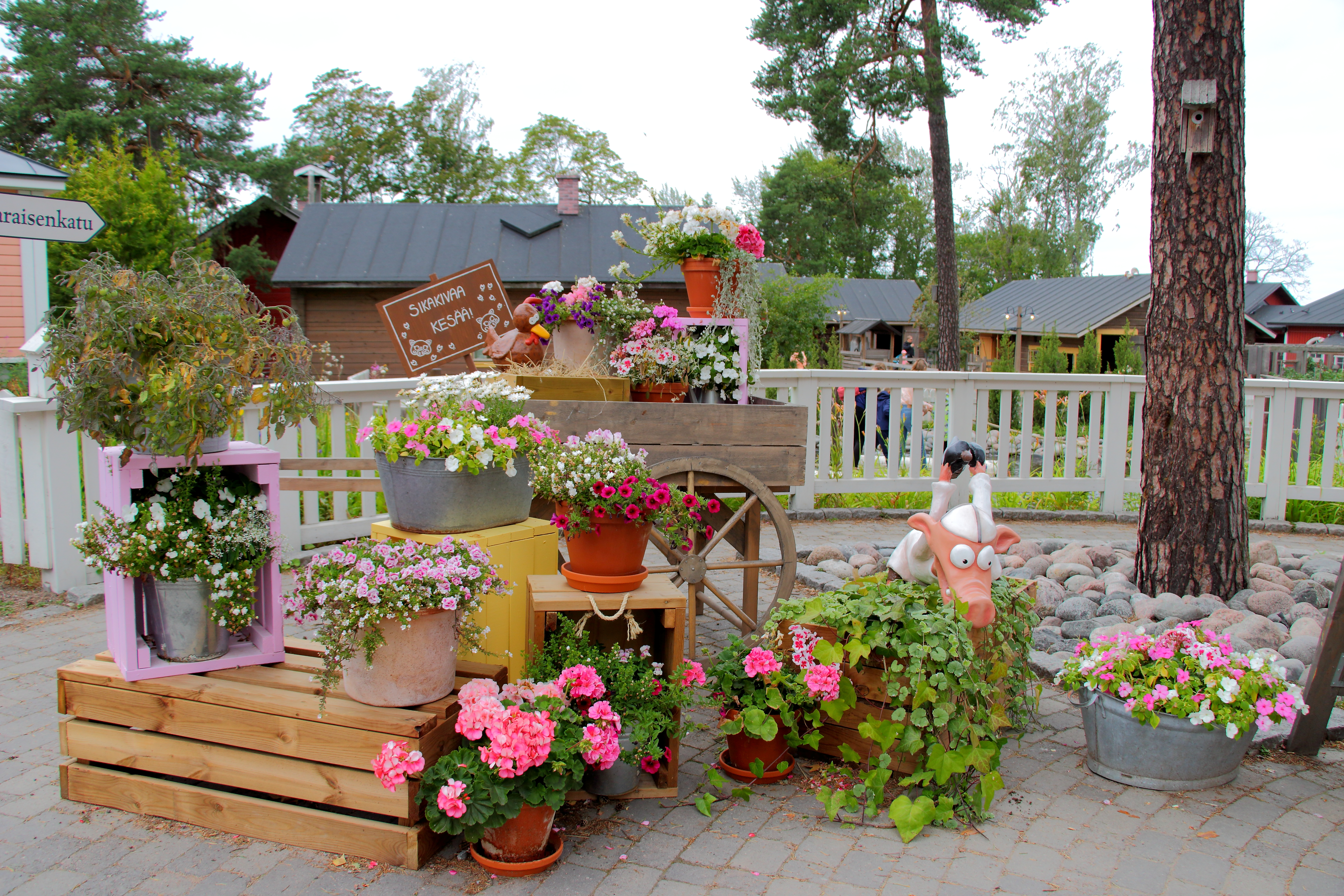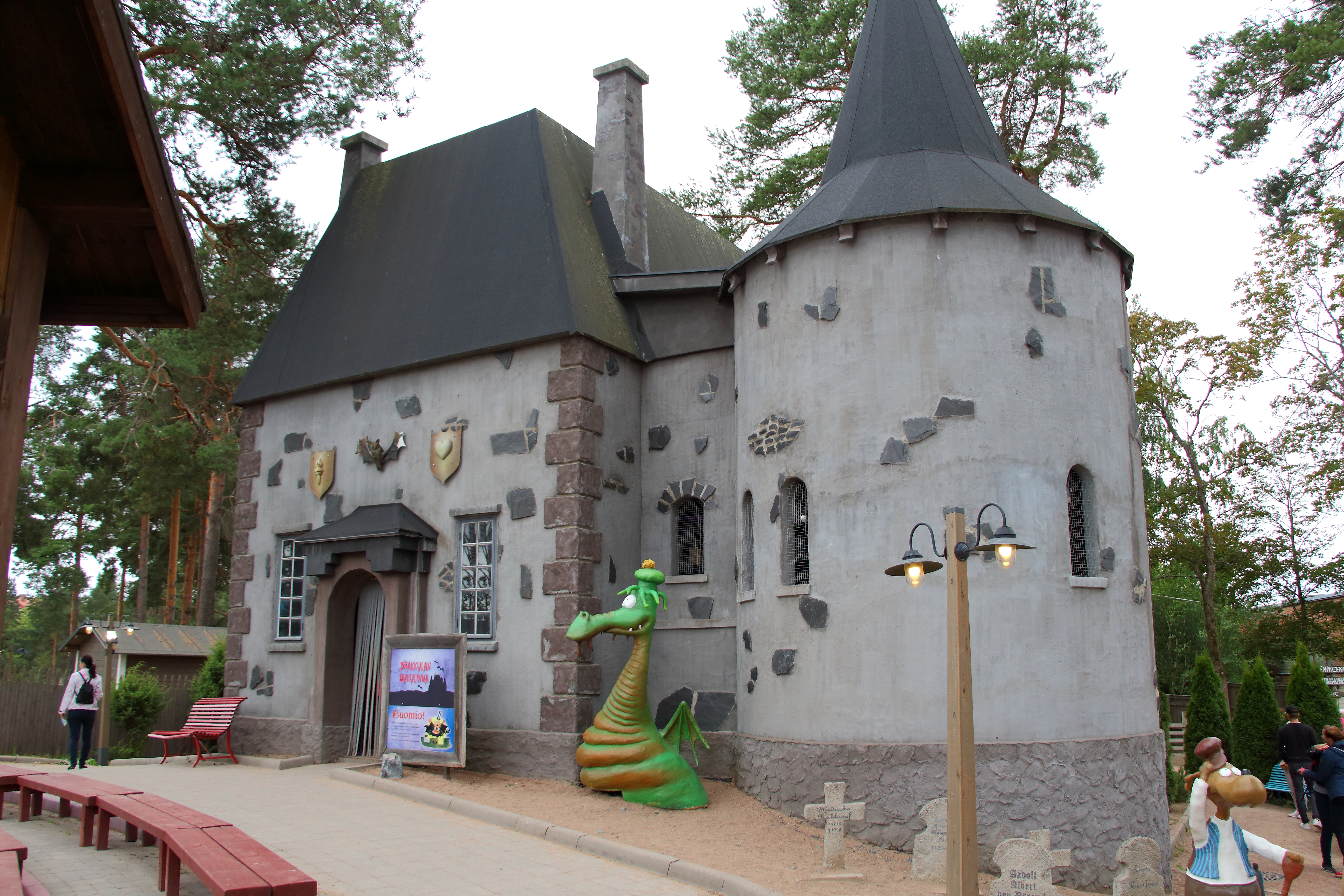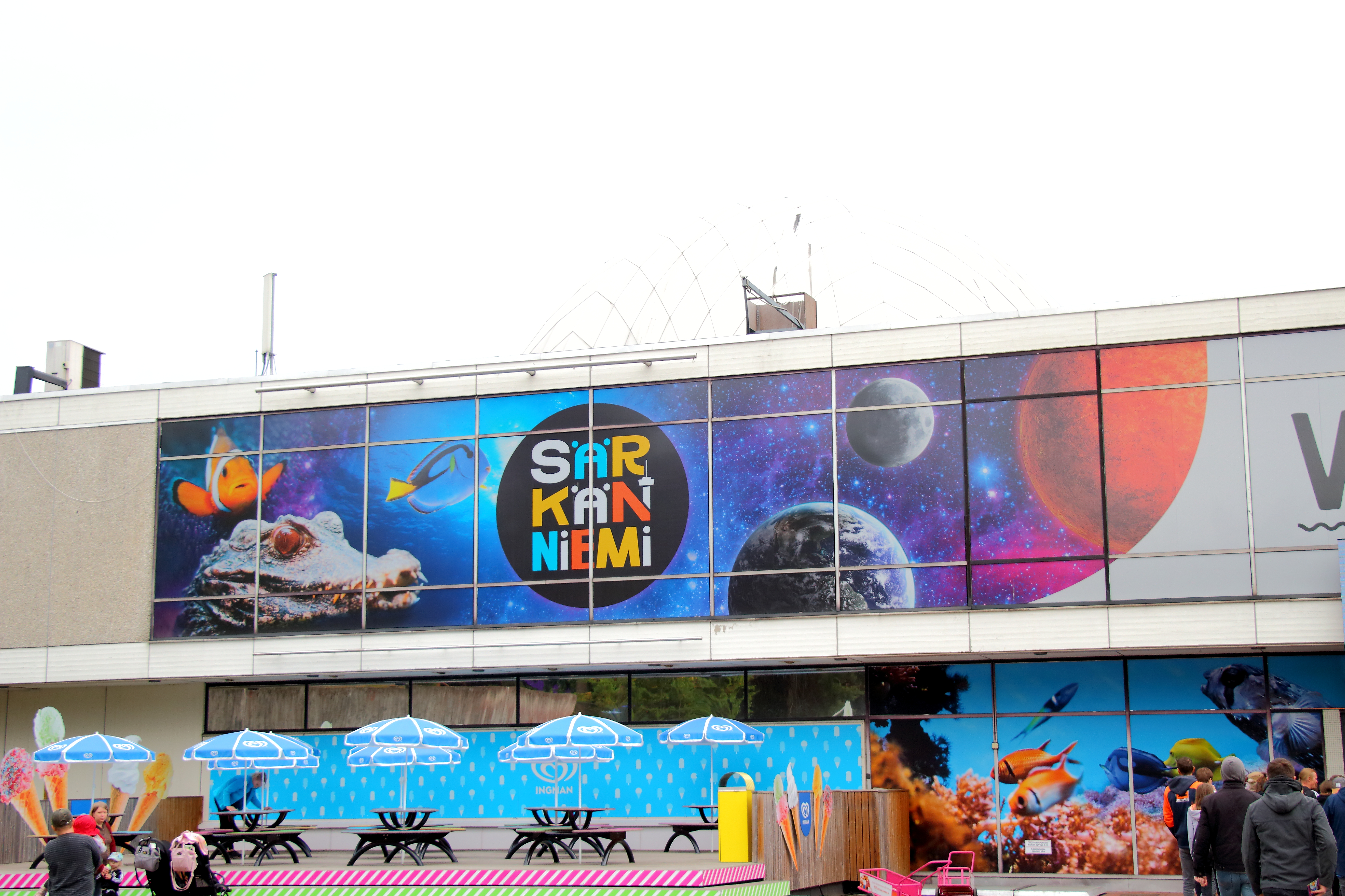 Särkänniemi, eine spezielle Halbinsel. Einerseits ein interessantes Attraktionsangebot mit toller Location. Andererseits ist diese v.a. mit Beton und Asphalt versehen und wirkt recht steril (mal mit der Ausnahme des Themenbereichs rund um die Farm, die wirklich äußerst hübsch ist). Der Park versucht mit großen Bannern und viel bunter Farbe dem entgegenzuwirken und hinterlässt so einen komischen Eindruck zwischen Kunst und Natur. Beim späteren Sonnenschein hatte dies aber direkt eine andere Wirkung als beim schlechten Wetter morgens, wodurch sich auch direkt unsere Stimmung aufheiterte.