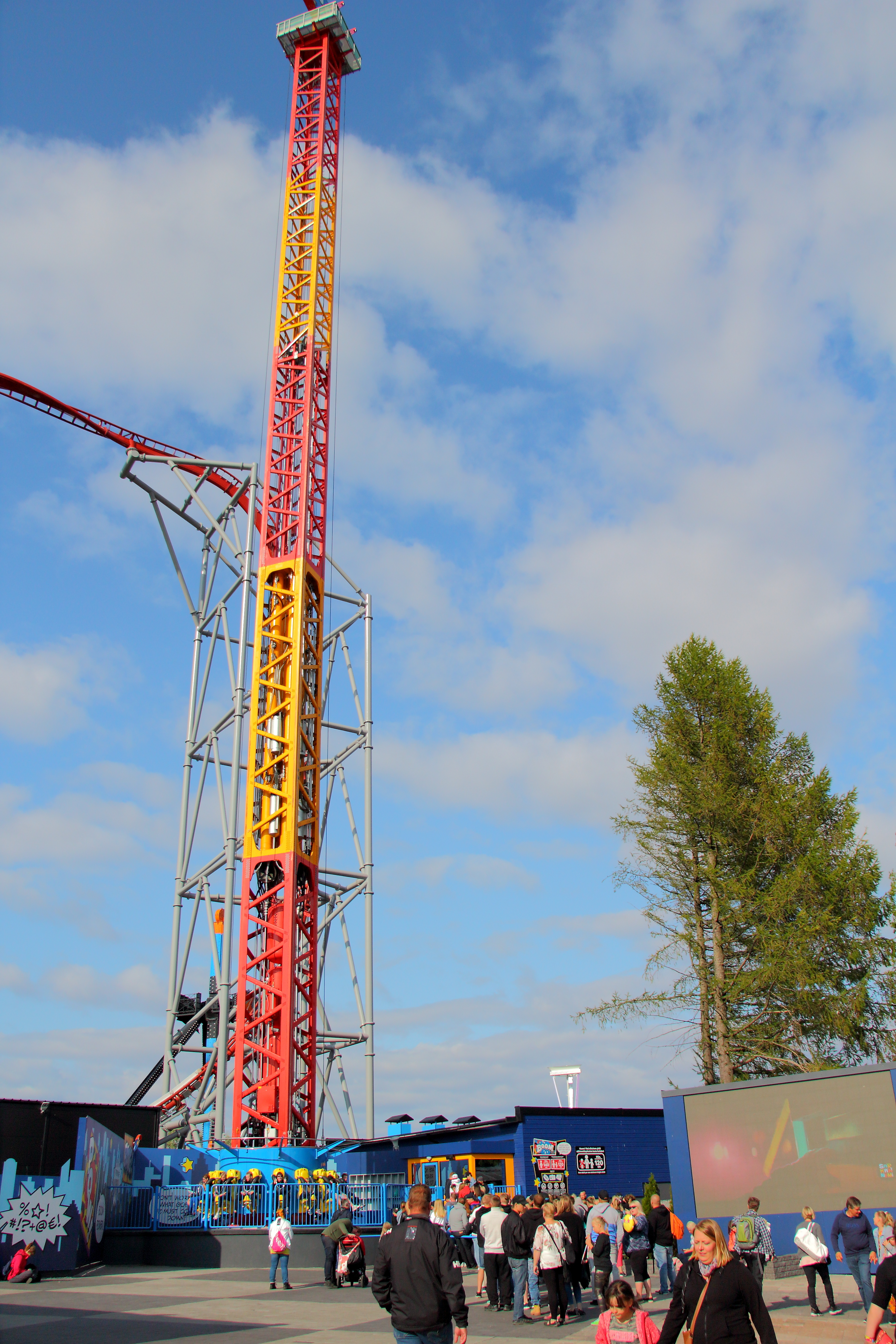 Früher gab es an dieser Stelle eine Bootsfahrt, die mit zu den ältesten Attraktionen des Parks zählte. Der Sky Rocket II fügt sich aber auch gut in den komisch bunten Themenbereich ein.