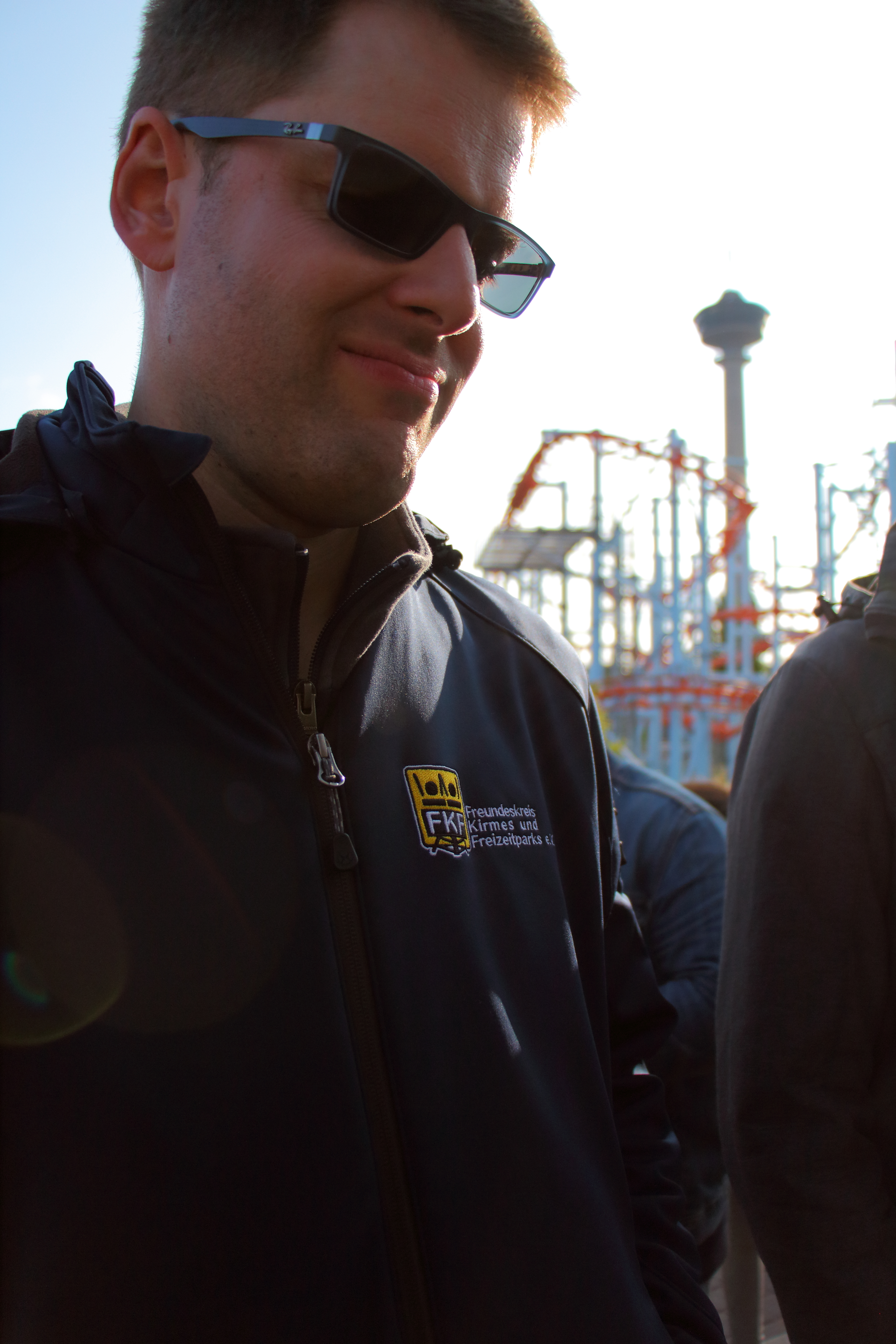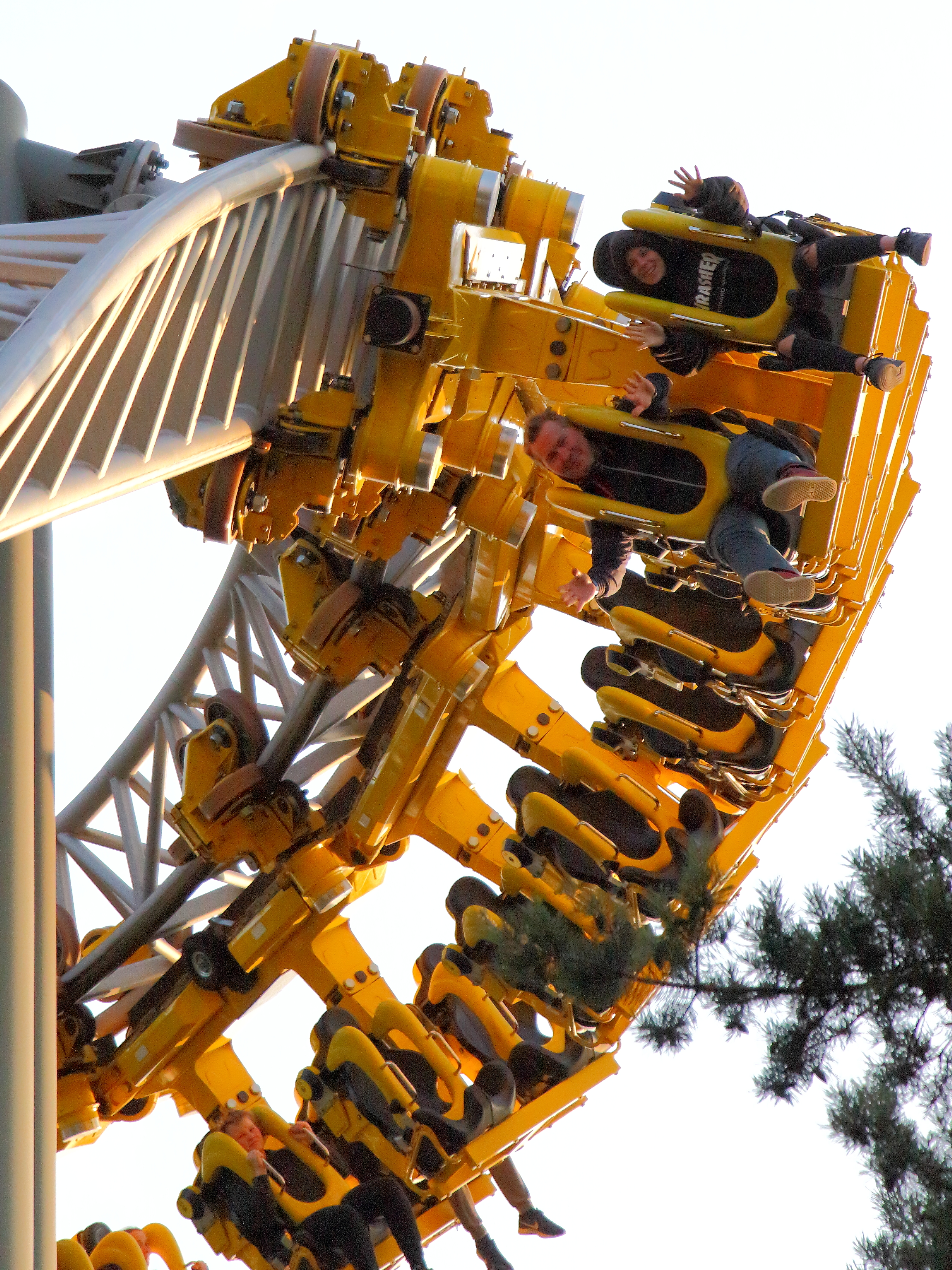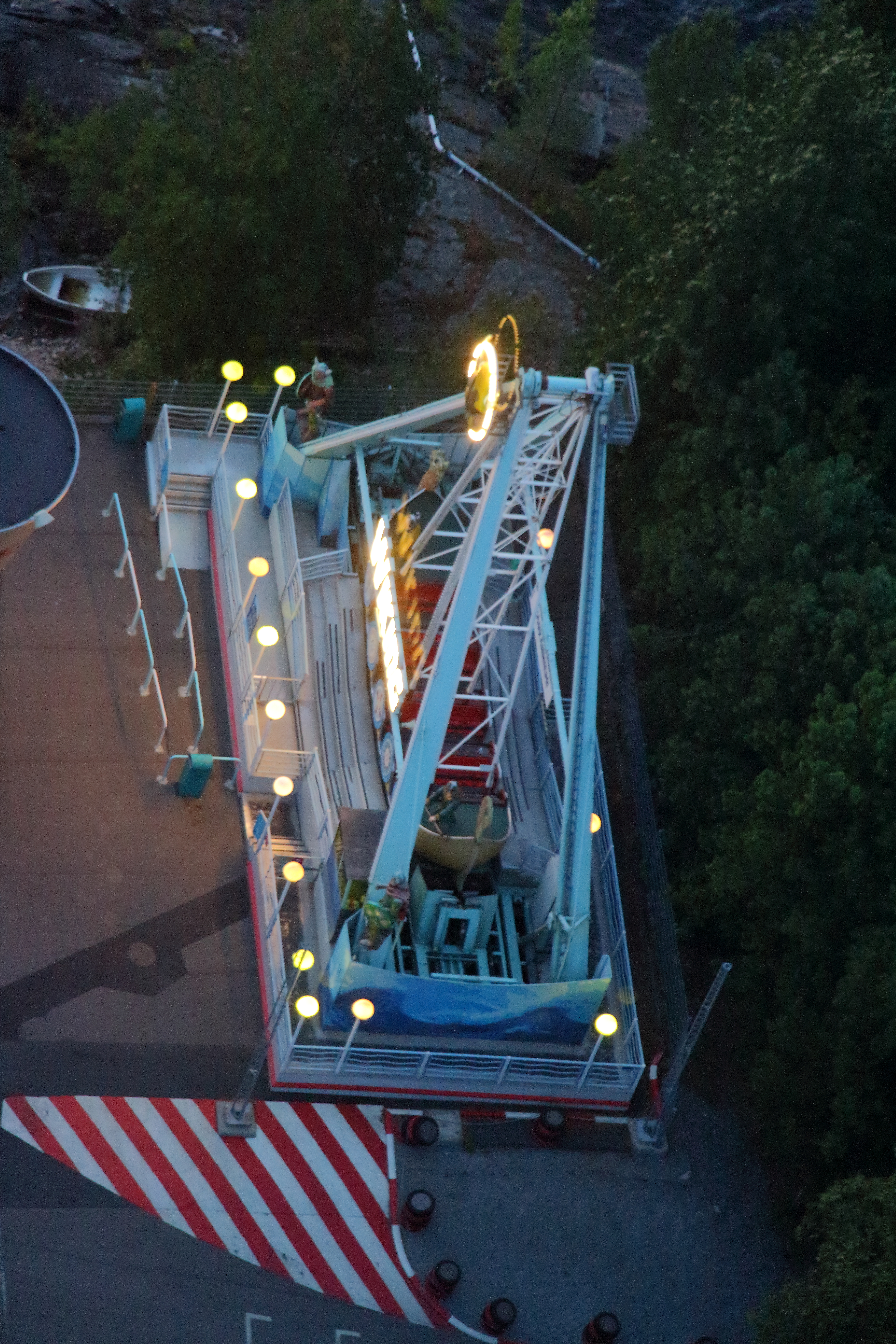Die drei anderen sind gegen 19 Uhr auf den Aussichtsturm, während ich die Stunde ERT noch ausgenutzt habe. Kurz vor Schluss hat uns (6 Leute) eine Mitarbeiterin nochmal rausgeschickt, weshalb das obere Bild aus 120 Meter Höhe entstanden ist. Eine Spielverderberin darf halt in keinem Park fehlen. Die beiden Jungs haben aber eine super Stimmung verbreitet, alle Fahrgäste abgeklatscht (da würden die Mitarbeiter eines großen Parks im Süden Schweißperlen auf der Stirn bekommen ...) und ständig mit der Gepäckablage gespielt. Das hat mich direkt an meine FFT-Zeit zurückerinnert. So muss das sein, die Gäste animieren und Freude vermitteln statt demotiviert und hochnäsig die Arbeit "erledigen".