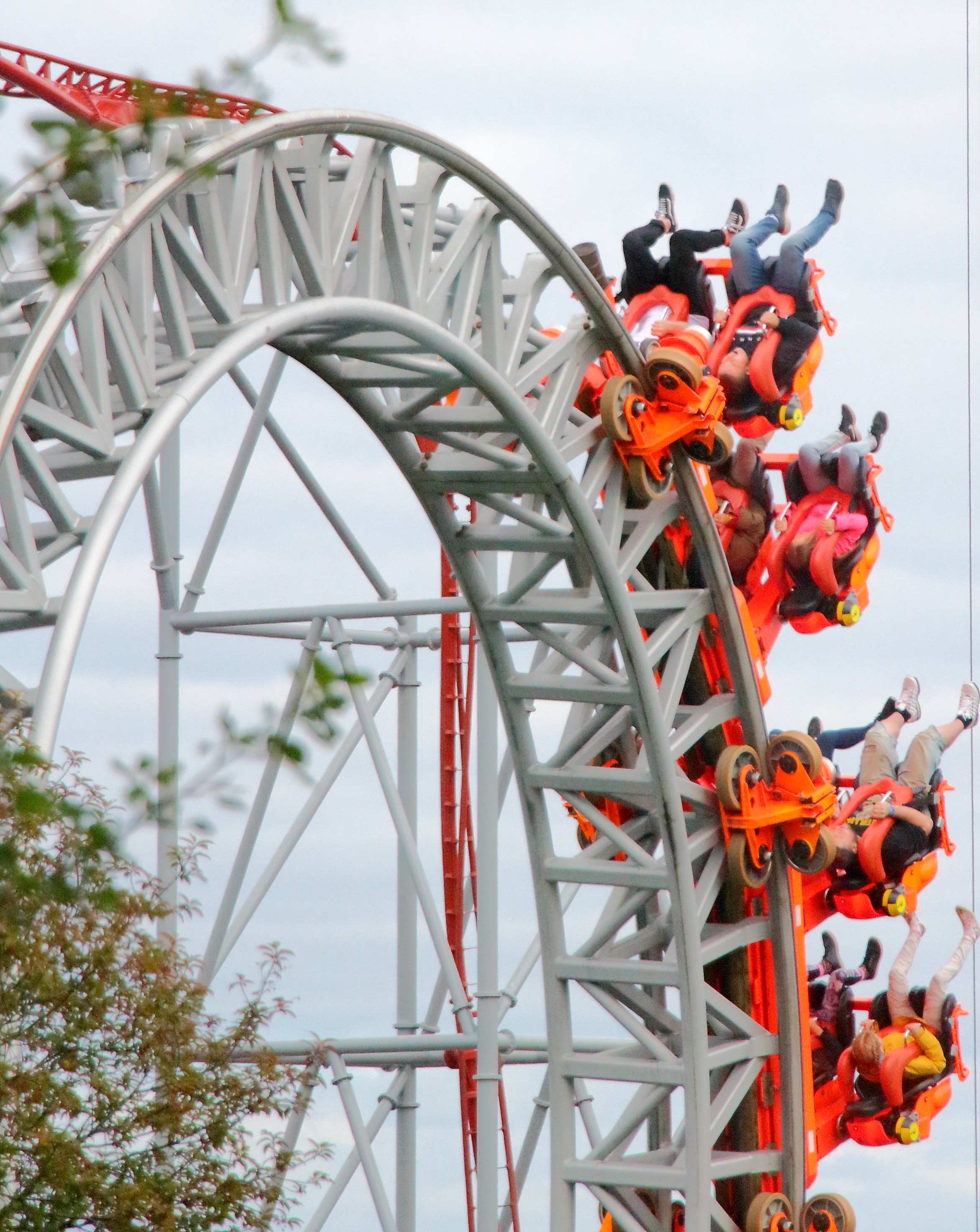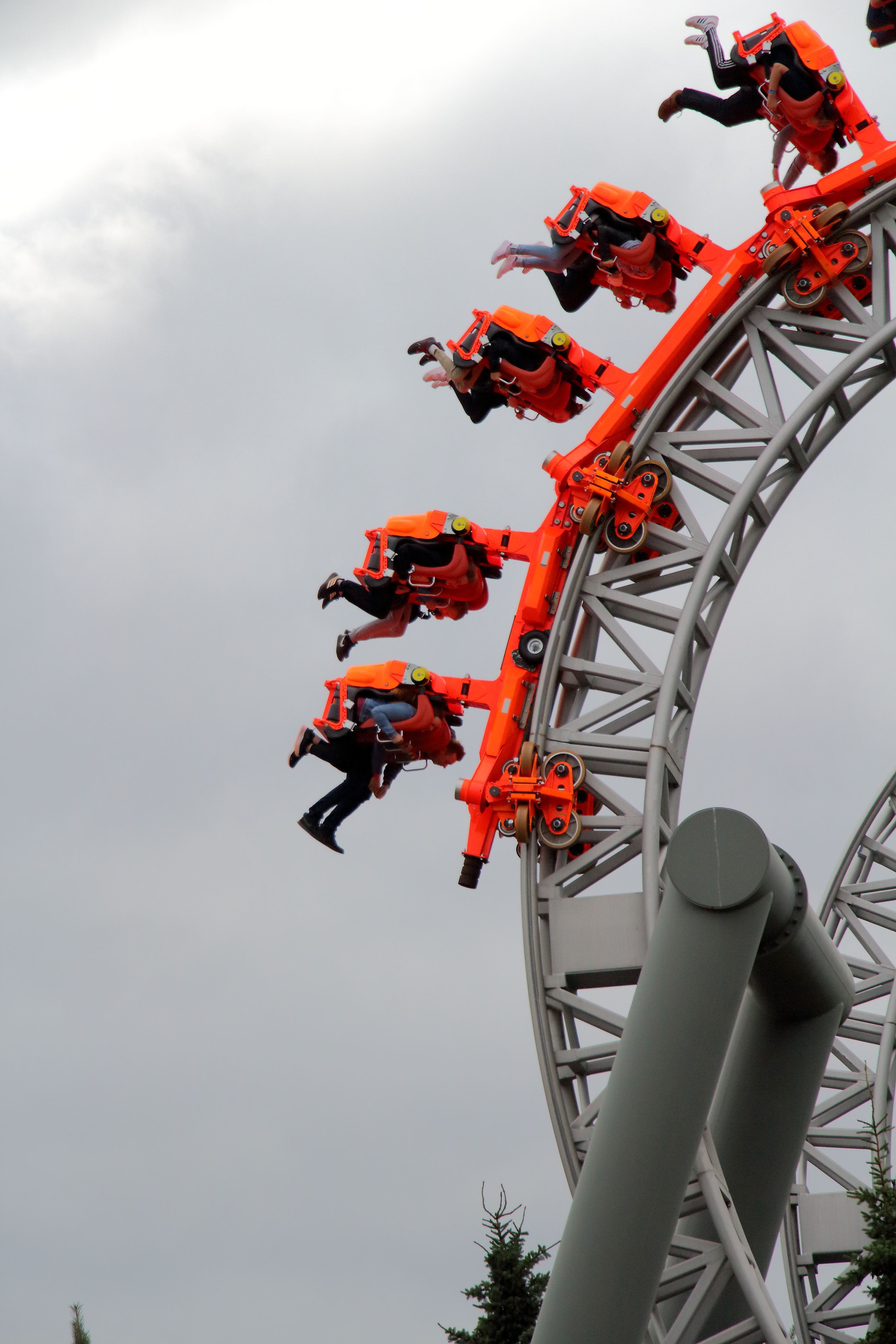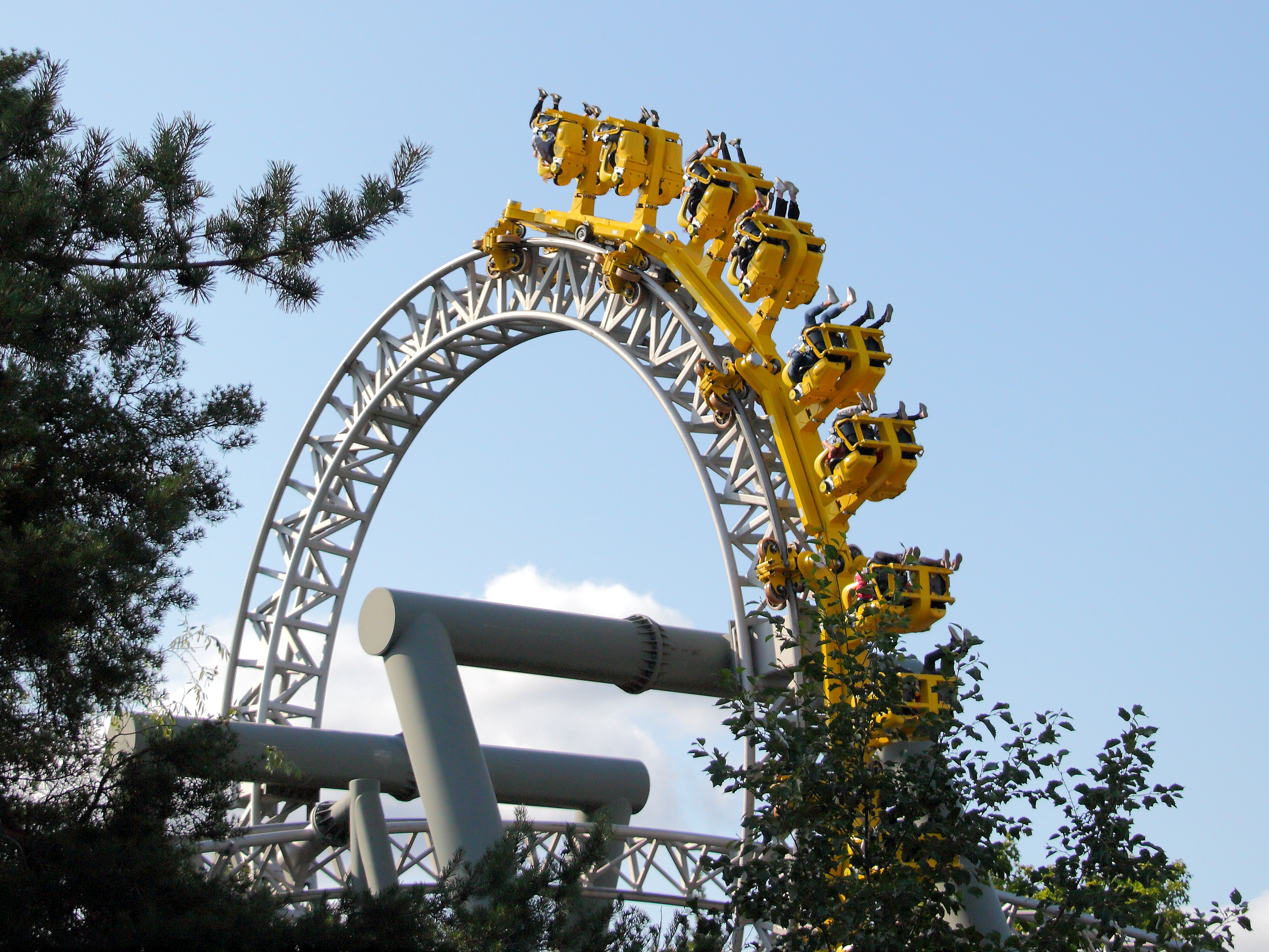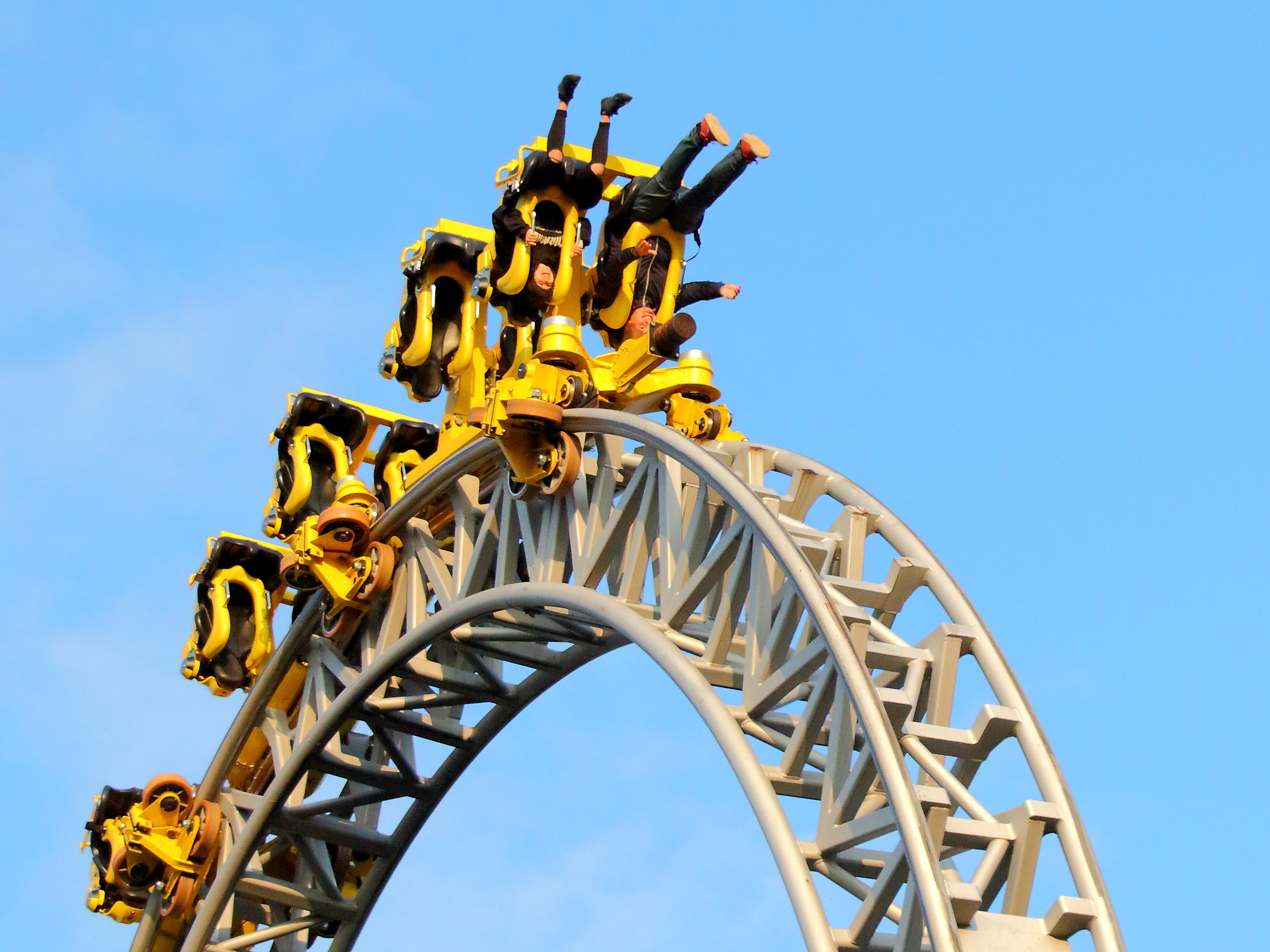 Hinten hingegen findet dies erst kurz vor dem Scheitel statt. Dadurch verliert der Hintern minimal Sitzkontakt bevor der Zug wieder Fahrt aufnimmt und aufgrund der noch folgenden halben Drehung einen zurück in den Sitz holt.