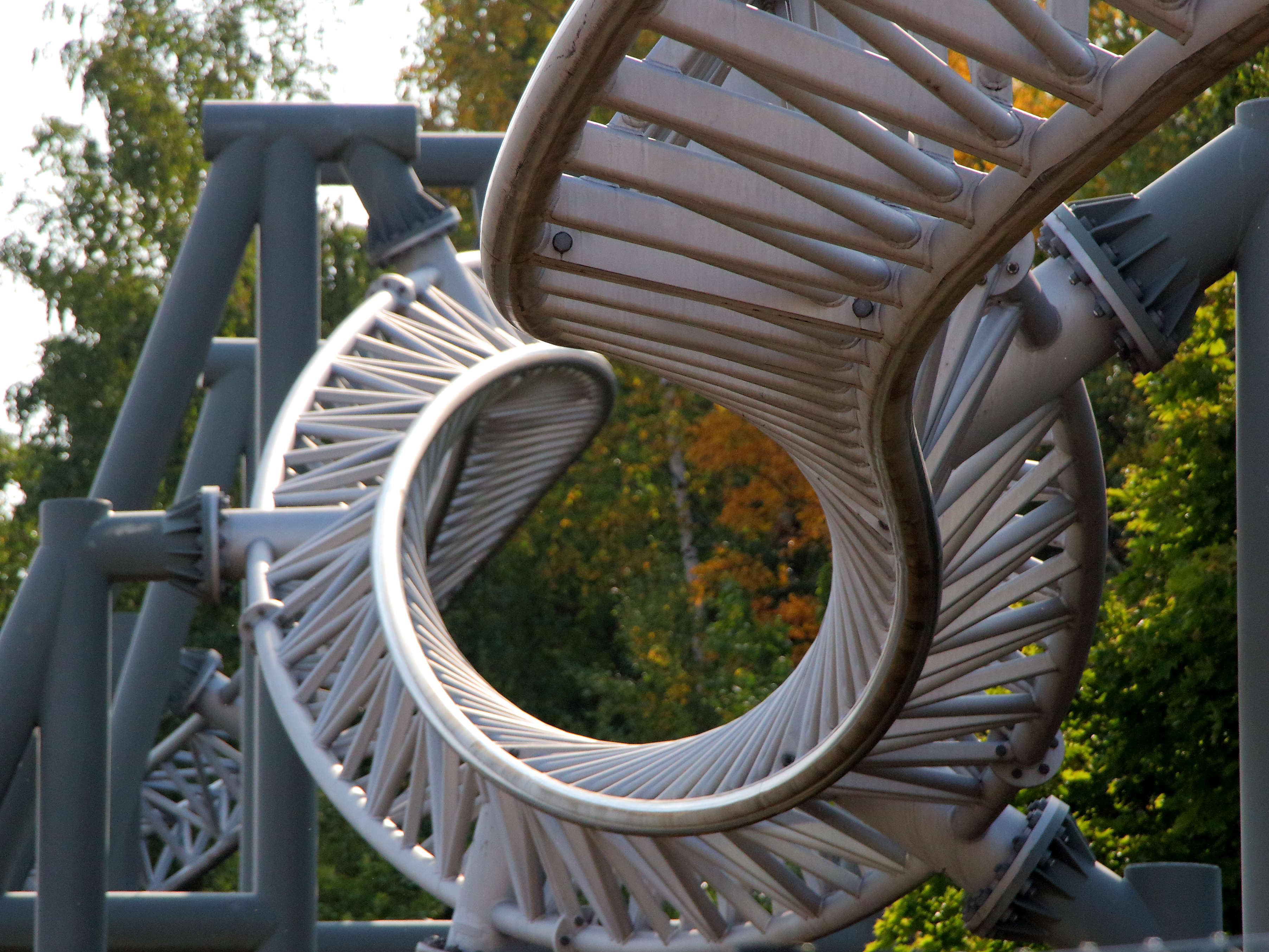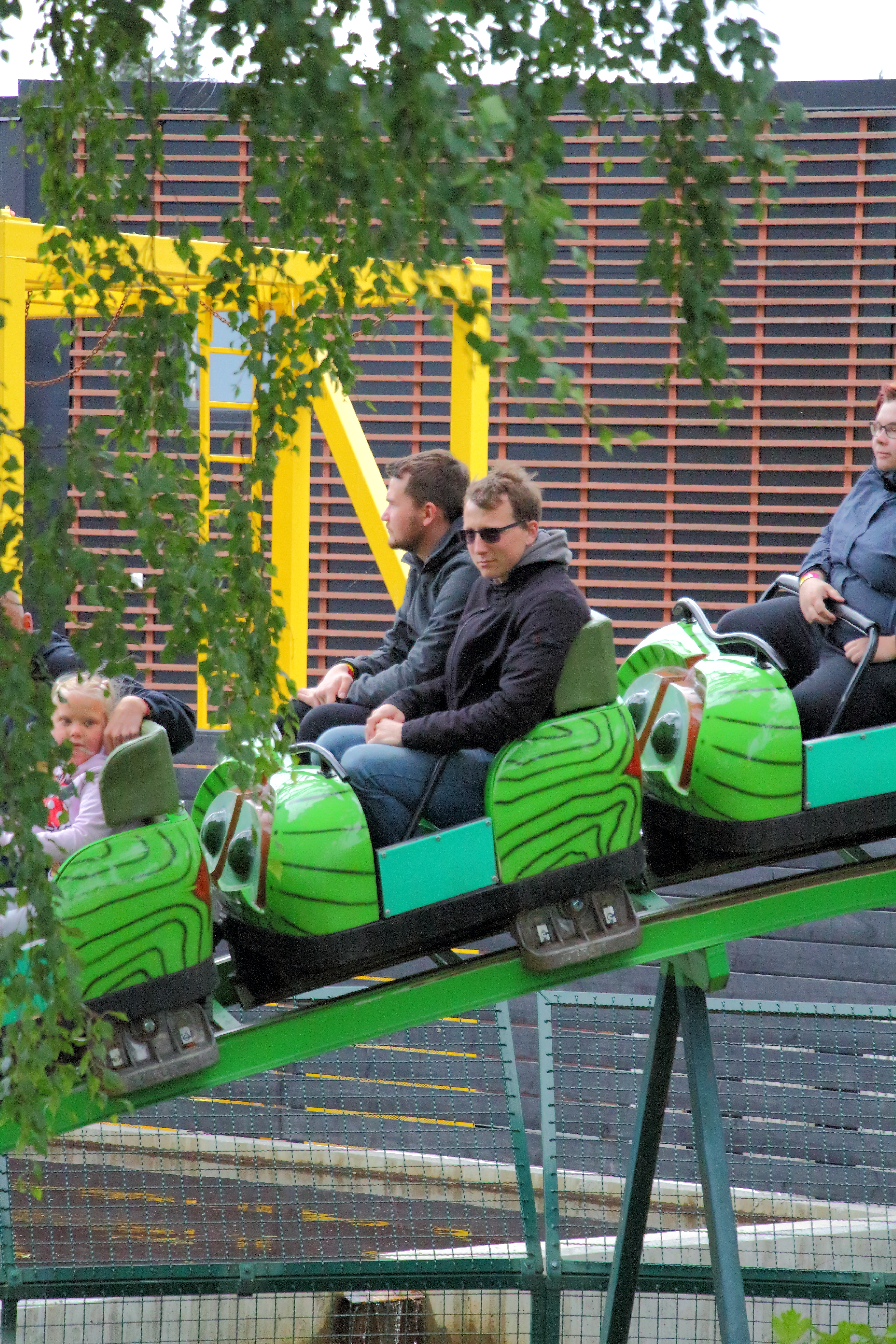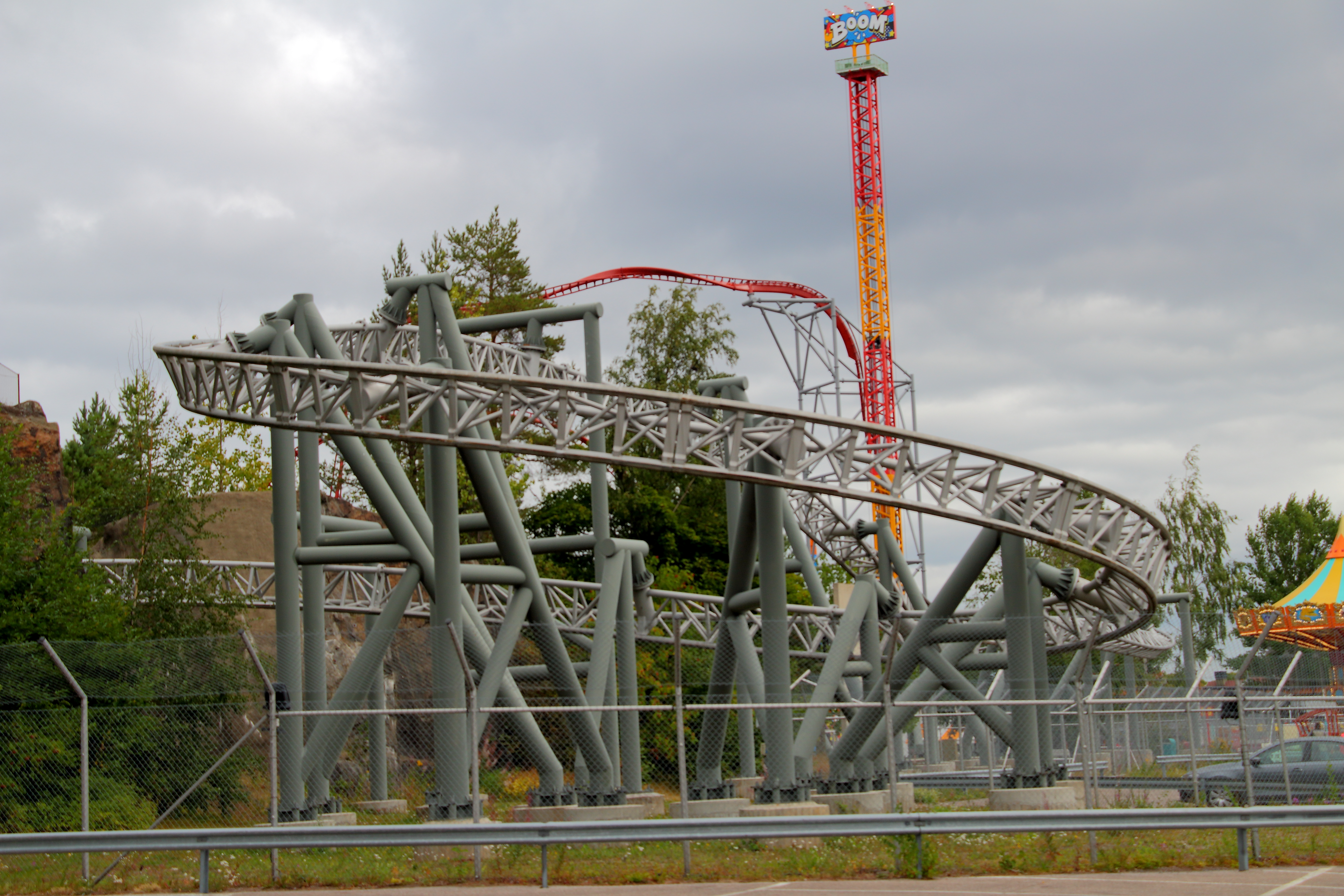 Anschließend machten wir uns auf den Weg quer durch den Park, den wir entgegen dem Uhrzeigersinn durchgingen. Am grauen Wirbel gingen wir zunächst aber vorbei, da dieser unter den Achterbahnen die höchste Kapazität des Parks besitzt.