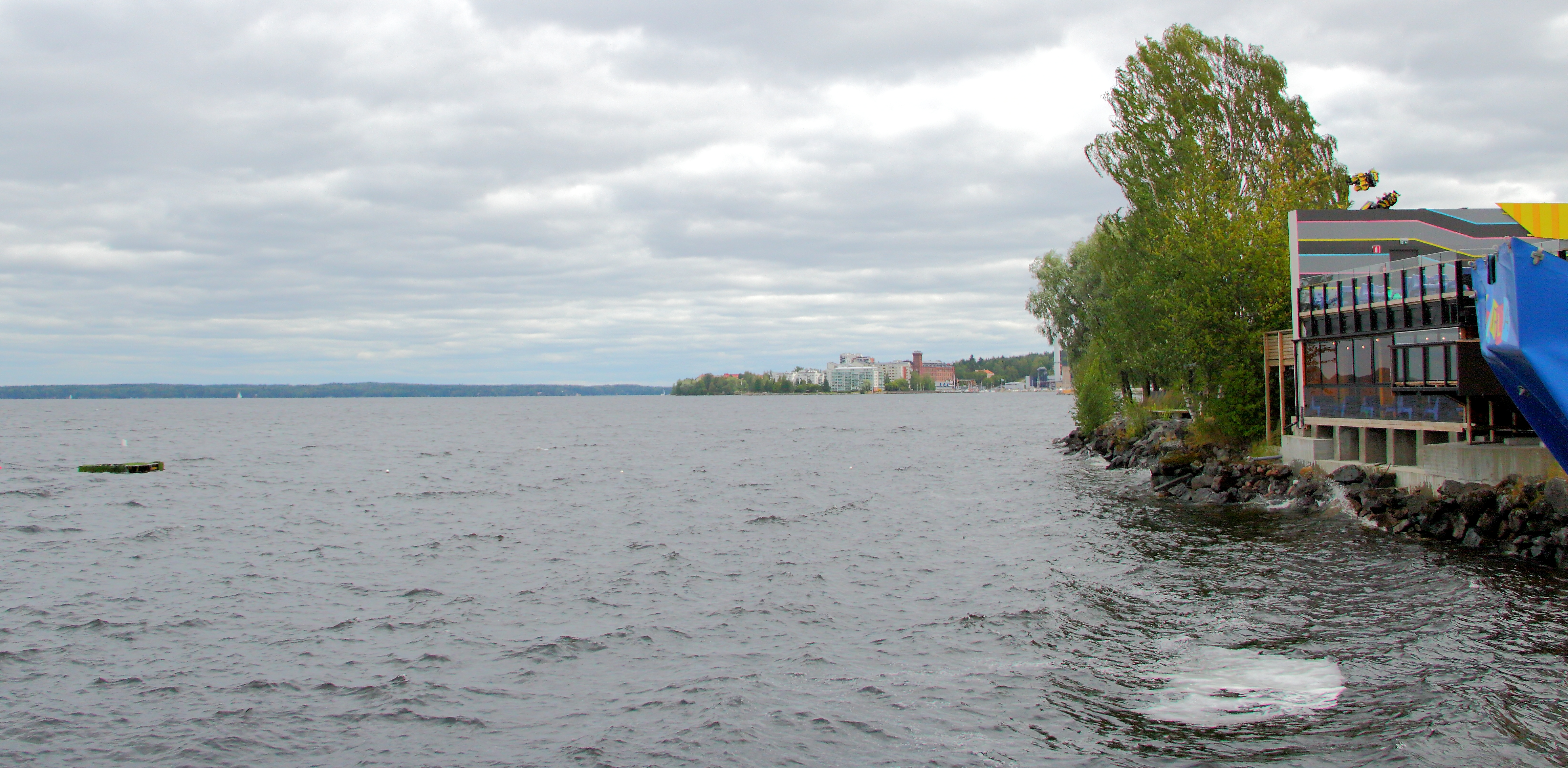 Ich mag die Location direkt am See mit Blick zum Hafen. Hier findet sich auch einer der zahlreichen Raucherbereiche des Parks, an die sich die Finnen zum Glück auch meist halten.