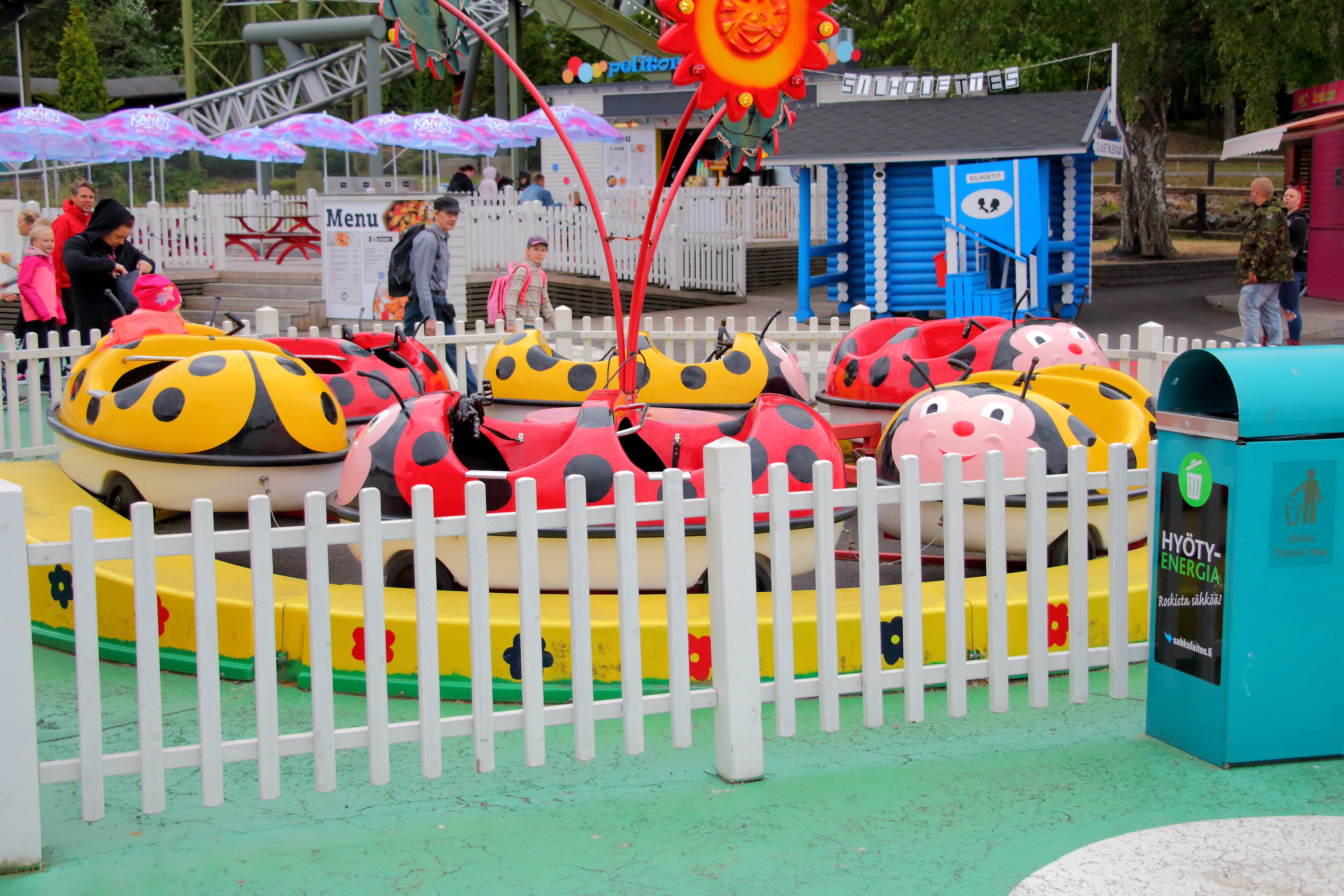 Im Linnanmäki-Bericht habe ich schon über die Möglichkeit für finnische Familien gesprochen, die sich jemanden mieten können, der/die mit den Kids die Attraktionen fährt. Diese Möglichkeit gibt es auch hier.