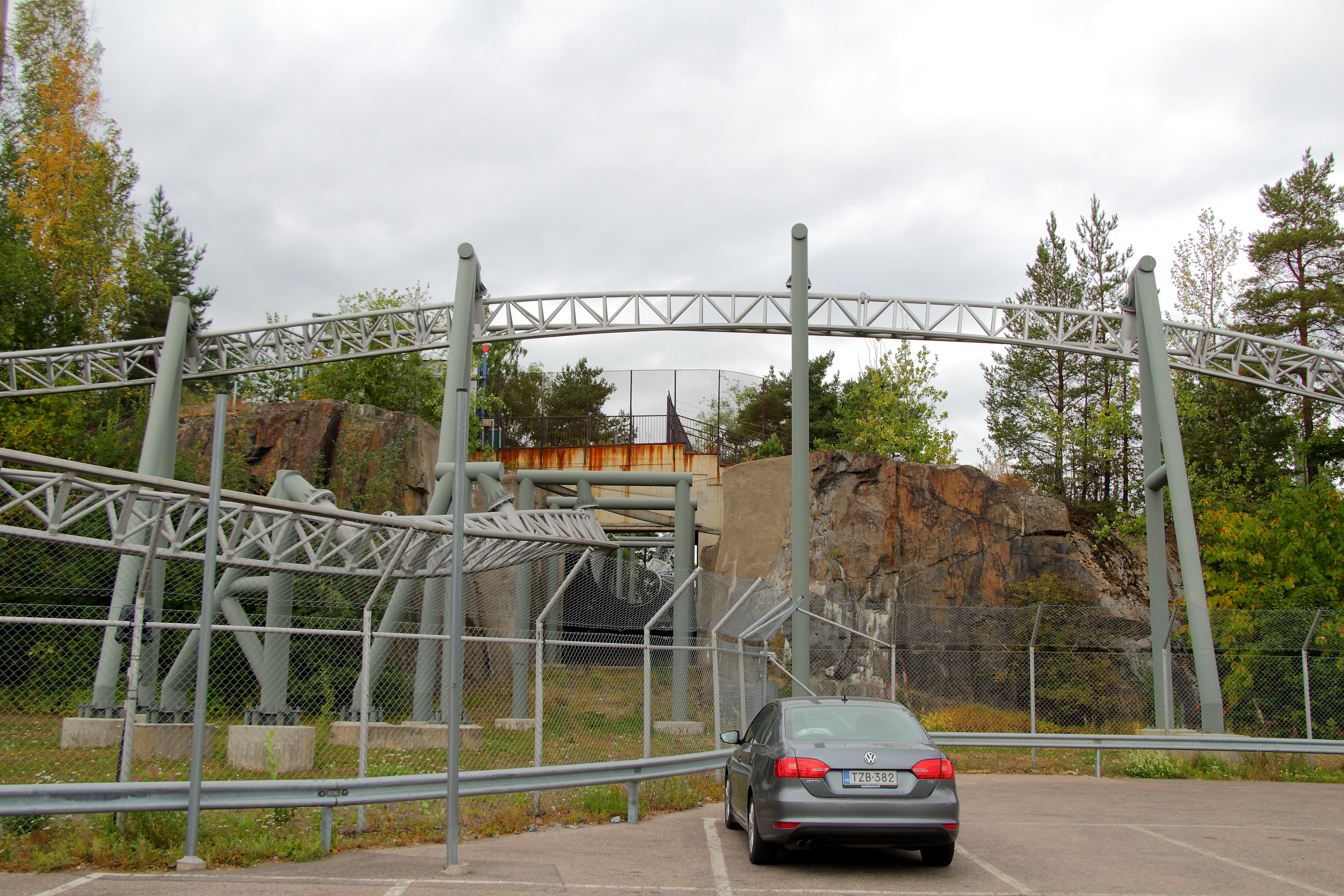 Was tun, wenn der Platz für eine neue Hauptattraktion fehlt? Richtig, Finnlandtypisch eine Spalte in den oben zu sehenden Fels hauen und mit viel Beton eine Station darin bauen.