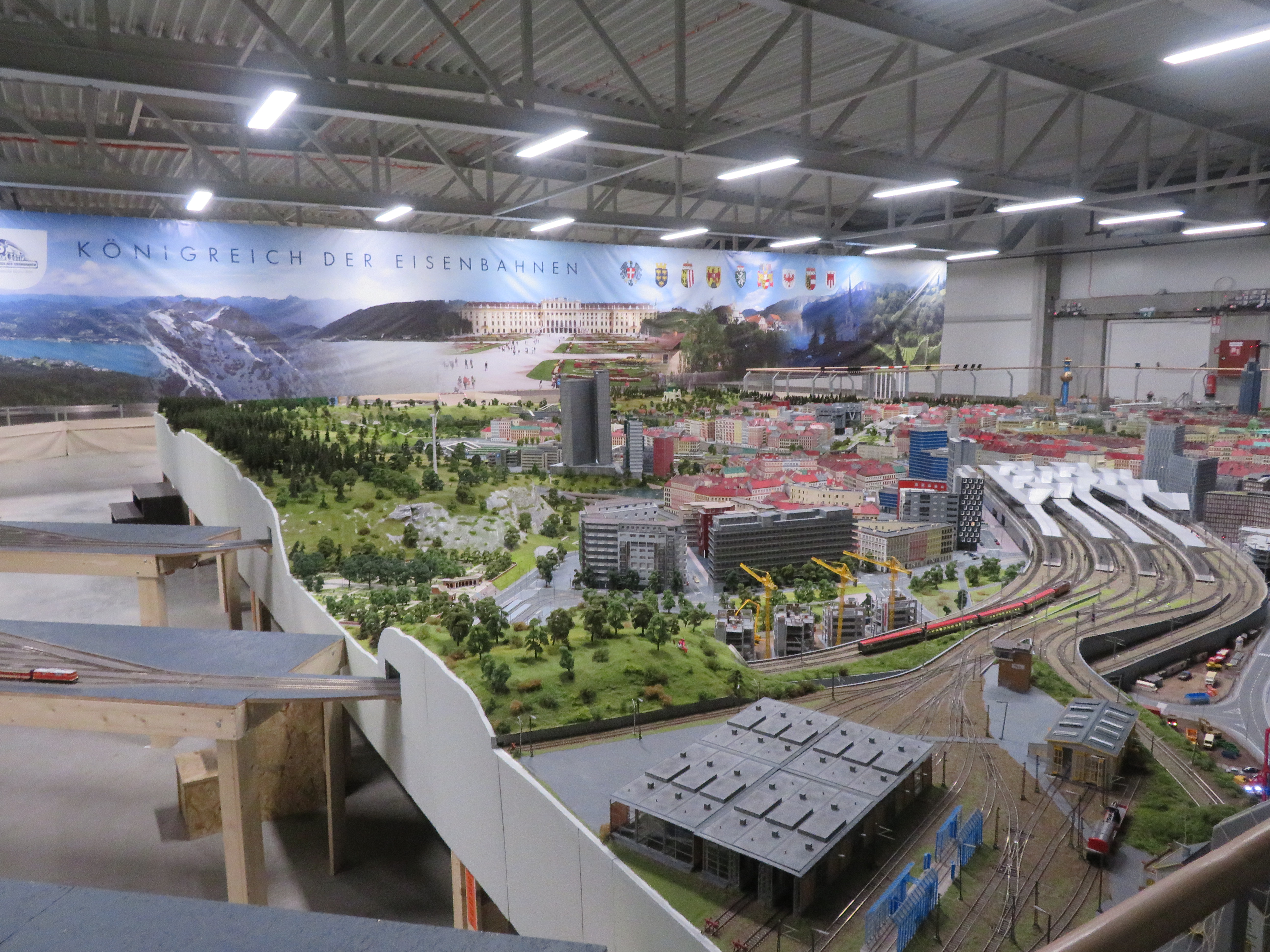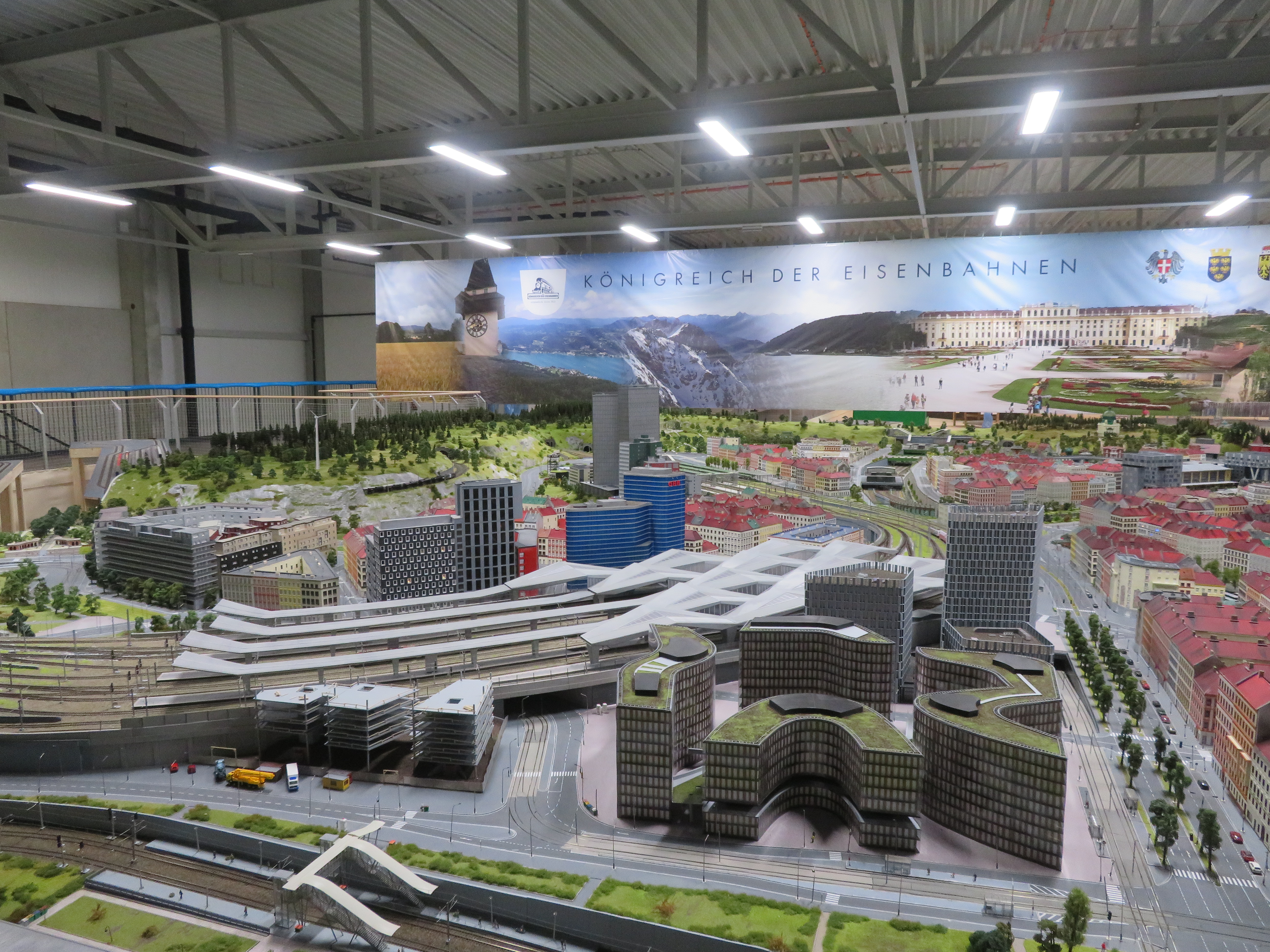 Vereinfachtes Landschafts- und Bahnmodell Österreichs auf einer Zielfläche von über 1000 m² (270 m² bei Eröffnung)