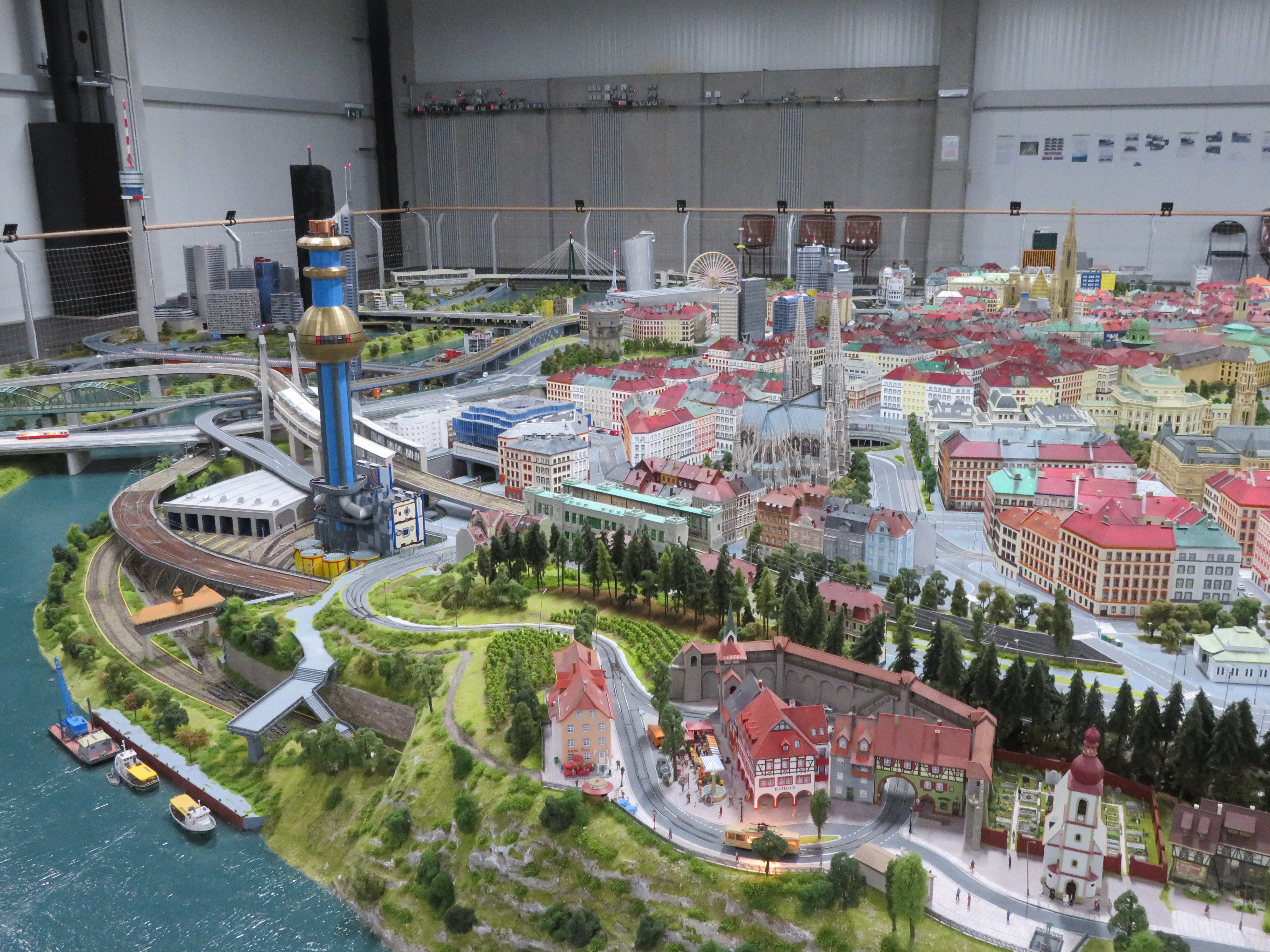 Außengleisanlage (1 : 45) hat die österreichische Landschaft zum Thema, ist gegen Außeneinwirkungen beständig und beinhaltet interaktive Elemente