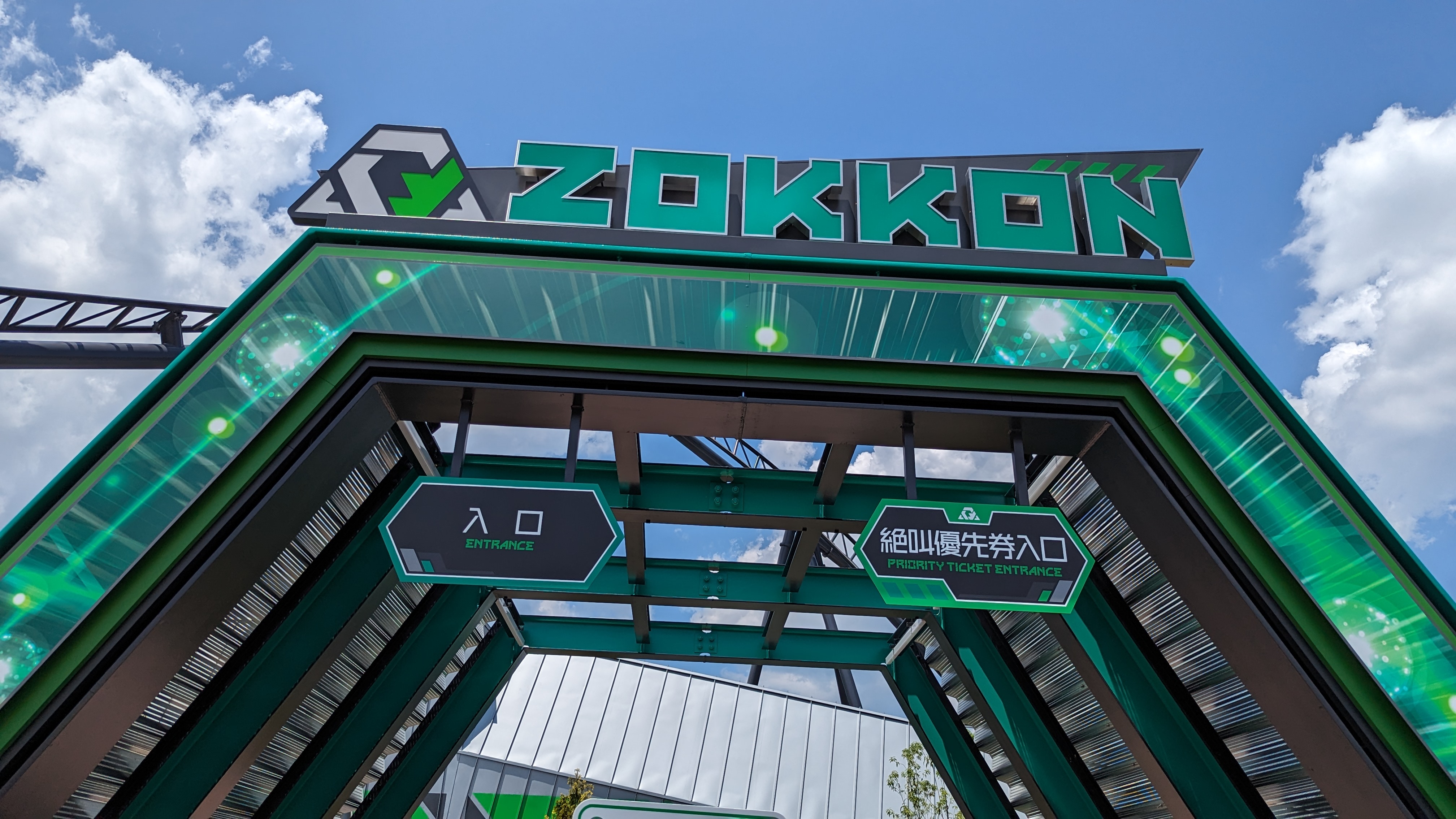 Wartezeit betrug an einem, wie ich finde, eher nicht so vollen Tag, knapp 60 Minuten. Der Wartebereich außen ist quasi nicht thematisiert und auch etwas zu offen, sodass sich die Leute teilweise zu dritt oder zu viert nebeneinander stellen. Im Gebäude selbst ist alles farblich angepasst, aber das würde ich jetzt Theming nennen. Videos und Schilder weisen mehrfach darauf hin, dass die Fahrt sehr extrem sei und man sich bitte stets "in die Kurve hineinlegen" soll und den Kopf nicht in die falsche Richtung drehen soll, um das Risiko von Verletzungen zu minimieren. Das jagt jedenfalls schon ordentlich Respekt ein. Am Ende des Wartebereichs müssen alle losen Gegenstände in einen Spind eingeschlossen werden (Schuhe darf man anbehalten), den Schlüssel trägt man um das Handgelenk. Anschließend läuft man durch eine Sicherheitsschranke wie am Flughafen, es sind auf Mitarbeiter mit Handgeräten zur Kontrolle vor Ort, wobei ich tatsächlich eher den Eindruck hatte, dass das ganze Fake ist, denn schließlich hätte spätestens bei einem Gürtel nachkontrolliert werden müssen. Tatsächlich sind aber locker 100 Leute vor mir durch, ohne dass irgendwas beanstandet wurde. Anschließend werden immer zwei Wagen in einem Raum versammelt, wo es noch einmal das Hinweisvideo zu sehen gibt sowie lustige Klatschrhythmen mit Sicherheitshinweisen im Chor durch das Personal. Man schaut sich im Raum den Film zweimal ein, einmal von weiter hinten, dann direkt vor den Bildschirmen. Anschließend geht es in die Station. Dort wartet man einen weiteren Wagen ab. Wie bei Eejaneika muss nach dem Einsteigen und Festgurten dem Personal die gelbe Lasche präsentiert werden, um nachzuweisen, dass man angeschnallt ist. Sitzposition und Bügel empfand ich als angenehm.