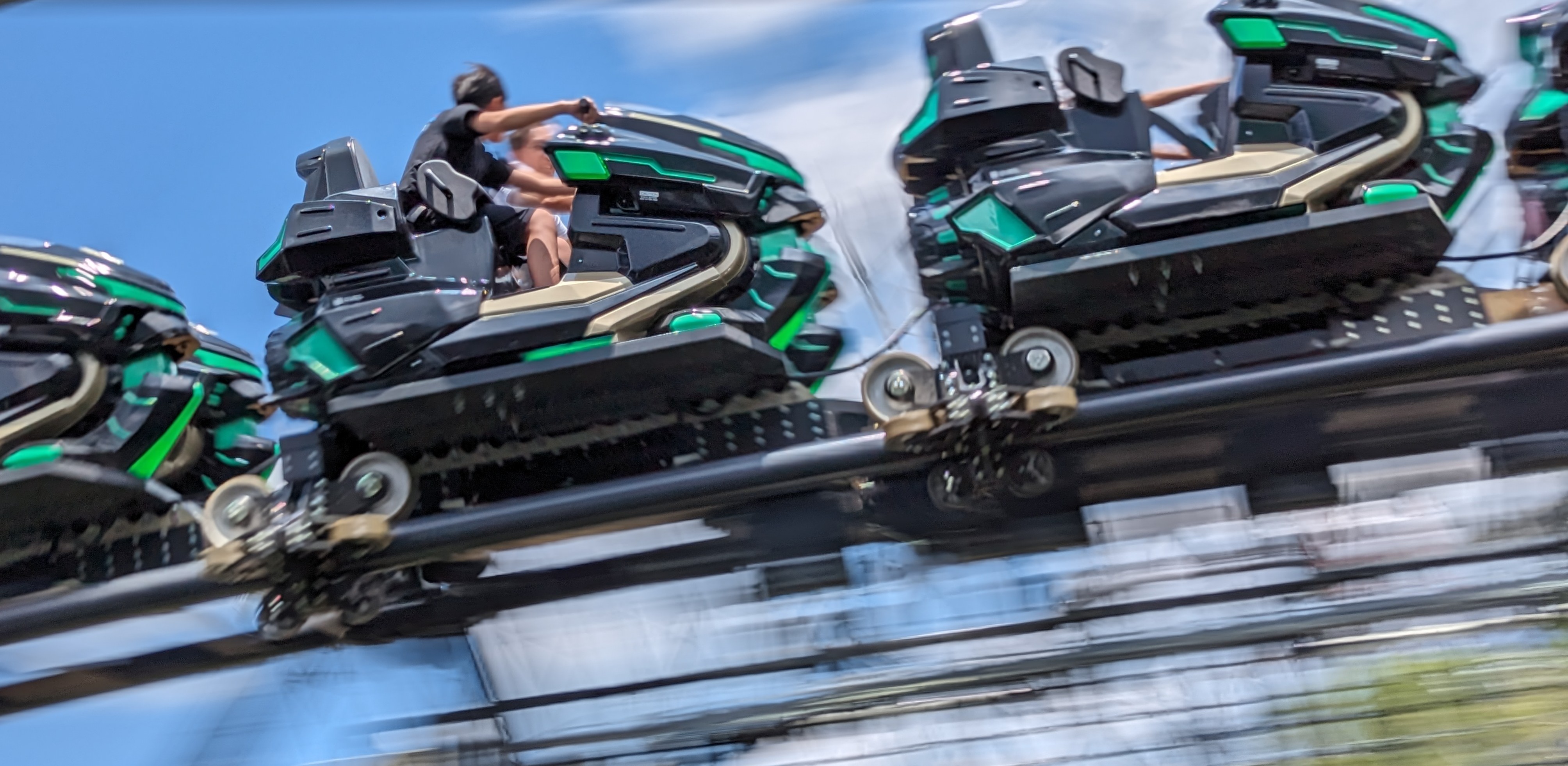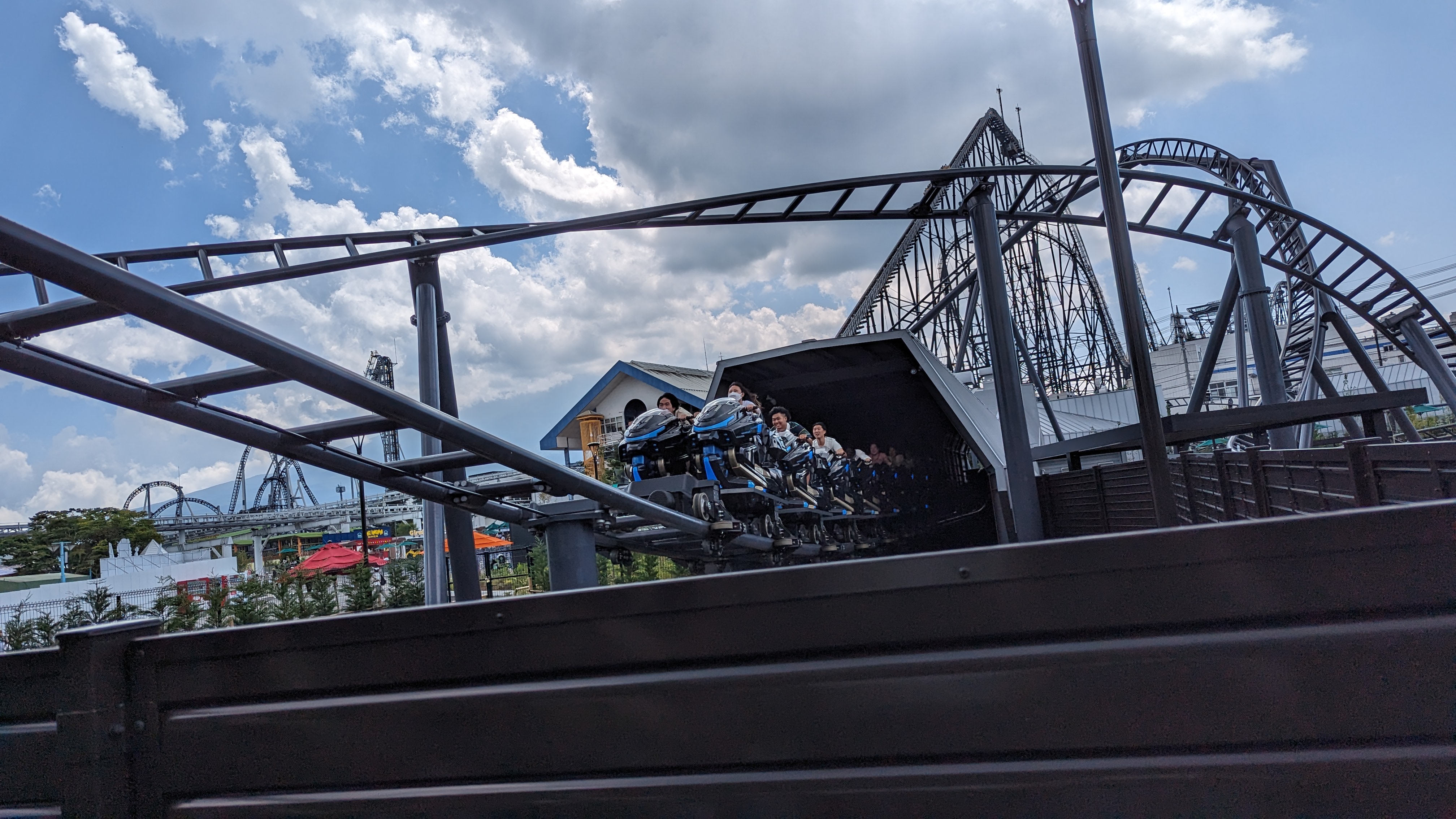 Zusammenfassend kann ich sagen, dass die Sitzposition den Reiz der Anlage ausmacht. Im Wesentlichen ist es ein Coaster, der bei einer normalen Sitzkonfiguration wenig spektakulär wäre, sowohl von der Beschleunigung als auch von den anderen Kräften. Durch die Sitzposition und die relative Freiheit kommt in gewisser Weise Motorrad-Feeling auf. Die Bahn ist aber bei weitem nicht so extrem, wie einem das Hinweisvideo im Vorfeld weismachen möchte (da war Fujiyama deutlich krasser, was die Kräfte angeht).