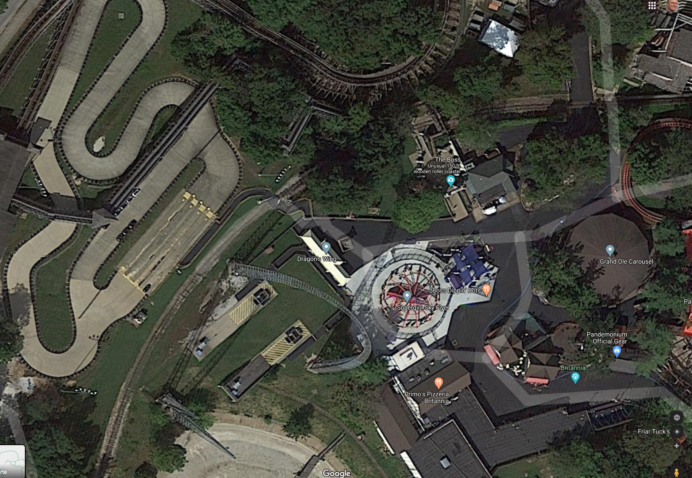 Das ist die Zamperla Endeavour wie Janek schon sagte, sieht man oben auf dem Areal-Foto als Supergirl Sky Flyer.