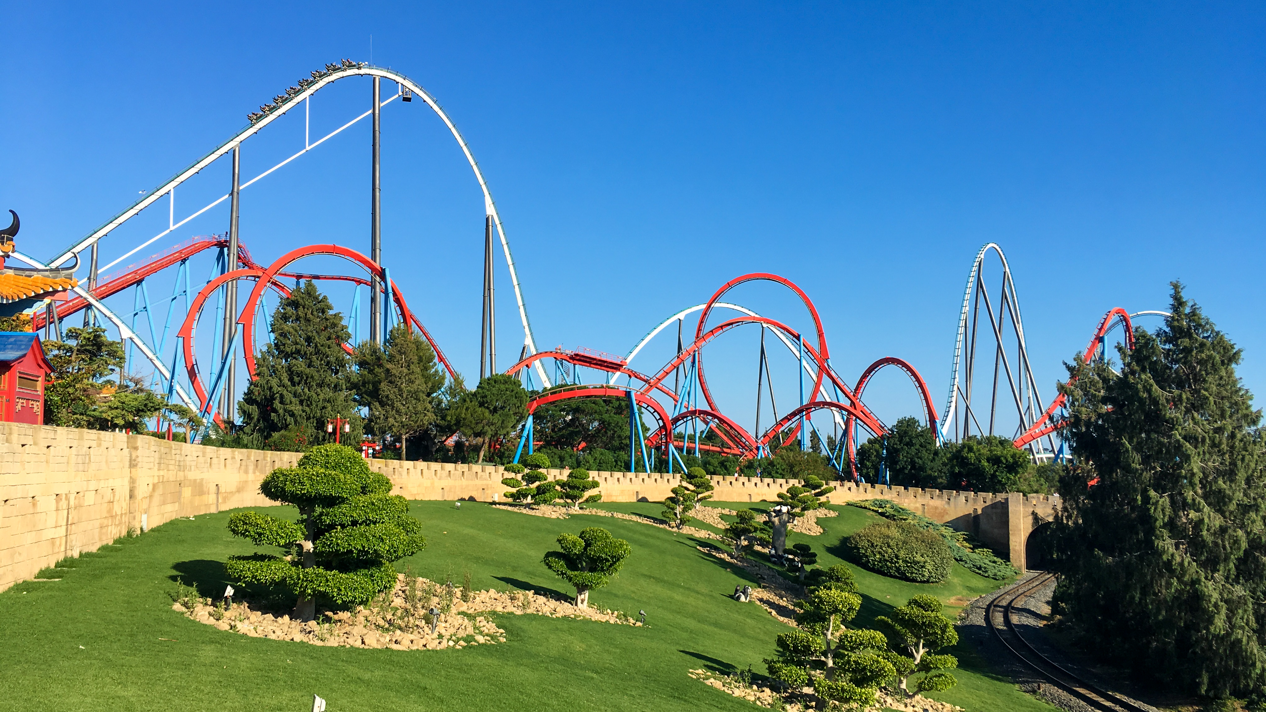Dragon Khan. Als ich 12 Jahre alt war, habe ich von meiner Schwester ein Poster mit einer Luftaufnahme von einer roten Achterbahn in der Einöde geschenkt bekommen. Ich habe viel Zeit damit verbracht, den Streckenverlauf zu verfolgen und die „Loopings“ zu zählen, entdeckte irgendwann eine kleine Bildunterschrift „Dragon Khan at Port Aventura, Spain - featuring 8 inversions.” Das Poster gibt es leider nicht mehr. Dennoch besteht seitdem der jung gereifte Plan, die rote Bahn irgendwann einmal zu fahren.