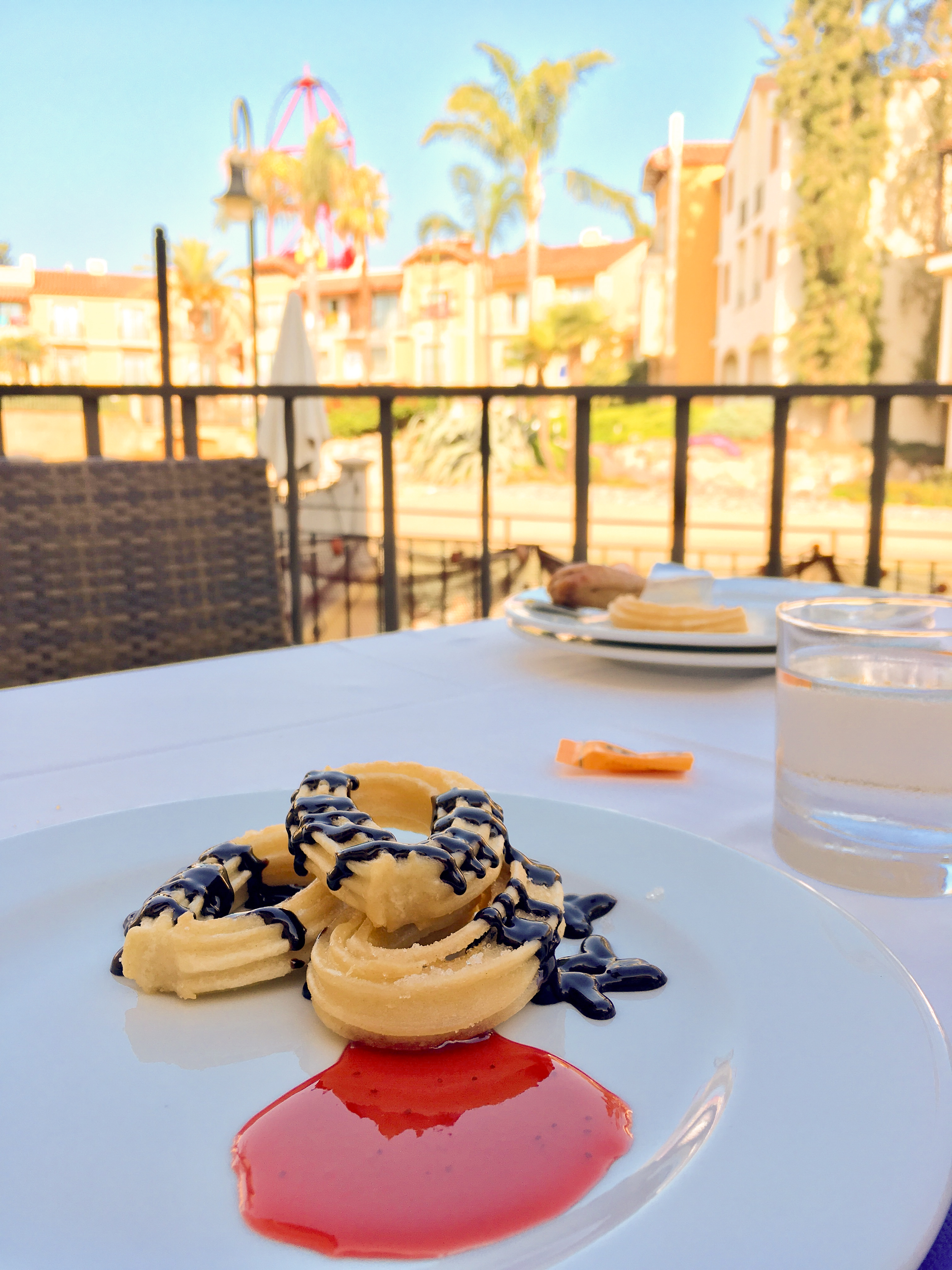 Sie sagten, es seien Churros… Aber der Intamin-Coaster im Hintergrund ist echt