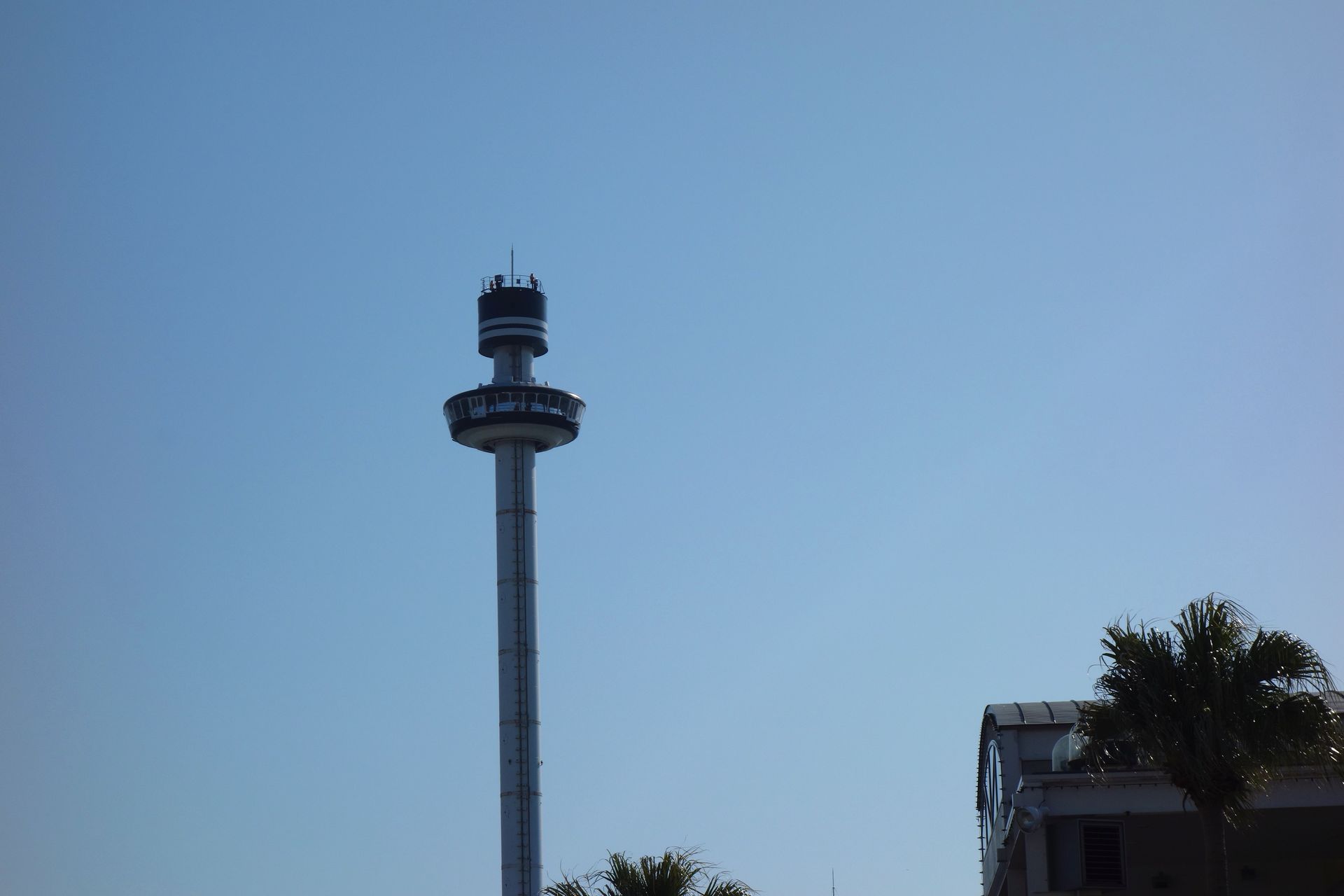 Eine der wenigen Ausnahmen war der Drop Tower am Nordufer der Insel in unmittelbarer Nähe zum Aquarium.