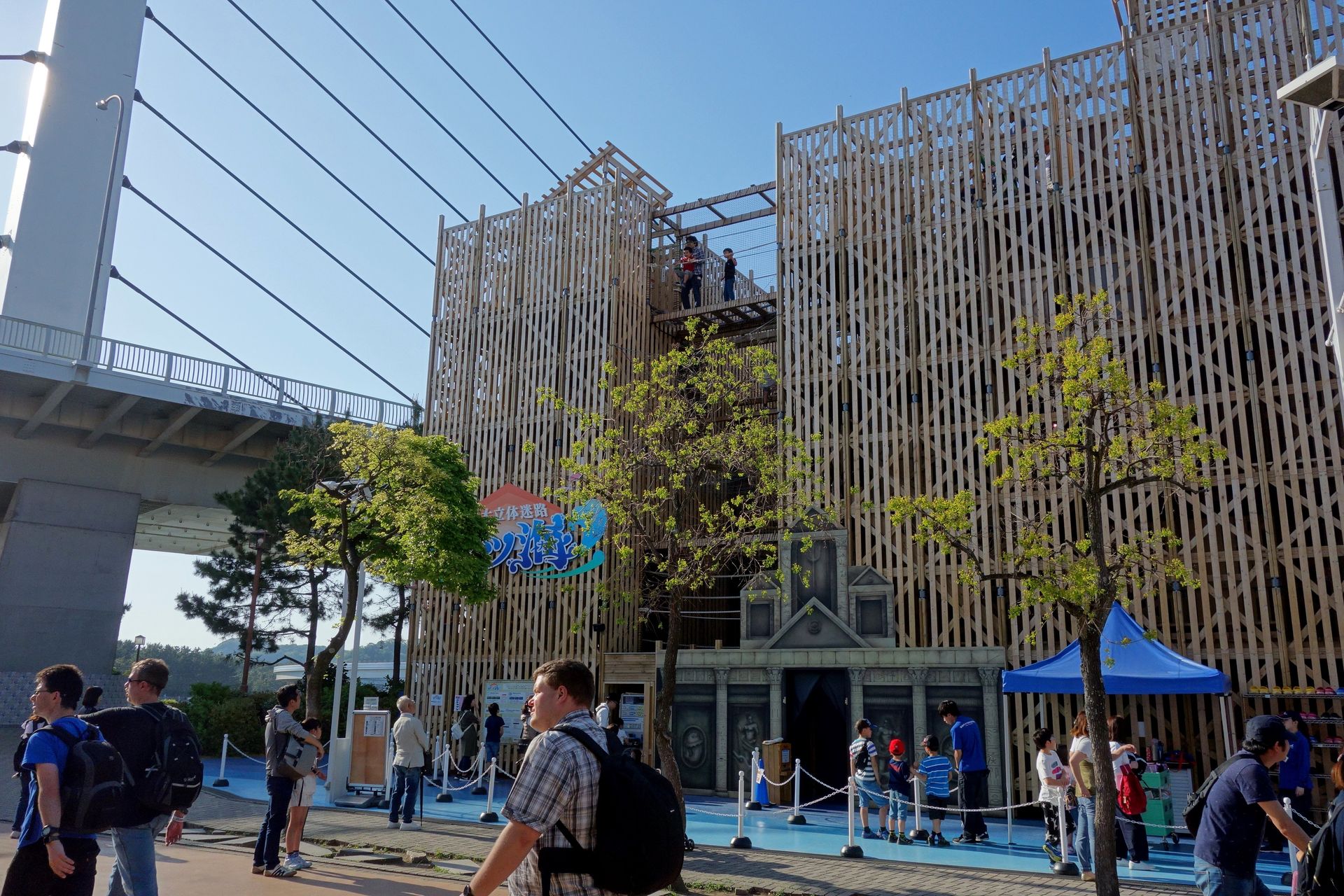 Wir stiegen, wie im letzten Bericht erwähnt, an der Station Hakkeijima aus. Von dort führt eine Brücke geradewegs zur gleichnamigen Insel, welche im Rahmen eines von 6 Großprojekten zur Stadtentwicklung Yokohamas entstand. Ab 1971 wurden insgesamt 6,6 Millionen Quadratmeter Land vor der Küste der Stadt aufgeschüttet, darunter eben auch dieses 24 Hektar große Eiland. Von Anfang an war geplant, dort einen (Freizeit-)Park mit maritimem Thema anzusiedeln, welcher schließlich 1993 eröffnete.