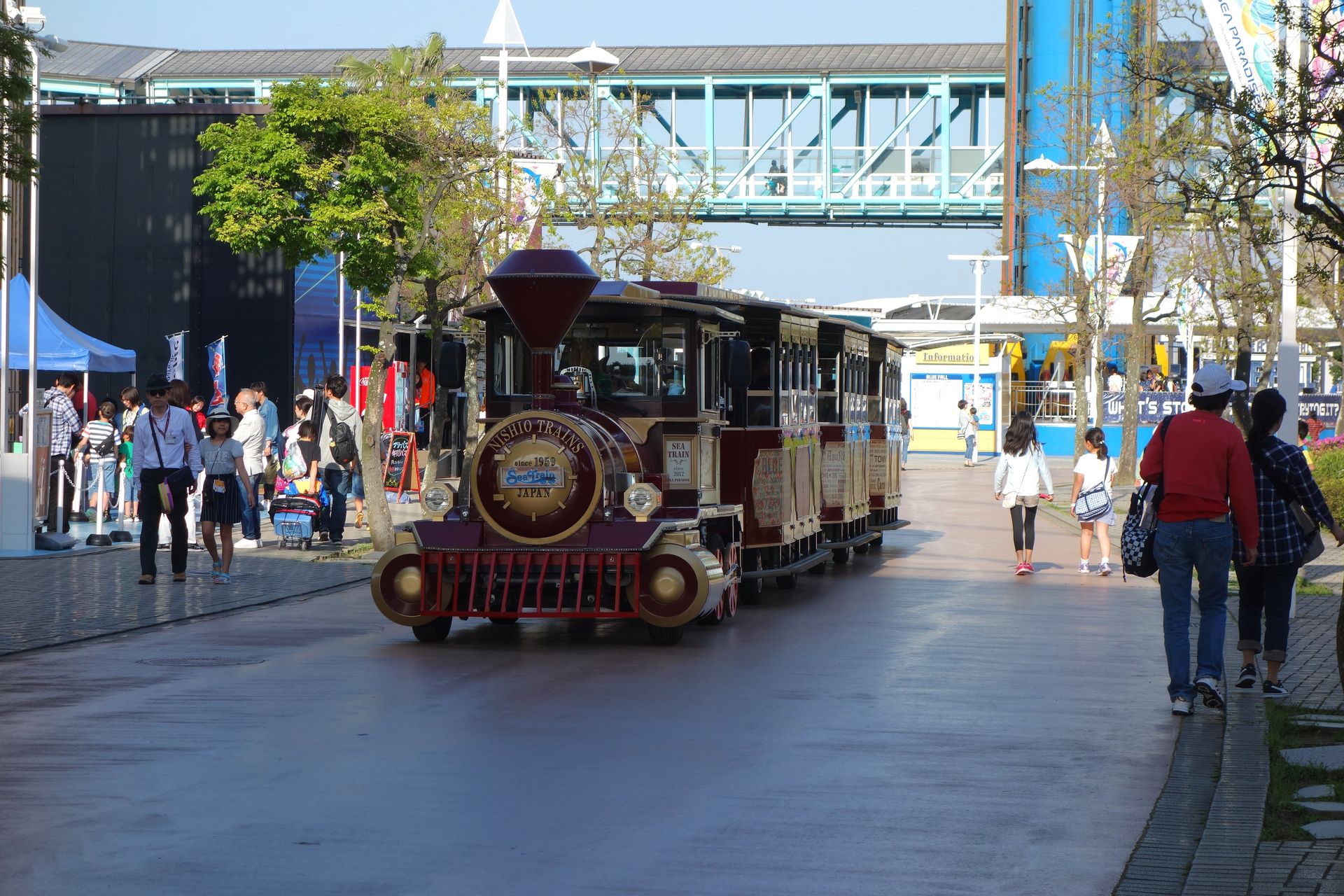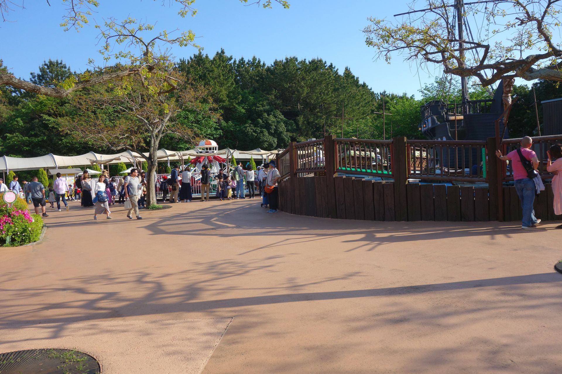 Der Park selbst ist demnach wieder frei zugänglich, man zahlt nur die einzelnen Fahrten und die Eintritte für die Aquarien. Wir hätten zwar wohl auch an einem der Ticketautomaten bei den Attraktionen unseren Tagespass ziehen können, der Einfachheit halber wollten wir allerdings lieber bei einem Menschen kaufen. Aus Zeitgründen verzichteten wir auf die Aquarien und kauften lediglich den Pleasureland Pass für 3.000 Yen. Gratis dazu markierte man uns im Flyer auch den Hinweis, dass Attraktionen aufgrund des Wetters geschlossen sein könnten. Das scheint aber wohl Standard zu sein, es herrschte schließlich bestes Freizeitpark-Wetter.