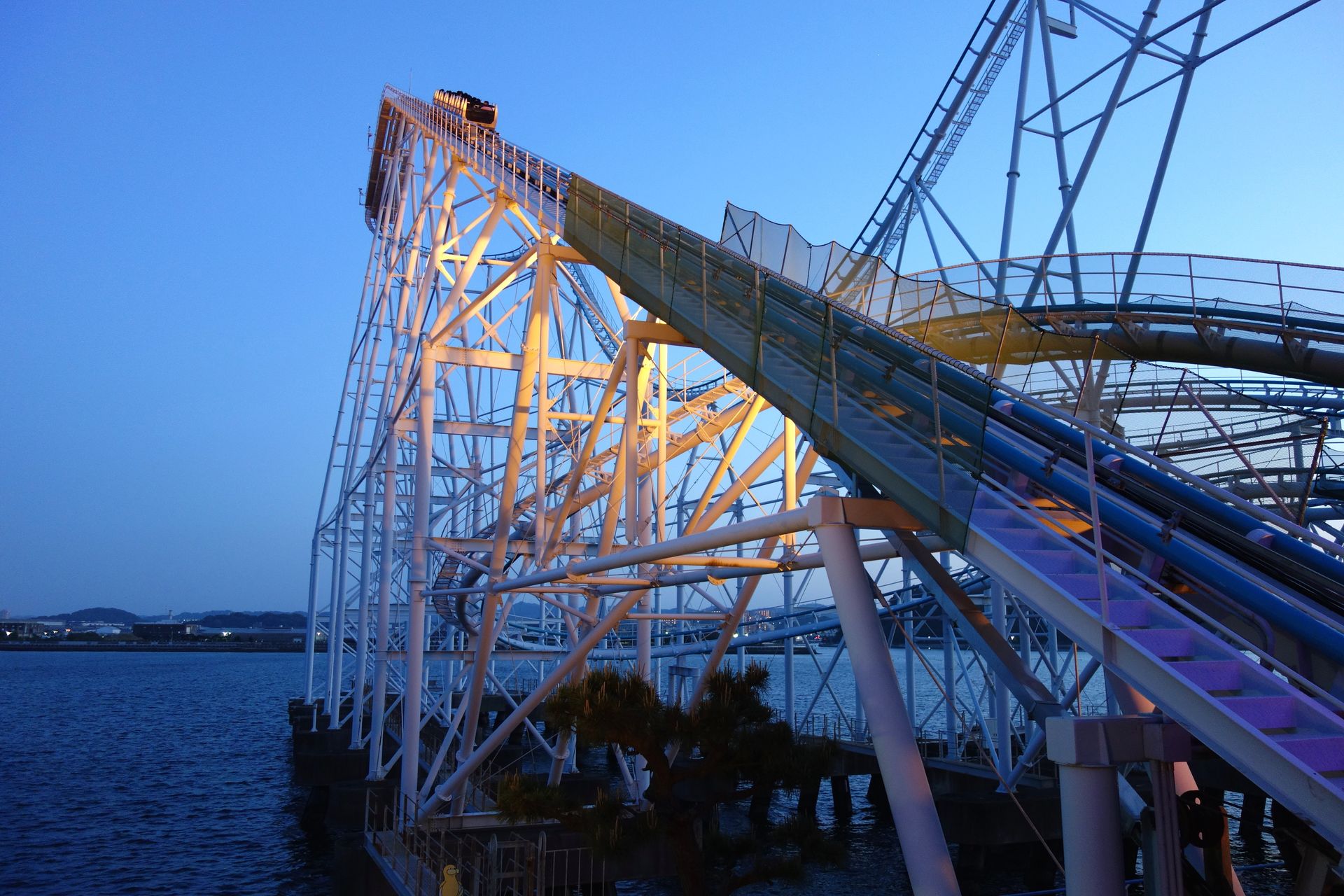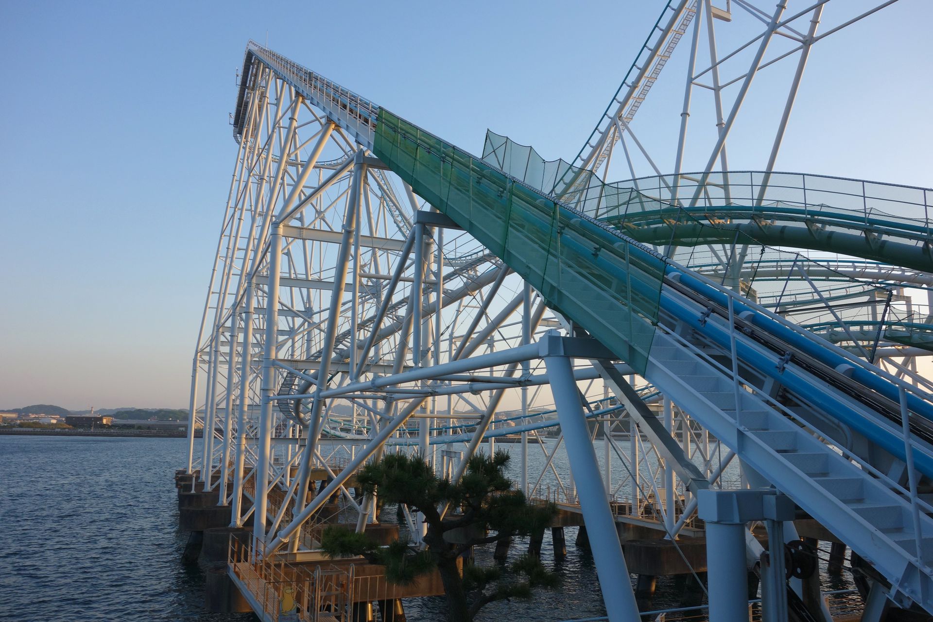 Das Aushängeschild des Parks wirbt damit, Japans erste Achterbahn auf dem Meer (zumindest teilweise) gewesen zu sein.