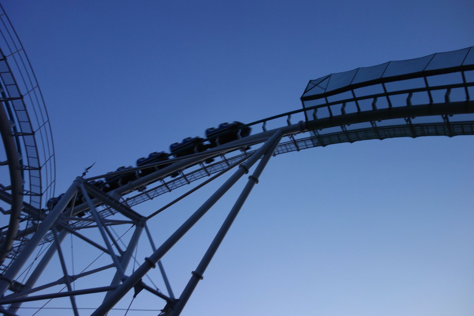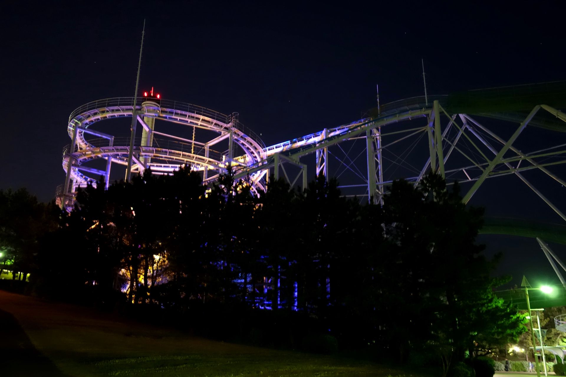 Sit Down Coaster, den ich aus dem Hause Togo kenne. Tolle Lage am und auf dem Wasser, hervorragende Fahreigenschaften, spacige Züge und eine stimmungsvolle Beleuchtung. Das Layout überzeugt mit einer guten Mischung aus knackiger