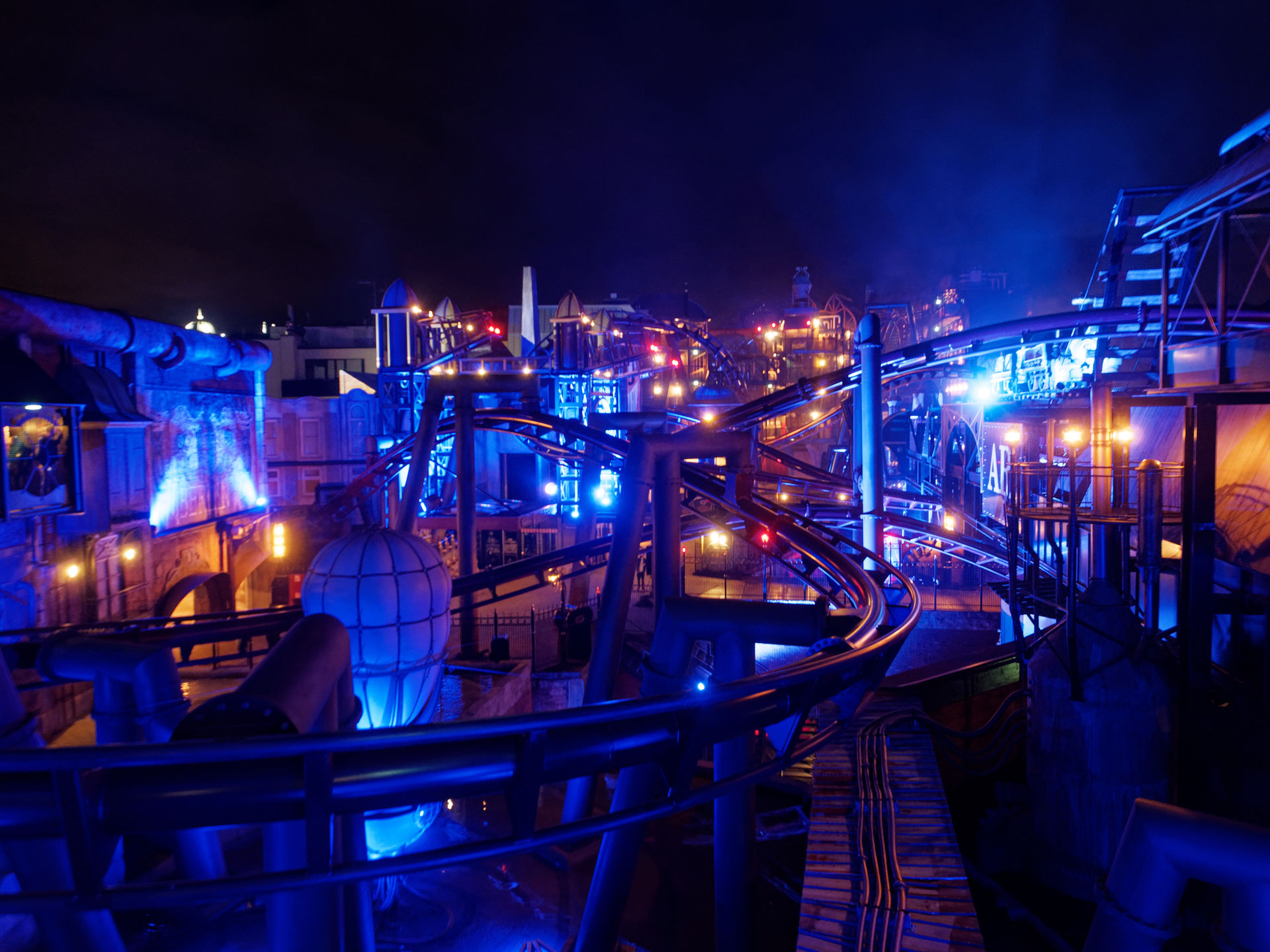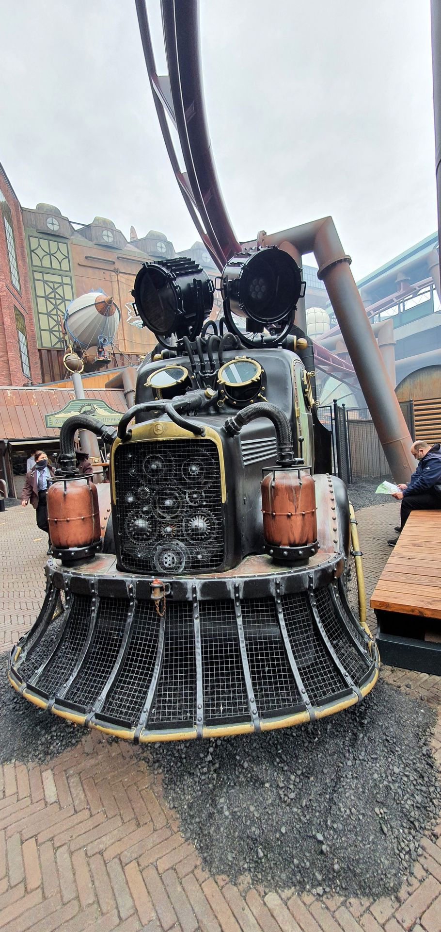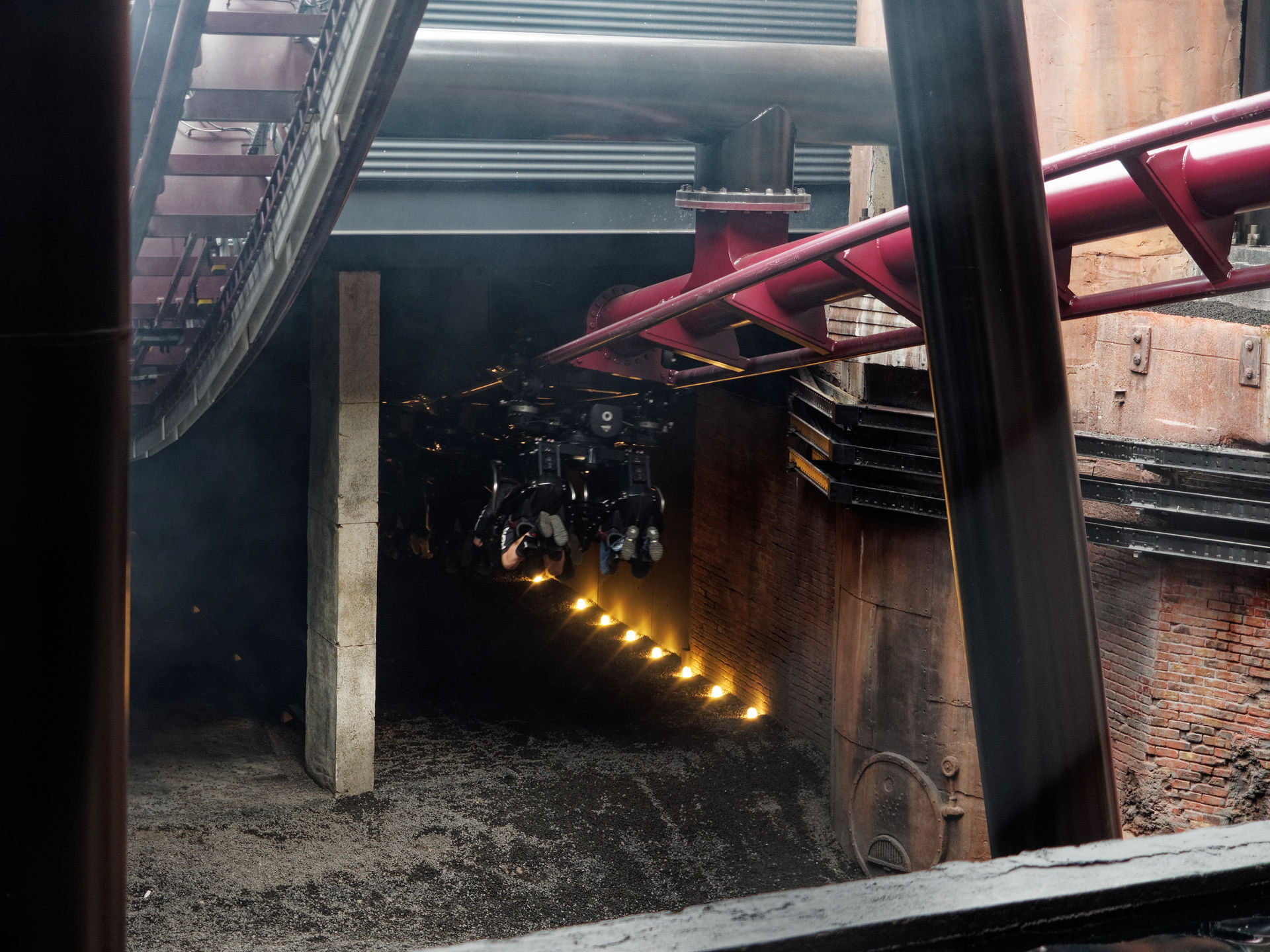 Hat man den Bereich betreten fühlt man sich wie in einer anderen Welt, an keiner Stelle gibt es die Möglichkeit die Außenwelt oder andere Themenbereich zu sehen. Überall finden sich dampfende Ventile, Gullideckel oder analoge Anzeigen die sich bewegen. IMAScore hat wieder einen passenden Soundtrack und die Geräuschkullisse erstellt.