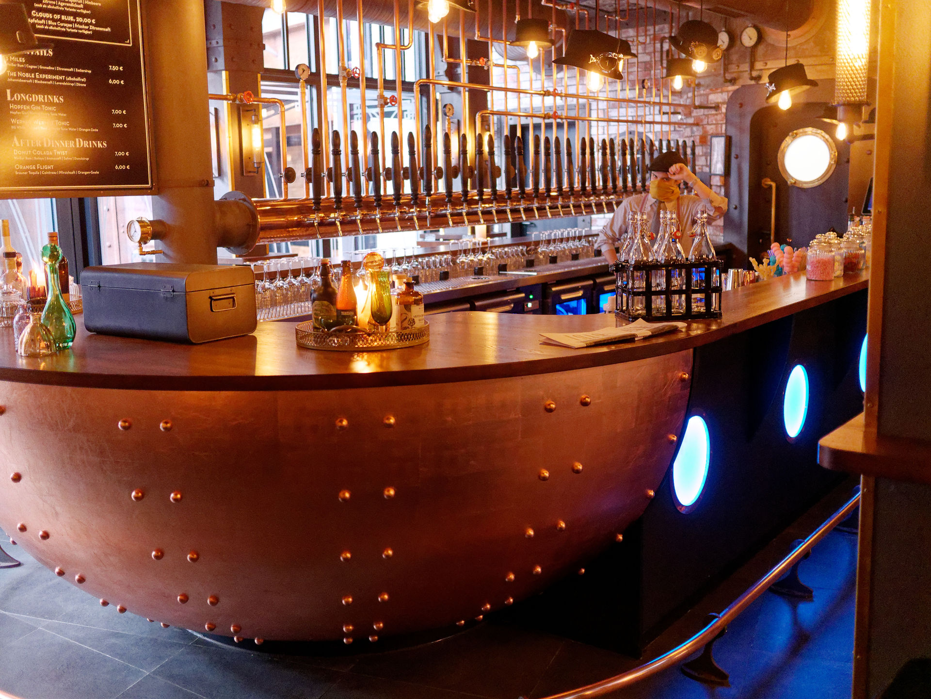 Um den Abend nicht in den kleinen Kabinen zu verbringen gibt es eine schöne Bar, wie schon erwähnt gibt es 15 Sorten Bier und ein paar Cocktails auf der Karte. Besonders müssen jedoch die Cocktail Bowls sein. "Vasen" gefüllt mit Cocktails für jeweils zwei Personen. Probiert haben wir das jedoch nicht. Empfehlen kann man auf jeden Fall das Bier-Tasting mit vier verschiedenen Sorten. Der Barkeeper erklärt dann auch ausgiebig zu jeder Biersorte ein wenig.