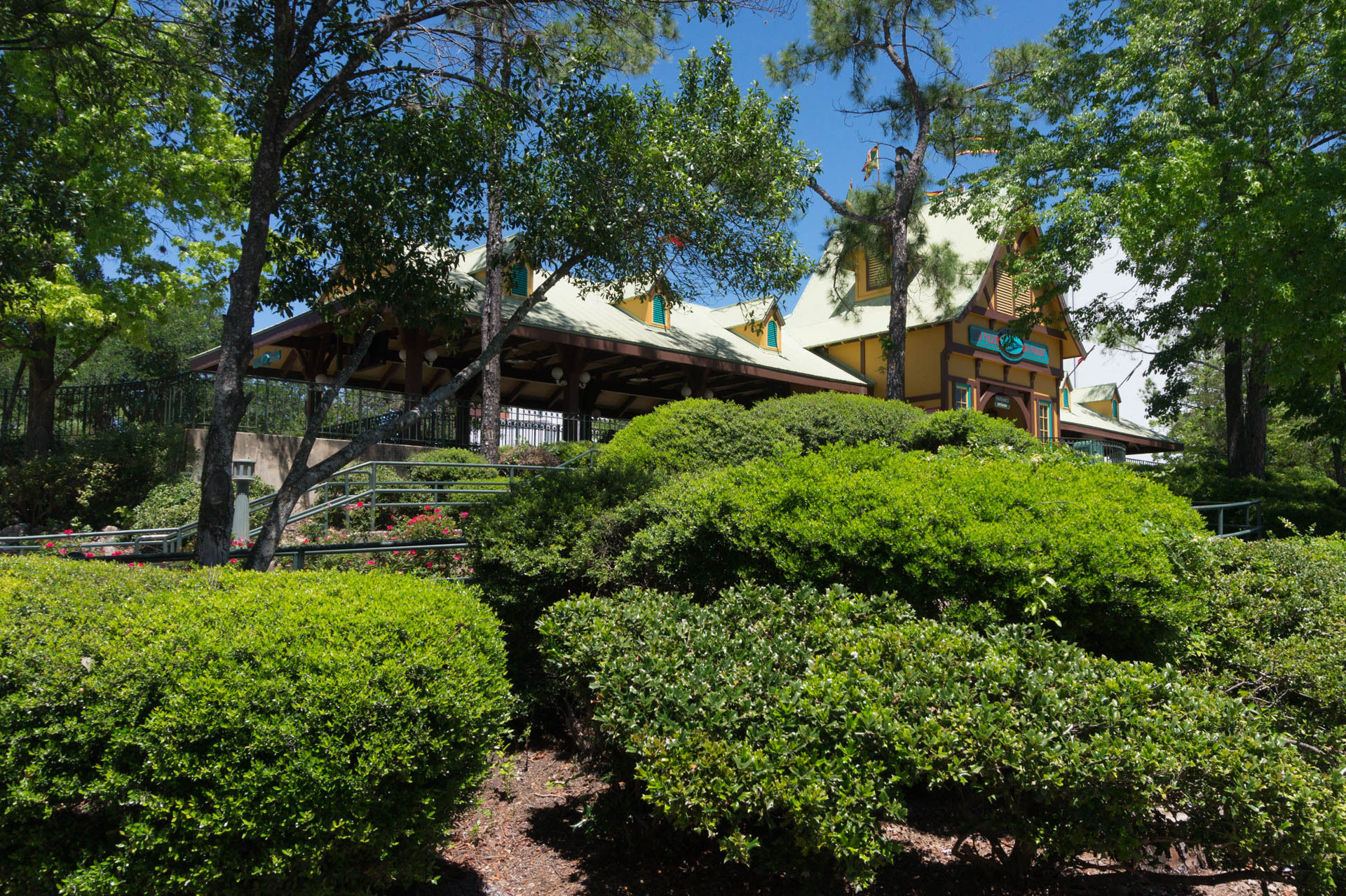 wo wir zum ersten Mal die Vorliebe des Parks für hochgelegene Bahnhöfe erleben, die nur über ein Netz von Rampen zugänglich sind.
