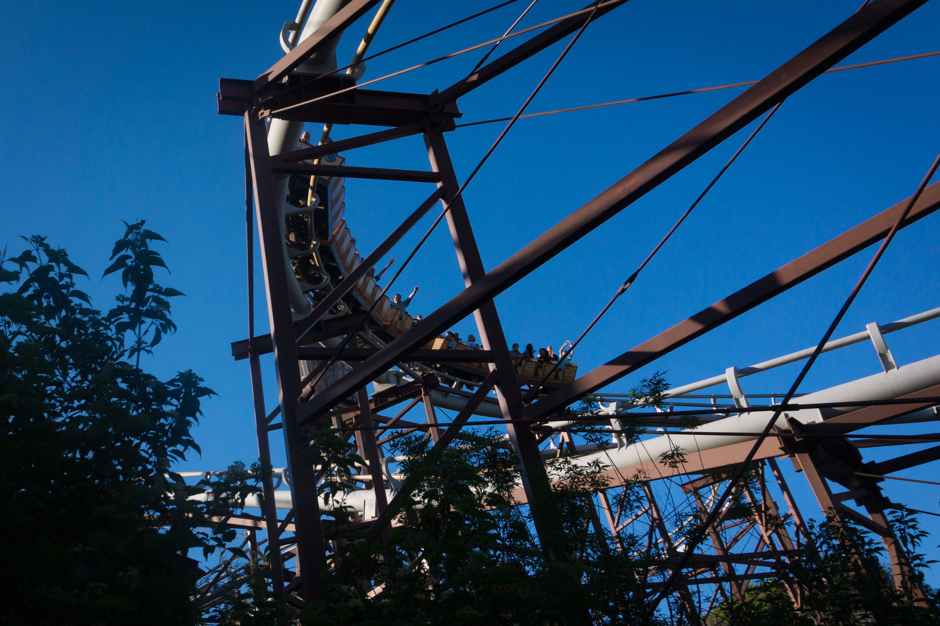 Nach einer Senke schrauben wir uns stetig aufwärts, was in der ersten und einzigen Inversion der Fahrt gipfelt.