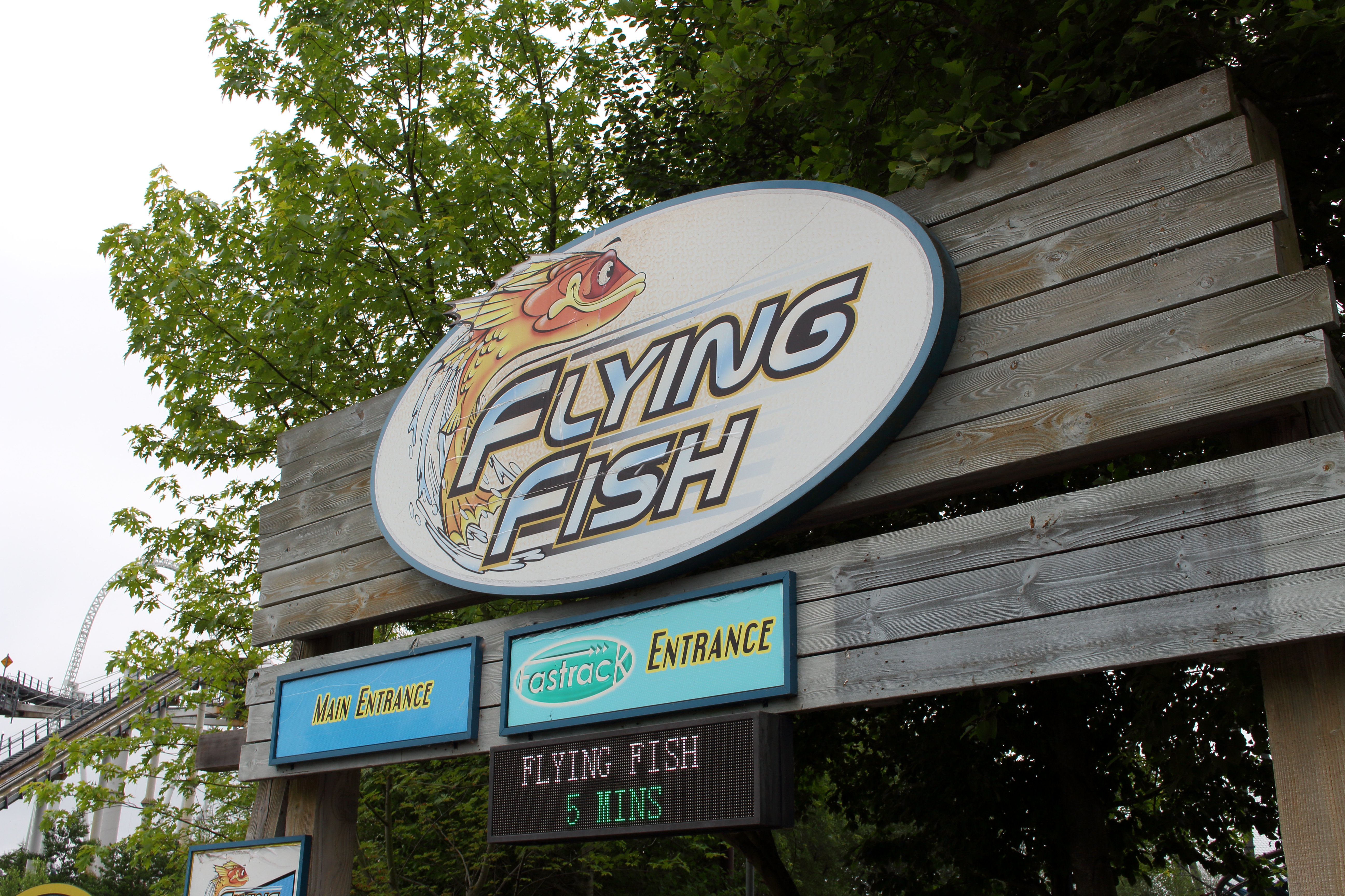 Wieder vorbei am Flying Fish und der Storm Surge. Das Ding hatte den ganzen Tag über mit die höchsten Wartezeiten, weswegen wir auf eine Fahrt verzichtet haben.