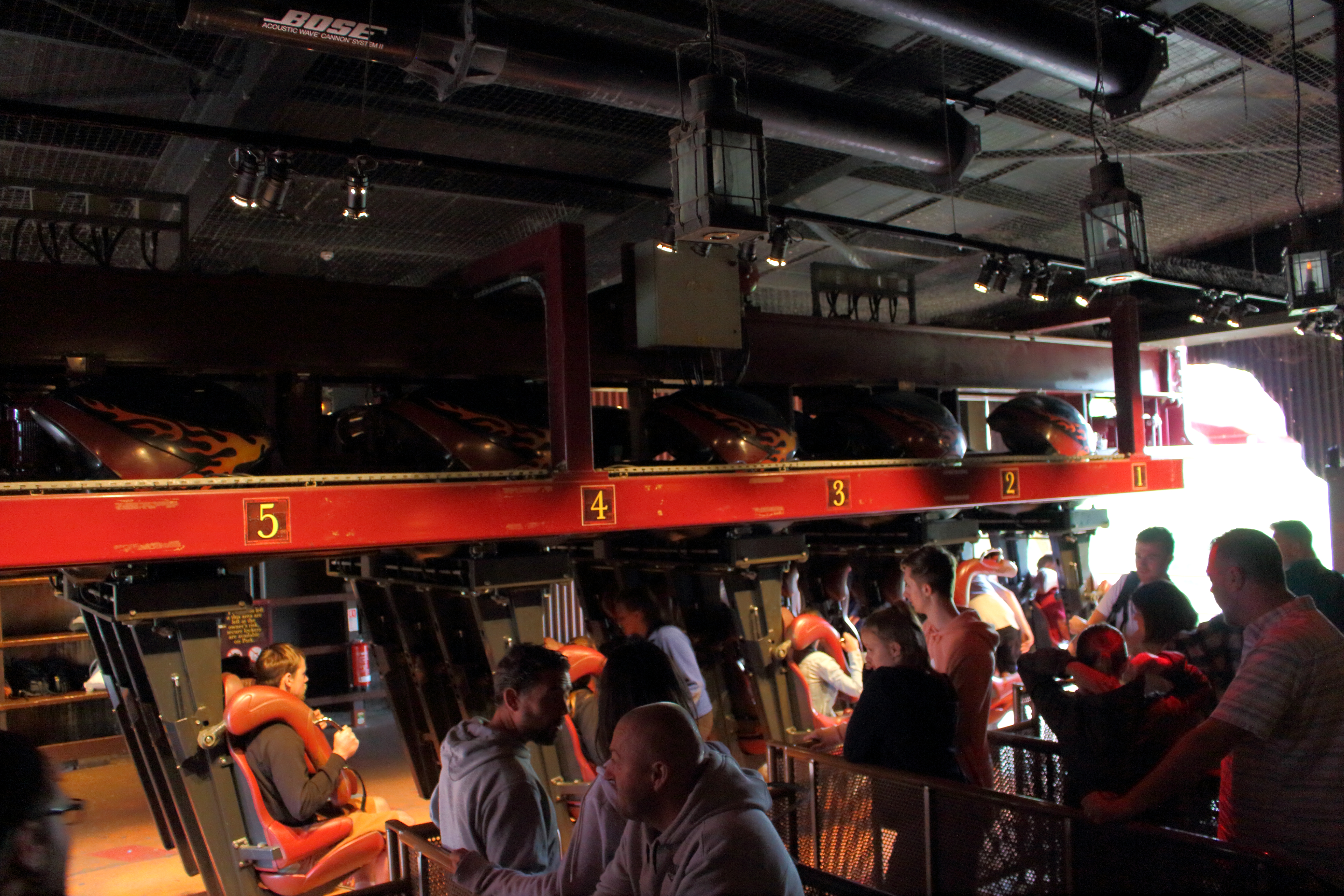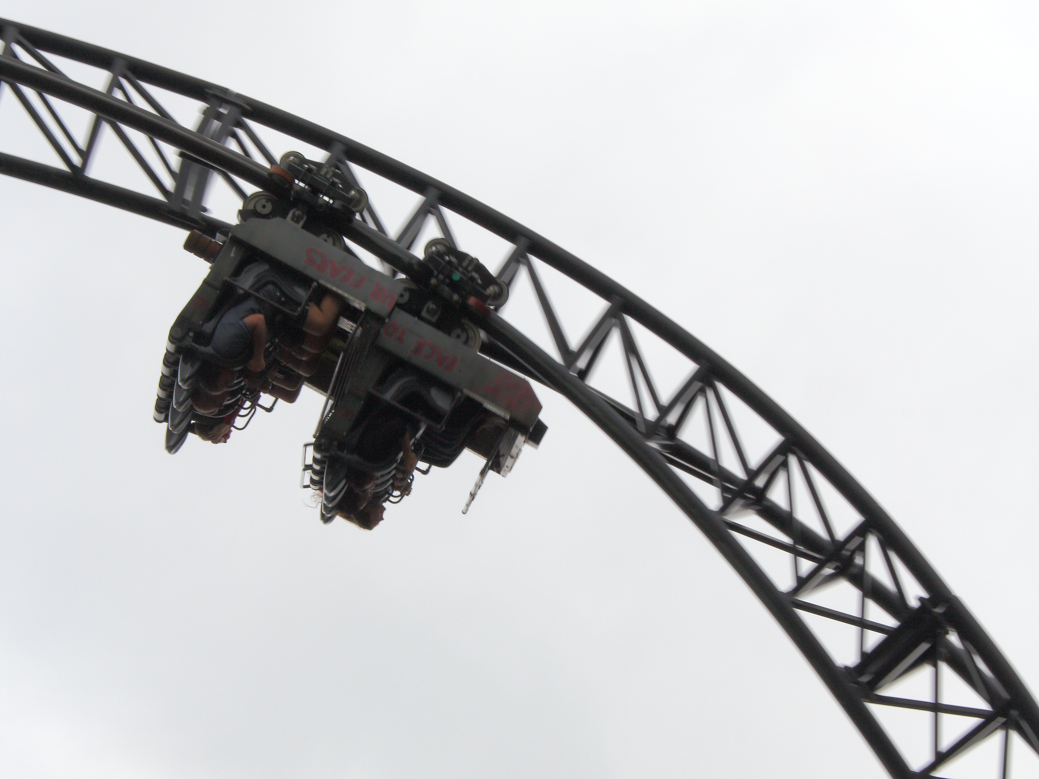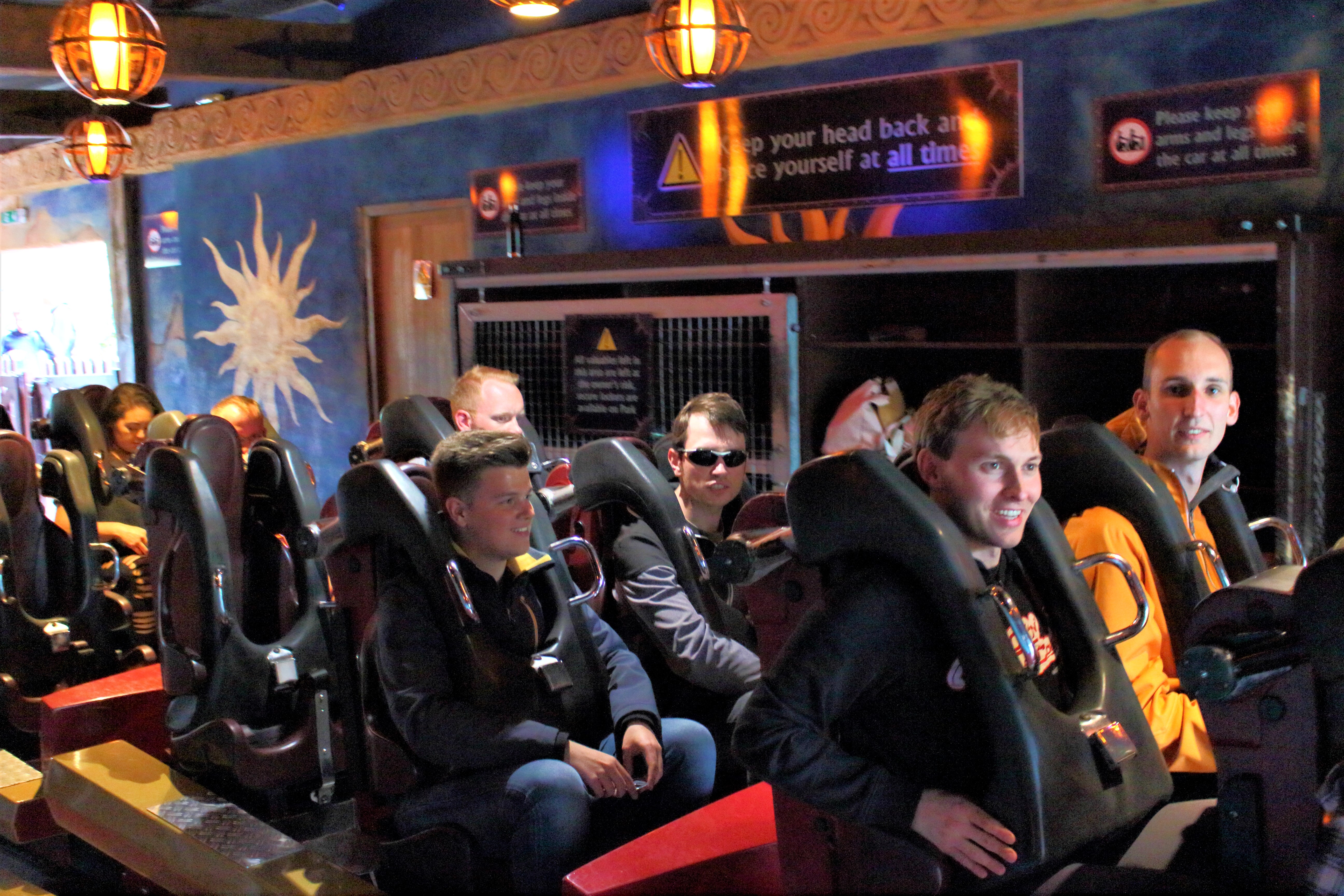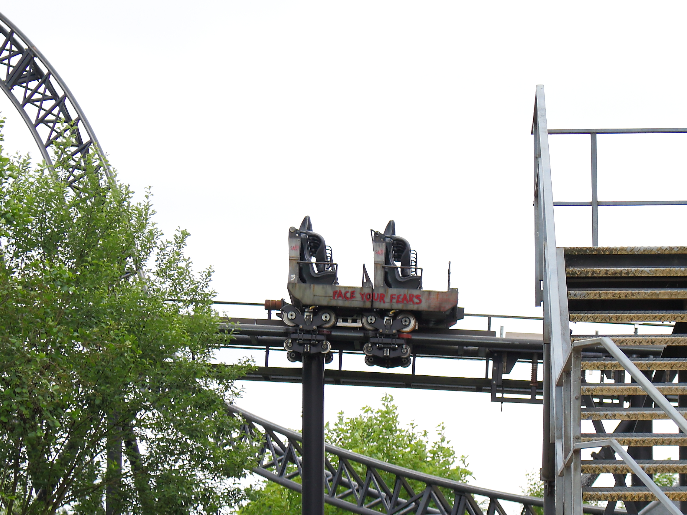 Wie schon zuvor bei SAW habe ich versucht meine Wut herunterzuschlucken und einfach nur die Bahn zu genießen, die sich ihr Personal leider nicht aussuchen darf. So nahm ich endlich in der schlichten Station im etwas unförmigen Zug mit einem wuchtigen Schulterbügel Platz. Das Einsteigen und Durchlaufen ist etwas schwierig, aber wenn man seine Extremitäten mal an passender Stelle verstaut hat und der Bügel geschlossen wurde, finde ich es alles andere als unangenehm.