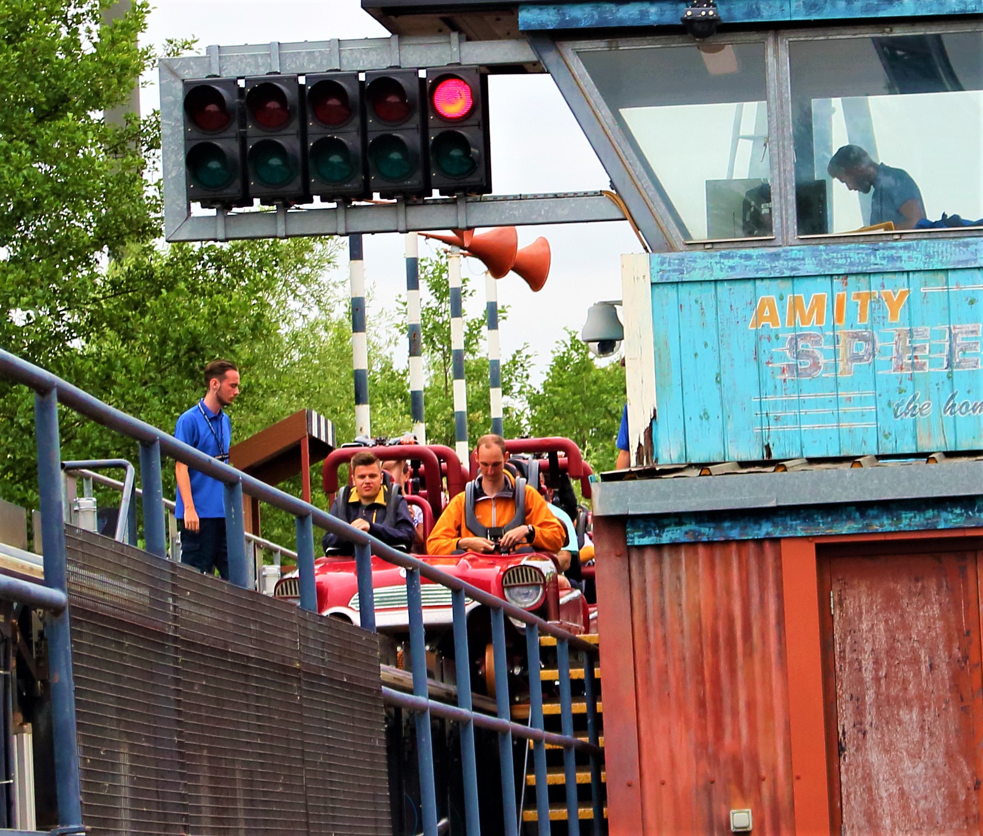 Als dann der Betrieb wieder aufgenommen wurde, haben sich von den 6 Mitarbeitern im Häuschen immerhin zwei herausgetraut und den einzelnen Zug langsam abgefertigt. Dass man nach so einem Fiasko nicht wenigstens einige Zeit versucht die Abfertigung zu optimieren, damit die Warteschlange mit den verärgerten Gästen schneller abgearbeitet ist, verstehe ich ebenso nicht. Ich habe schon viel unsinniges seitens Ride-Ops erleben dürfen. Aber Merlin hat hier eindeutig den Preis für die unfähigsten Mitarbeiter gewonnen.