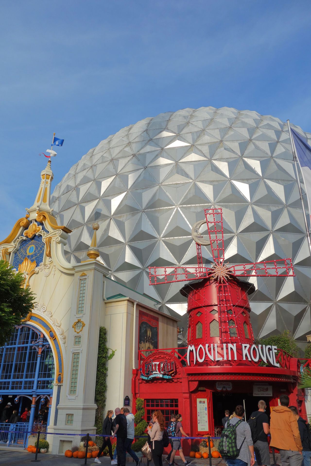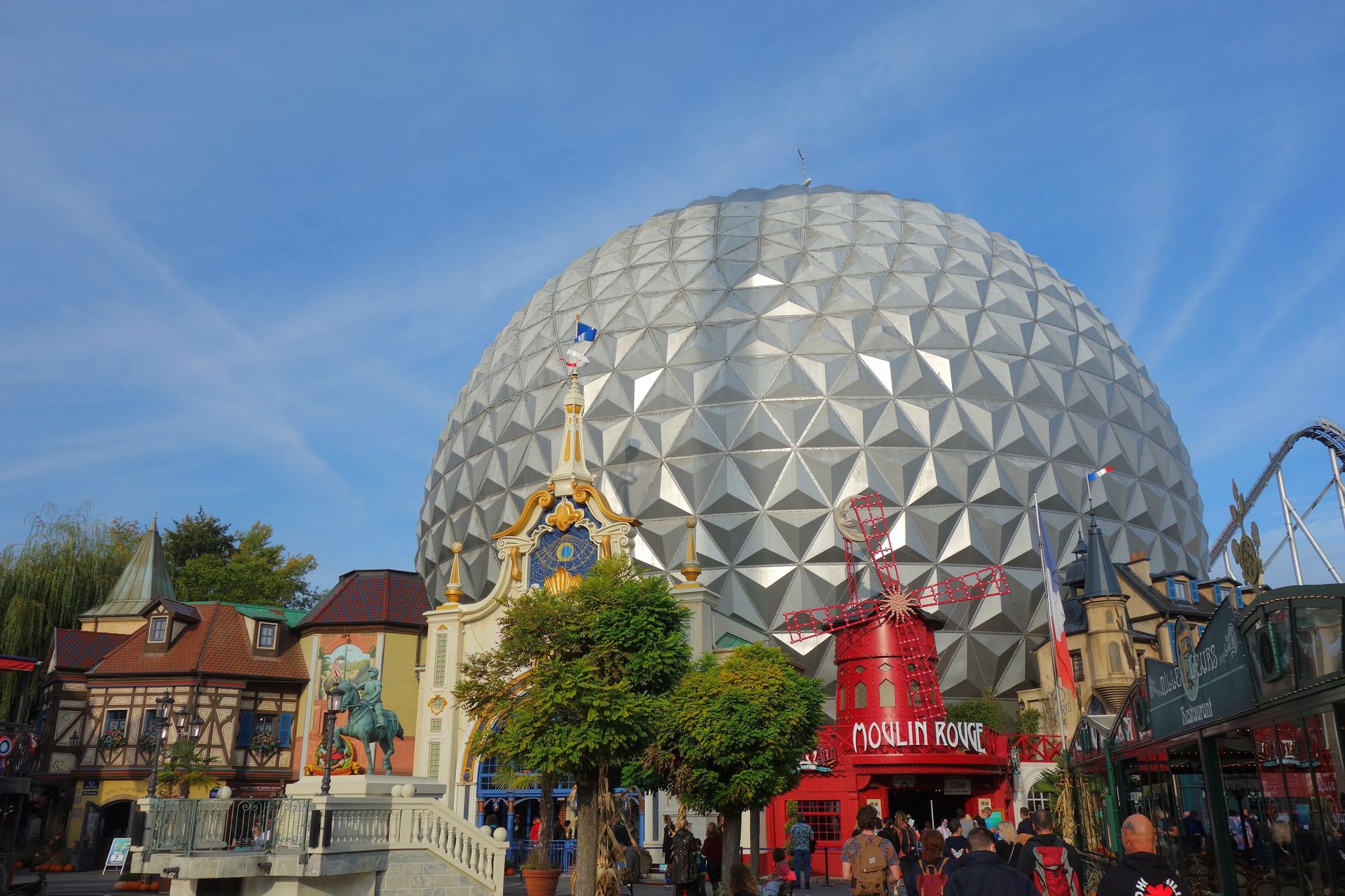 Auch wenn sich das jetzt vielleicht nach einer horrenden Wartezeit anhört, ging es kontinuierlich voran und wir saßen nach rund 20 Minuten in einem der wunderschönen Züge des Eurosat CanCan Coasters. Das Ding schaufelt eben ordentlich was weg. Und auch von der Fahrt an sich war ich doch positiv überrascht. Die etwas ruppigere Fahrweise der alten Bahn passte ganz gut zum damaligen Weltraumthema. Für den jetzigen Nachtflug über Paris wäre das sicherlich nicht akzeptabel gewesen, sodass eben für 2018 die gesamte Strecke ausgetauscht und damit glattgebügelt wurde. Ich kann jeden verstehen, der der alten Eurosat nachweint, aber dieses Kapitel ist nunmal leider Vergangenheit. Rasant wie eh und je ist die Bahn trotzdem noch und die 1-2 Anpassungen im Layout finde ich auch absolut gelungen. Über die Umsetzung der neuen Themingelemente kann man da schon eher streiten. Mein Fall sind diese bunten, flachen Papp-Sehenswürdigkeiten auch nicht, aber so in Echt hat es mir dann doch besser gefallen als nach den ersten Videos erwartet. Die paar Asteroiden am Boden der Kugel bei der alten Bahn waren doch auch nicht sooo viel besser. Jetzt hat man wenigstens auf der gesamten Strecke etwas zu sehen und die Fahrt hat einen gewissen roten Faden. Noch mehr überrascht hat mich nur, wie gut der CanCan-Soundtrack zur Fahrt passt. Insbesondere das Finale wirkte für mich mit der Musikuntermalung nochmal ein Stückchen rasanter.