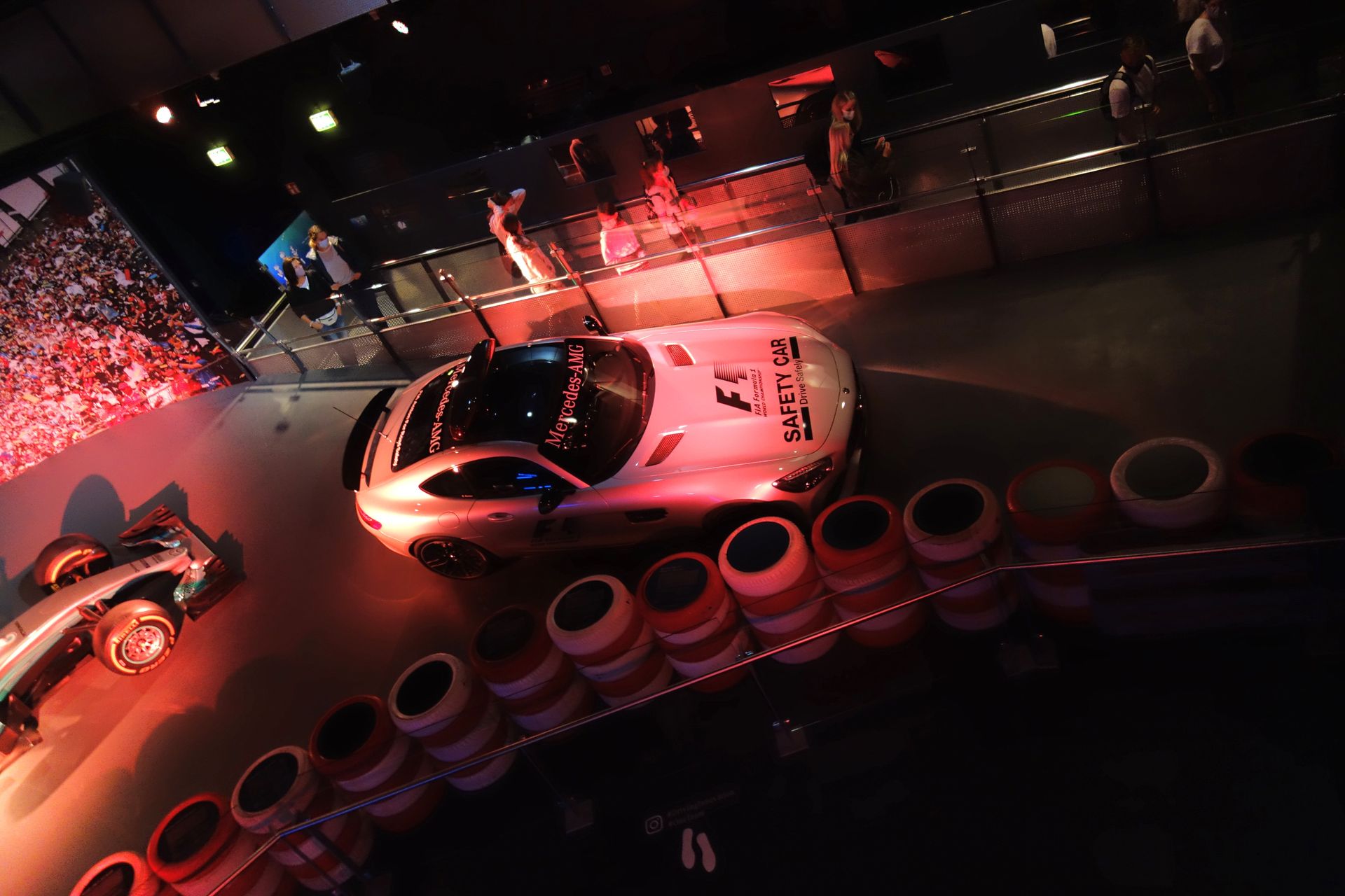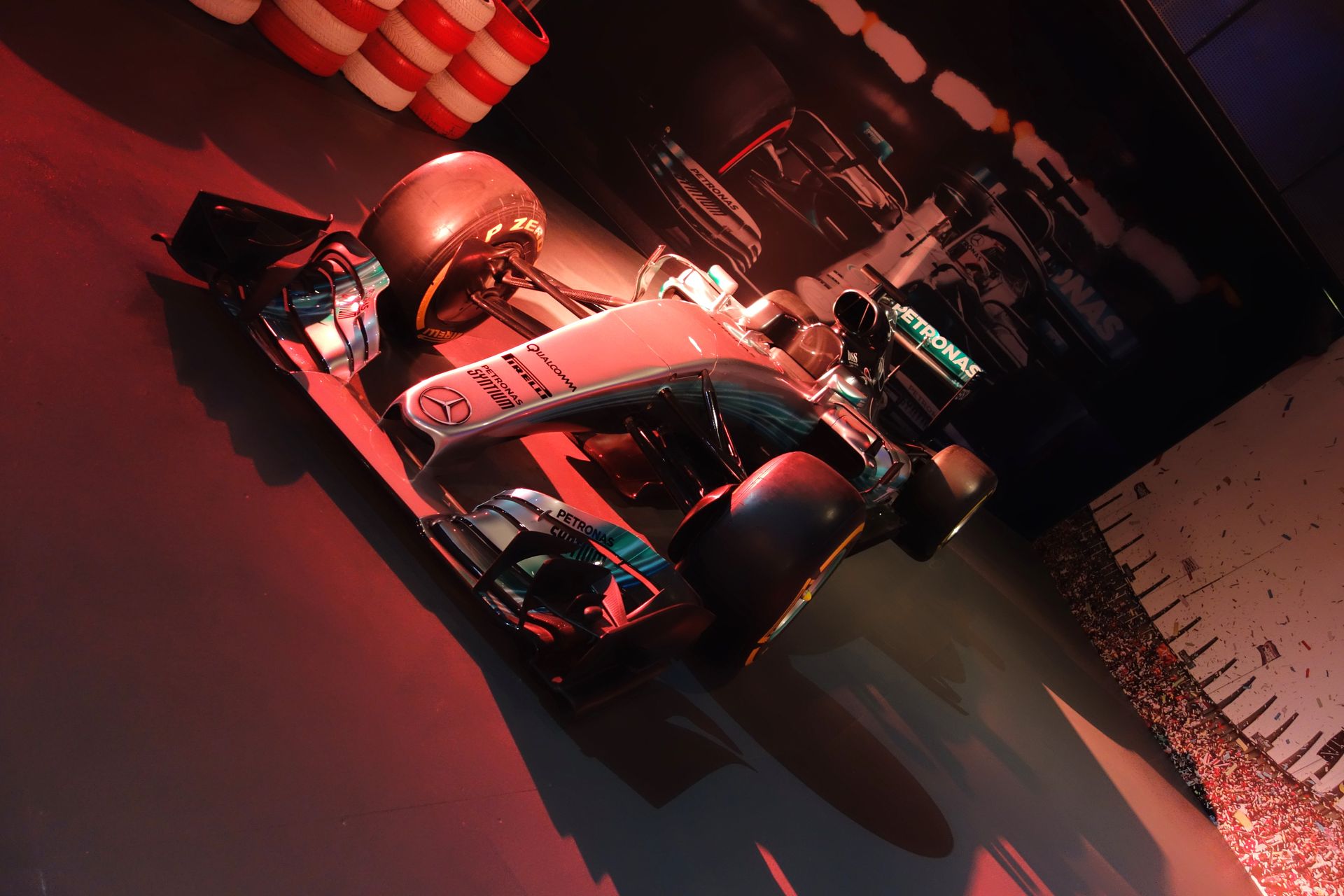 Zumal die Wartezeit trotz aus der Halle herausragender Warteschlange nur gute 15 Minuten betrug. Während dieser Zeit gab es neben dem bereits gezeigten Safety Car auch einen Formel-1-Wagen zu bestaunen. Nachdem ich jetzt diverse Bilder der verschiedenen Mercedes-Renner verglichen habe, müsste das ein Mercedes F1 W07 Hybrid sein - das Weltmeisterauto von Nico Rosberg aus dem Jahr 2016. Allerdings in der Lackierung des Nachfolgers von 2017.