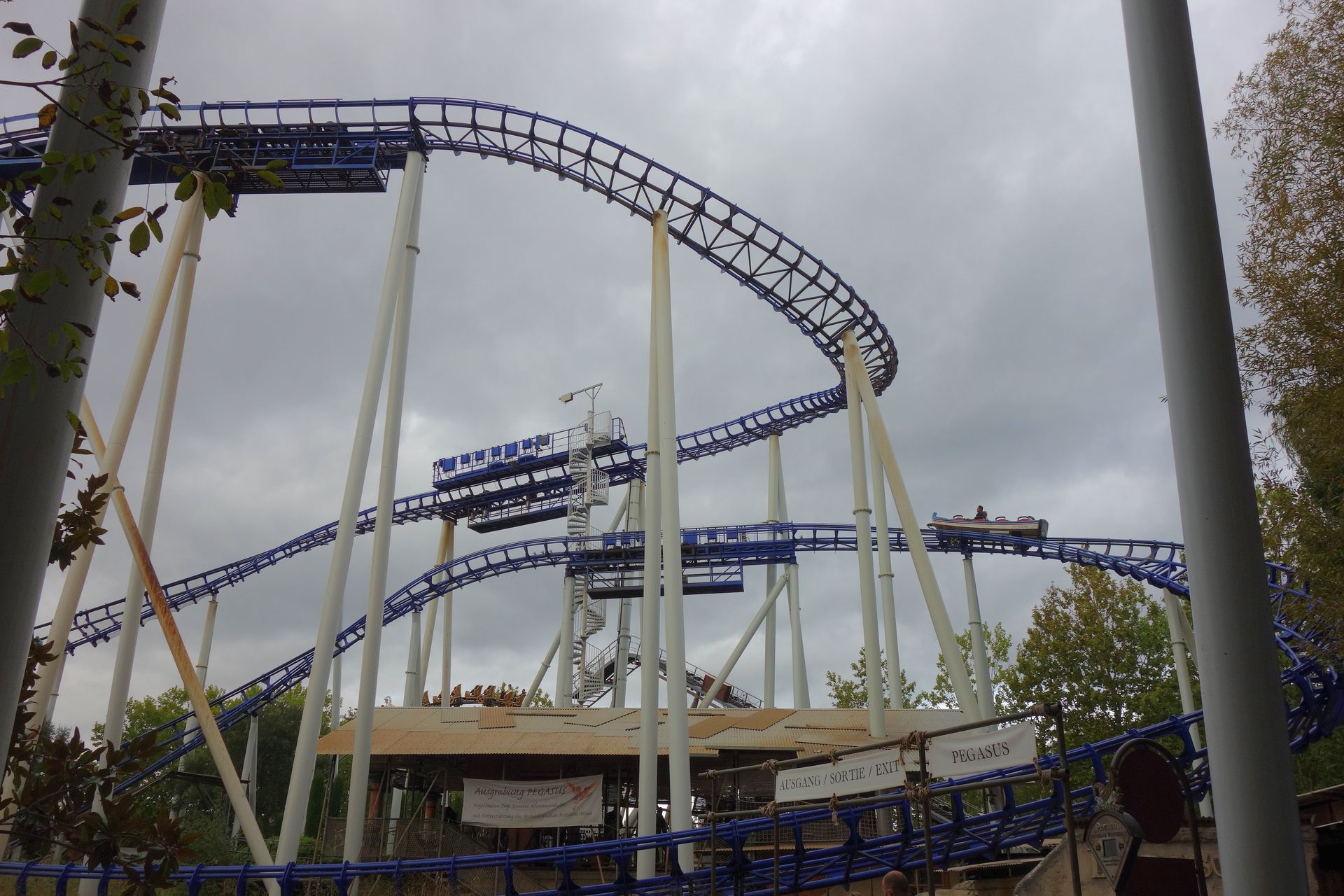 An der Kugel vorbei ging es zur zweiten französischen Achterbahn, welche nach dem Logo eines deutschen Automobilbauers benannt wurde.