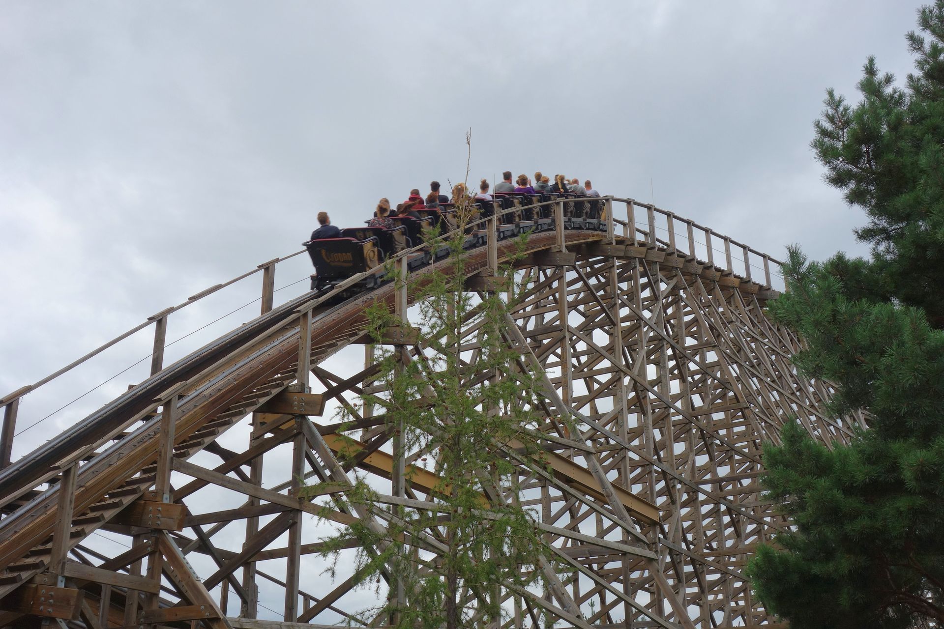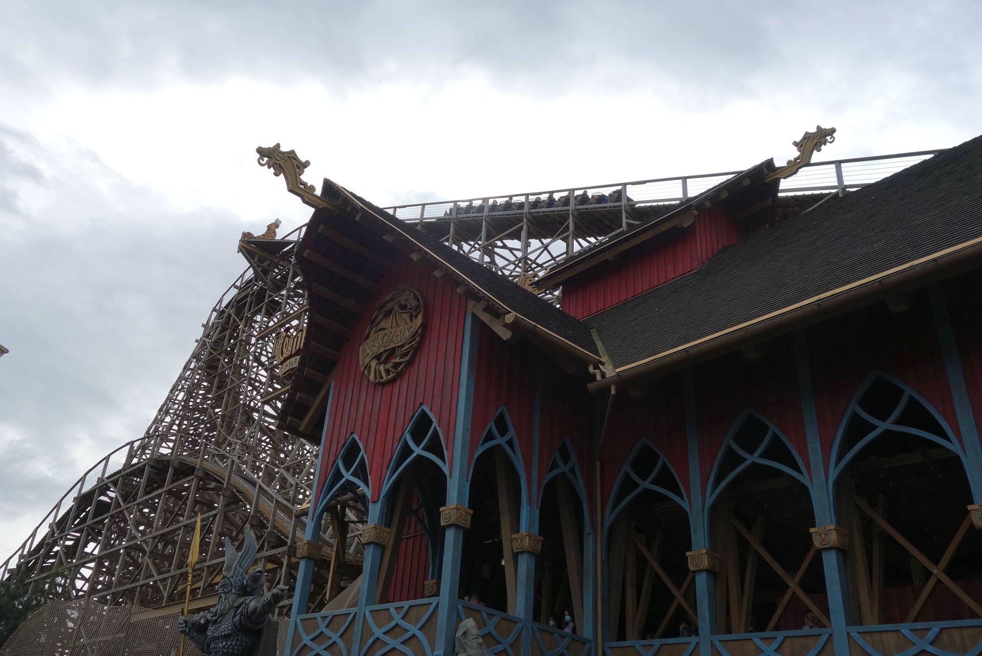 Im Anschluss an den wilden Ritt über die nordischen Holzberge gönnten wir uns etwas Zeit zur Entspannung. Schließlich hatten wir schon einiges geschafft und es war gerade erst Mittag. Außerdem hatte ich uns direkt nach Ankunft im Park über die App eine Virtual Line bei Wodan gebucht. Bis zu unserem Zeitslot lohnte es nicht wirklich, nochmal weiter weg zu gehen. So hatten wir letztendlich für die zweite Fahrt mit Virtual Line nochmal genauso lange gewartet wie in der normalen Schlange. So richtig lohnen tut sich das System also nur bei vollem Park, dann sind die Zeitslots aber auch entsprechend schnell weg. Angesichts der kaum vorhandenen Wartezeiten bevorzugten wir für den Rest des Tages die Real Line.