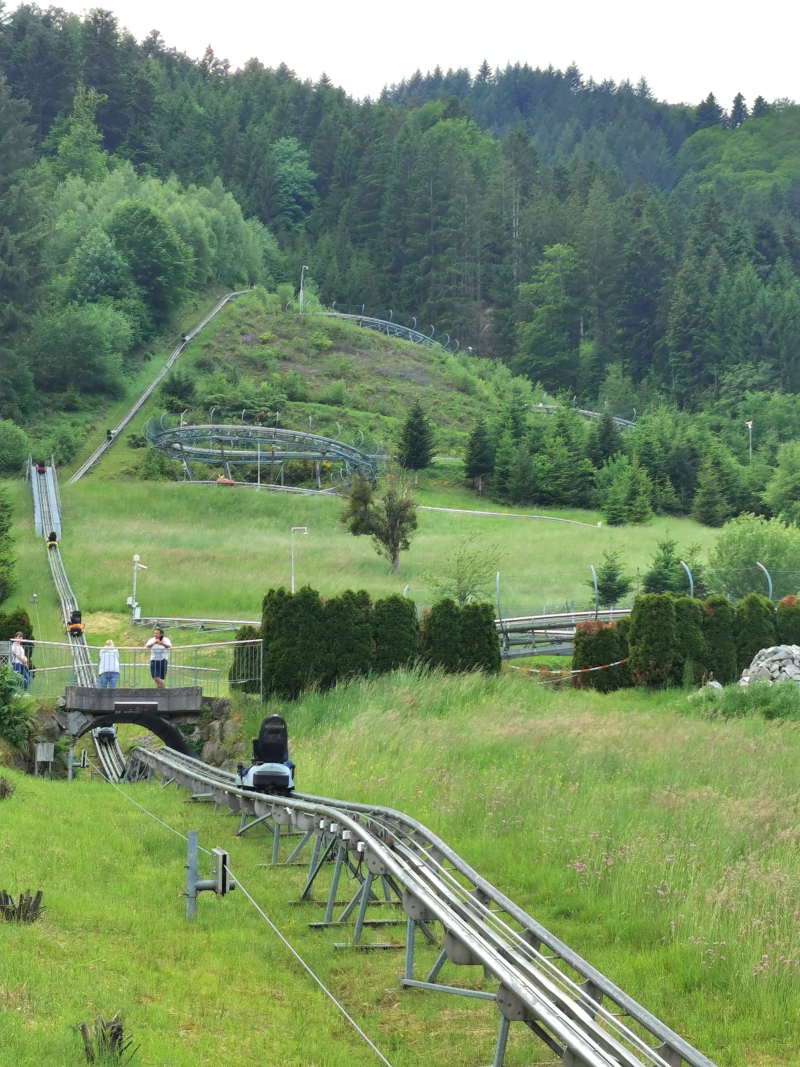 Kreisel der Strecke. Insbesondere im oberen Teil zieht es einen dabei wieder gerne nach links oder rechts. Und mit den Fahrgästen vor mir hatte ich auch Glück, sind diese doch fast ungebremst runtergefahren, weshalb ich mit ein wenig Abstand voll durchbrettern konnte.