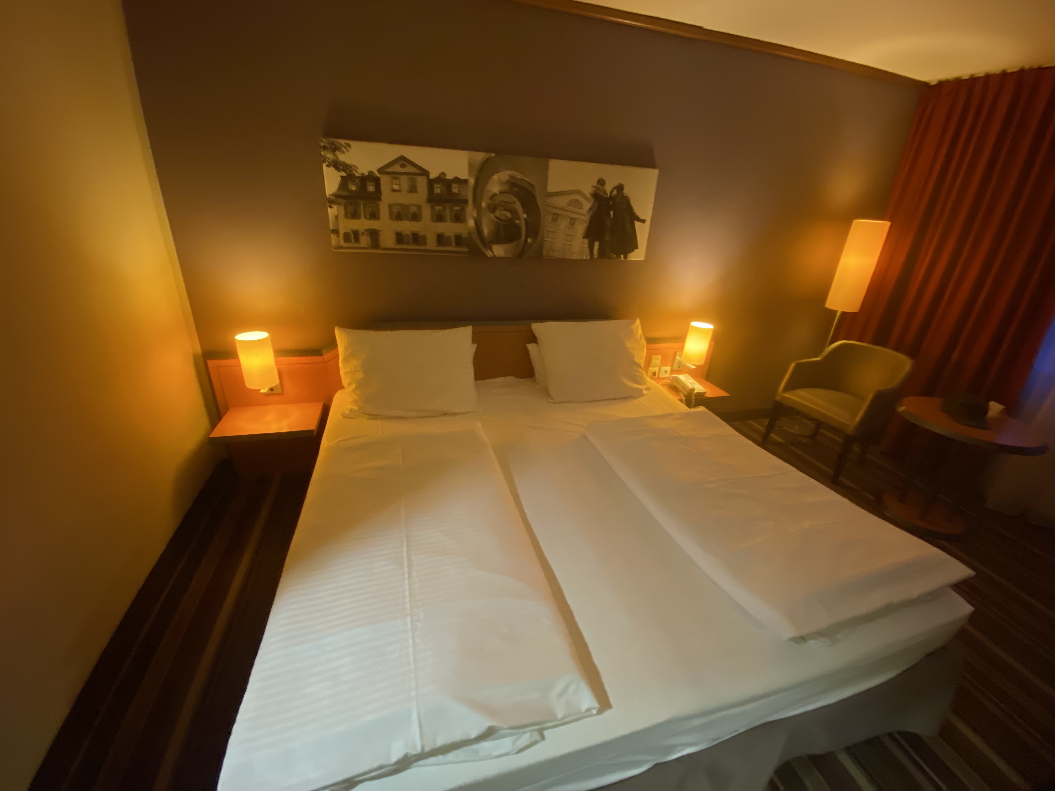 Stau in Dortmund, Gewitter und Regen vor Kassel, dann wieder schönstes On-the-Roasd-Wetter bis wir gegen halb zehn am Abend in der Wiege der Republik, der Stadt der Dichter und Denker im Hotel einchecken.