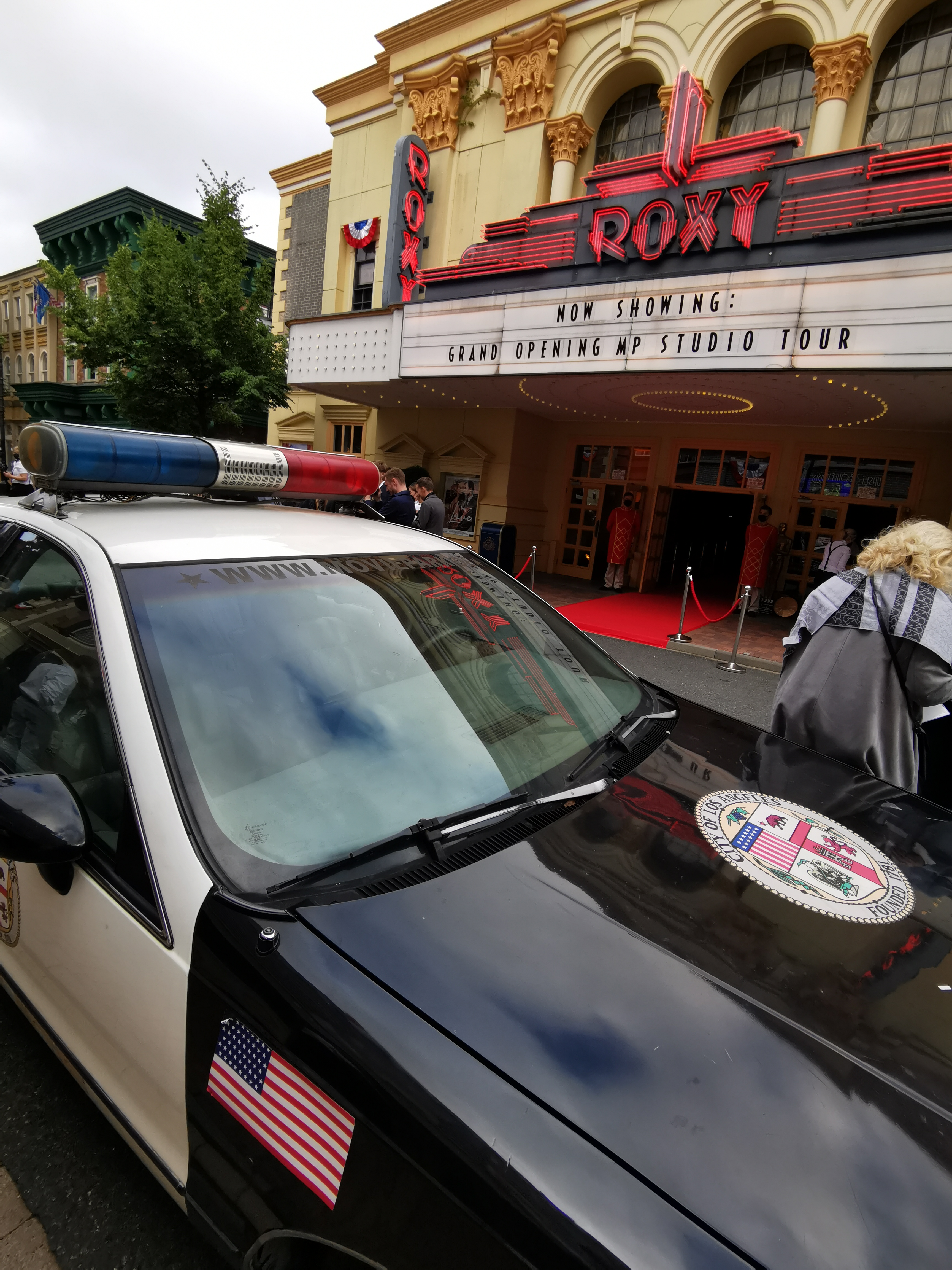 Nach einer kurzen Begrüßung durch Marilyn Monroe, Charlie Chaplin, Dick & Doof und mehr ging es vors Roxy-Theatre auf dem Hollywood Boulevard. Hier wurden Häppchen und Getränke gereicht, man konnte sich vor einer Fotowand ablichten lassen und halt einfach miteinander ins Gespräch kommen. Man muss sagen, der Service war sehr aufmerksam und für Nachschub wurde stets gesorgt.