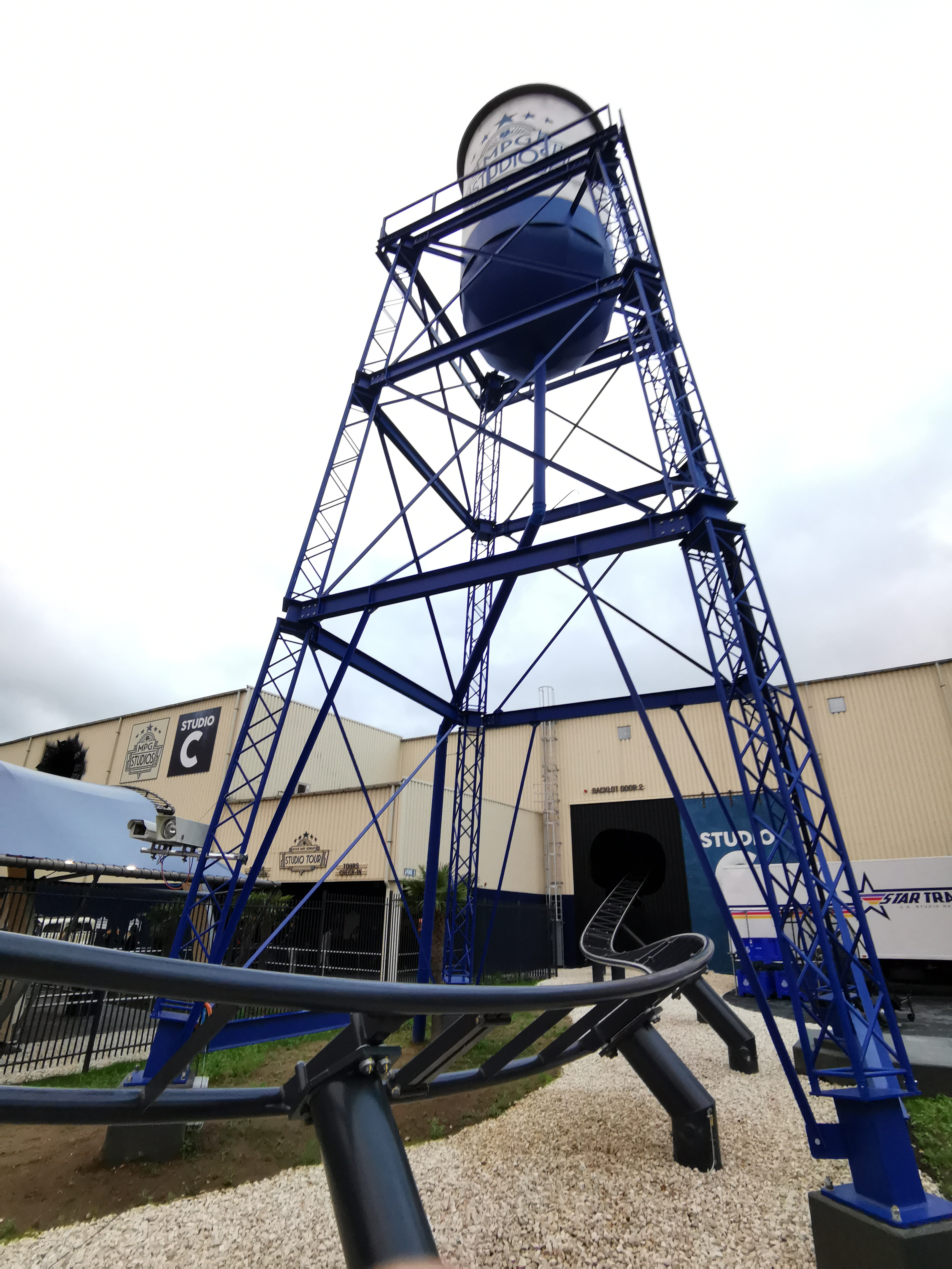 Kurz durchgeschüttelt, vorbei an einer Fake-Weiche inkl. weiterem Peppers Ghost Effect und SAM geht es in ein Wohnzimmer inklusive Sackgasse. Joa, wer Twister kennt weiß was passiert! Diverse Screens, vorne, links, oben, zeigen euch die nähernde Katastrophe und schon gehts rückwärts ab. Ein kurzer Achterbahnpart im Dunkeln mit ein paar Props, schon werdet ihr wieder gebremst. Vorbei an Aztekischen-Statuen und weiteren Filmprops gehts auf die äußerst flotte Drehweiche. Steven Thrillberg schickt euch zum nächsten Set, ein rasantes Rennen in der Stadt. Gerade diese Szene sieht absolut toll aus, bietet viele verschiedene Effekte und man entdeckt wirklich immer wieder etwas Neues.