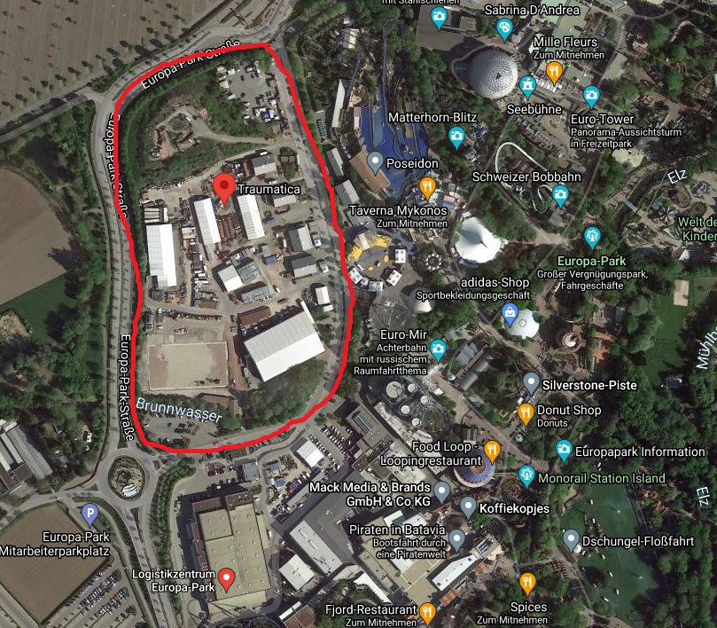 Mich würd viel eher interessieren, wo die Strecke verlaufen soll, das ist dann praktisch dort (wo einmal die Holzachterbahn geplant worden wäre?) wo das neue Logistikcenter ist? Oder geht die Bahn auf das Traumatica Gelände?