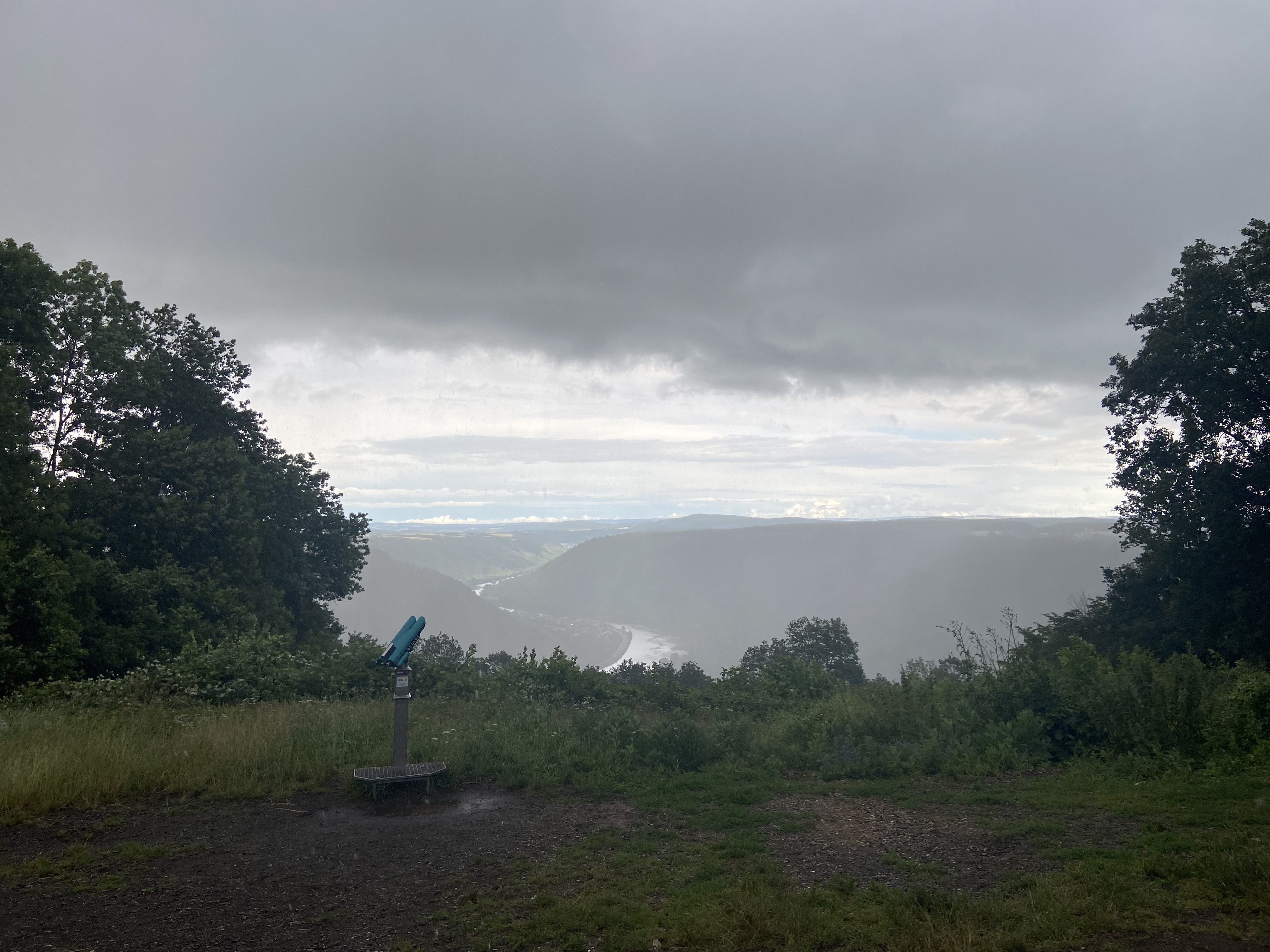 Das ist das Ende vom Parkbesuch - Blick im Regen auf die entfernte Mosel
