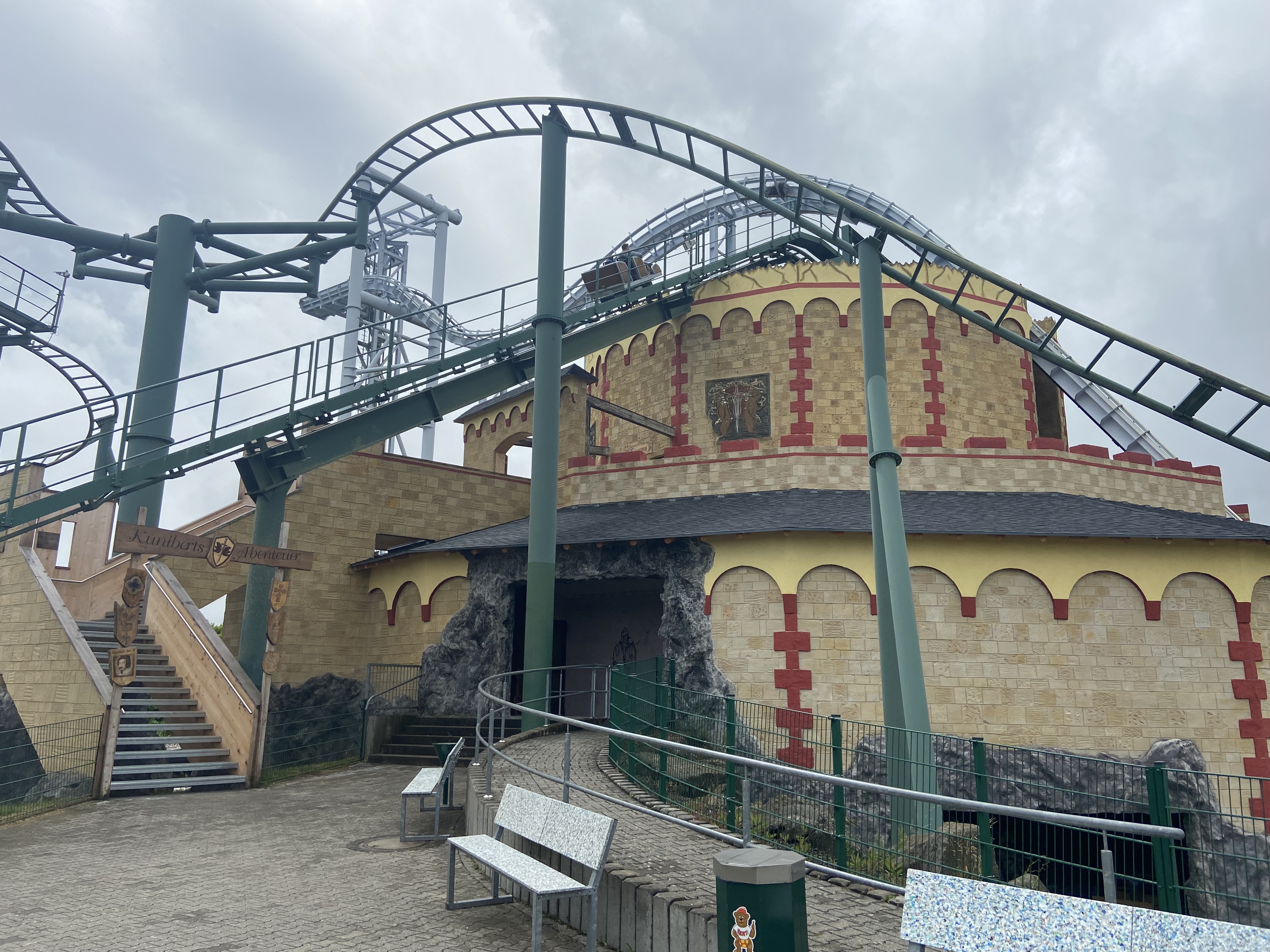 Aufgang zum neuen interaktiven Darkride - Name habe ich schon wieder vergessen. Irgendwas mit Kerzen? Zumindest musste man davon viele abschiessen. EDIT: Okay auf dem Eingangsschild steht "Kuniberts Abenteuer"