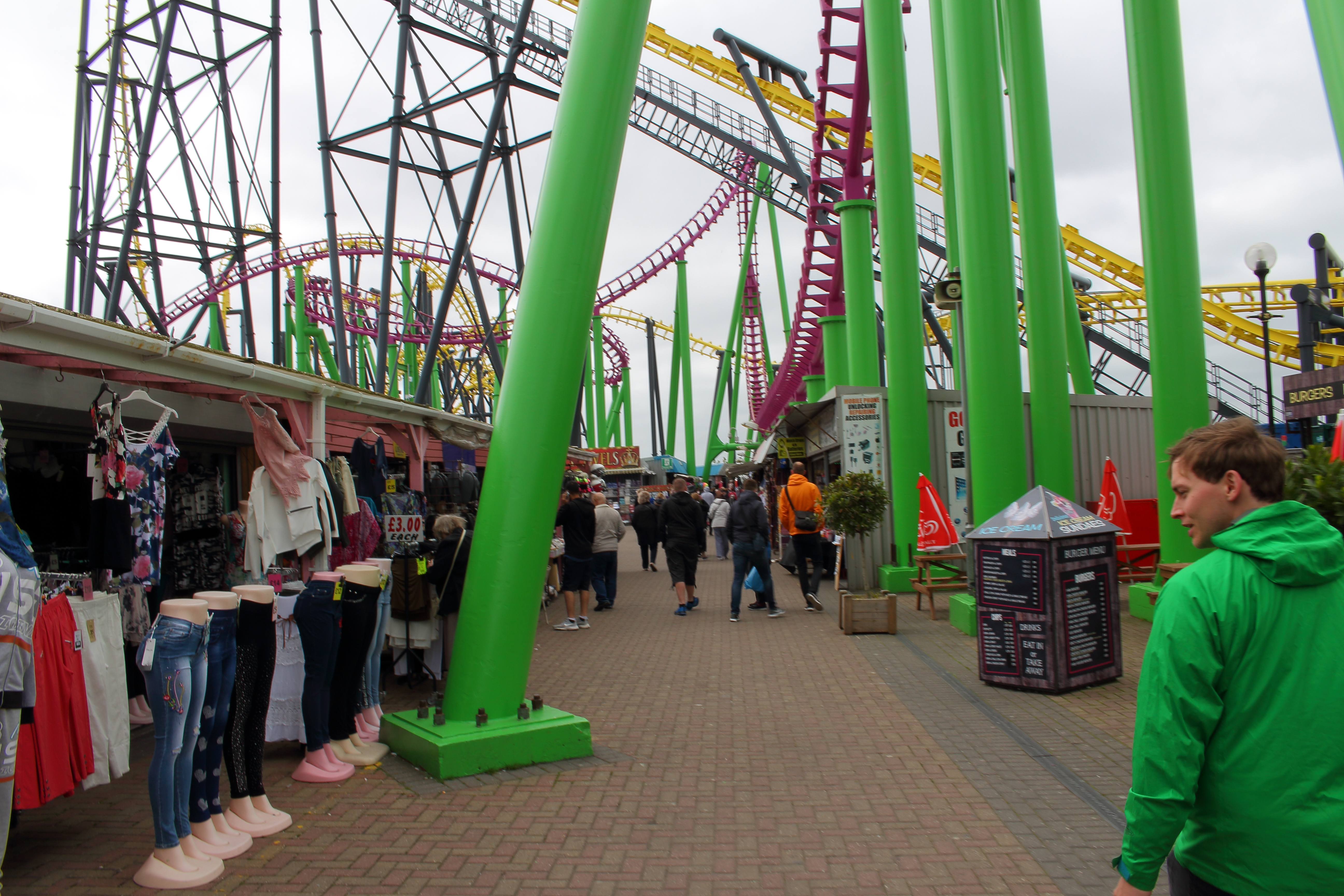Im Anschluss verließen wir das Parkgelände und liefen ein paar Meter an der Promenade entlang. Irgendjemand hat kurz die Idee aufgeworfen, ob wir nicht rüber zum Pleasure Beach laufen. Zum Glück haben wir uns dann doch für das Auto entschieden …