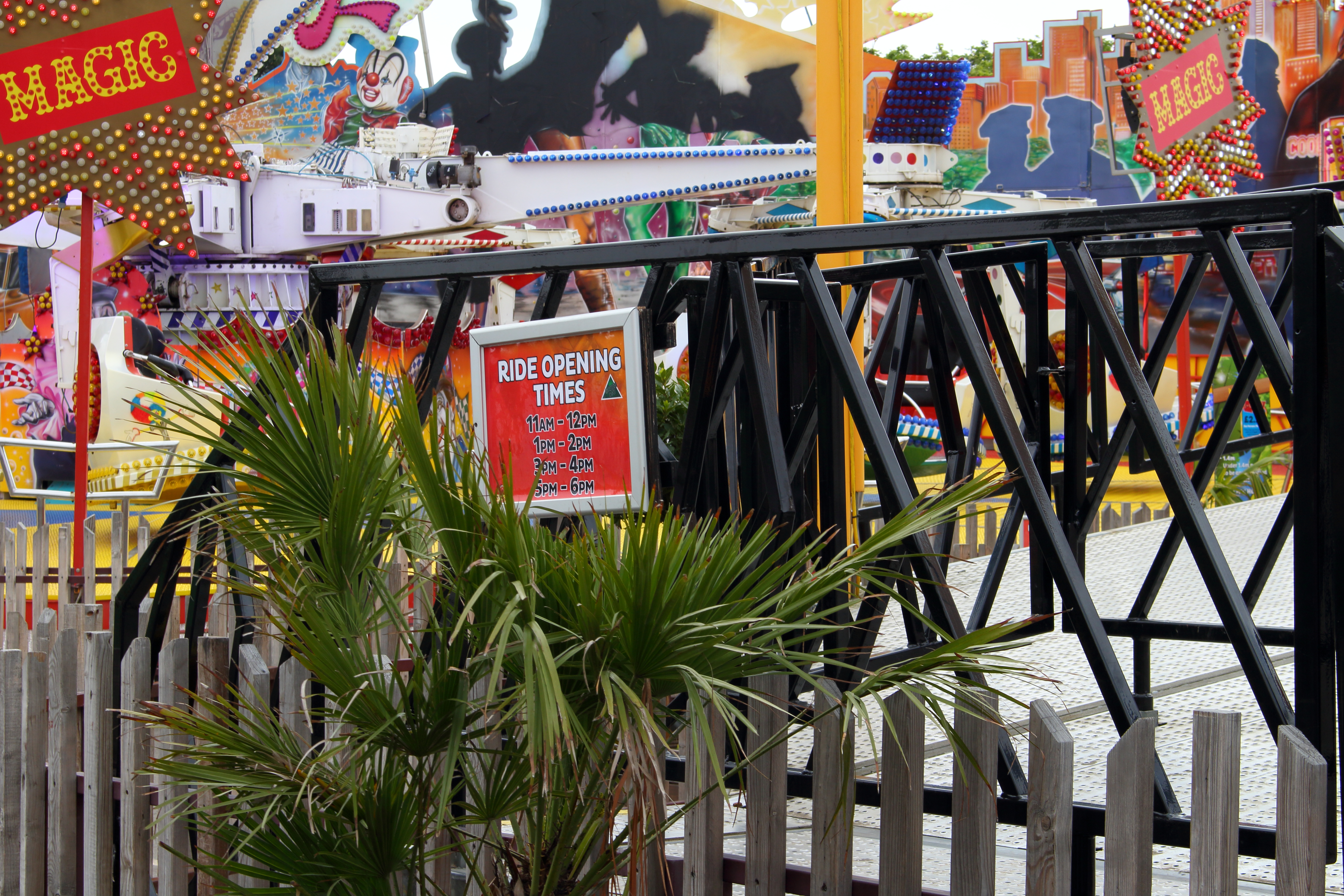 Hier mal eines der Schilder, die an fast jeder Attraktion die Betriebszeiten angegeben haben.