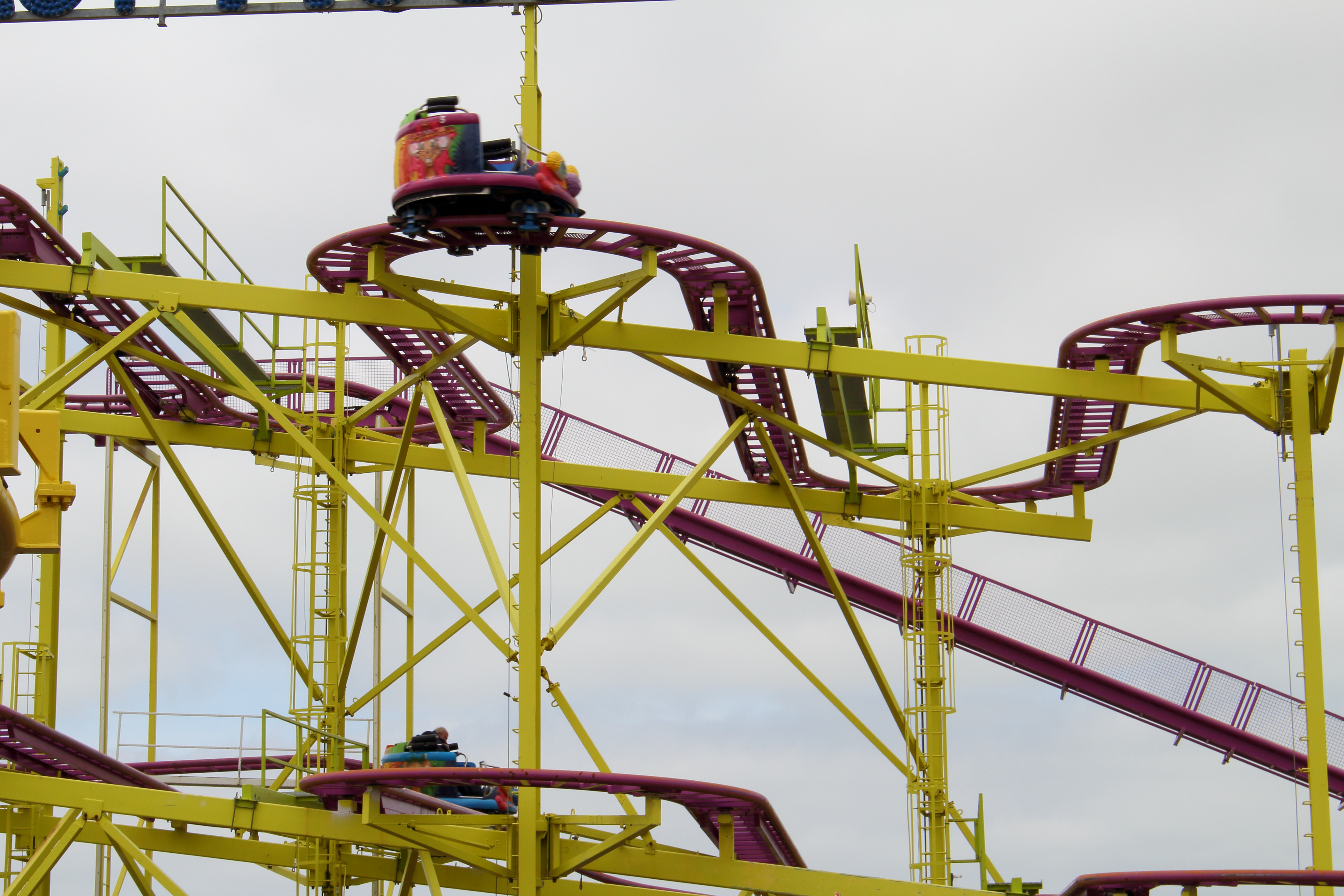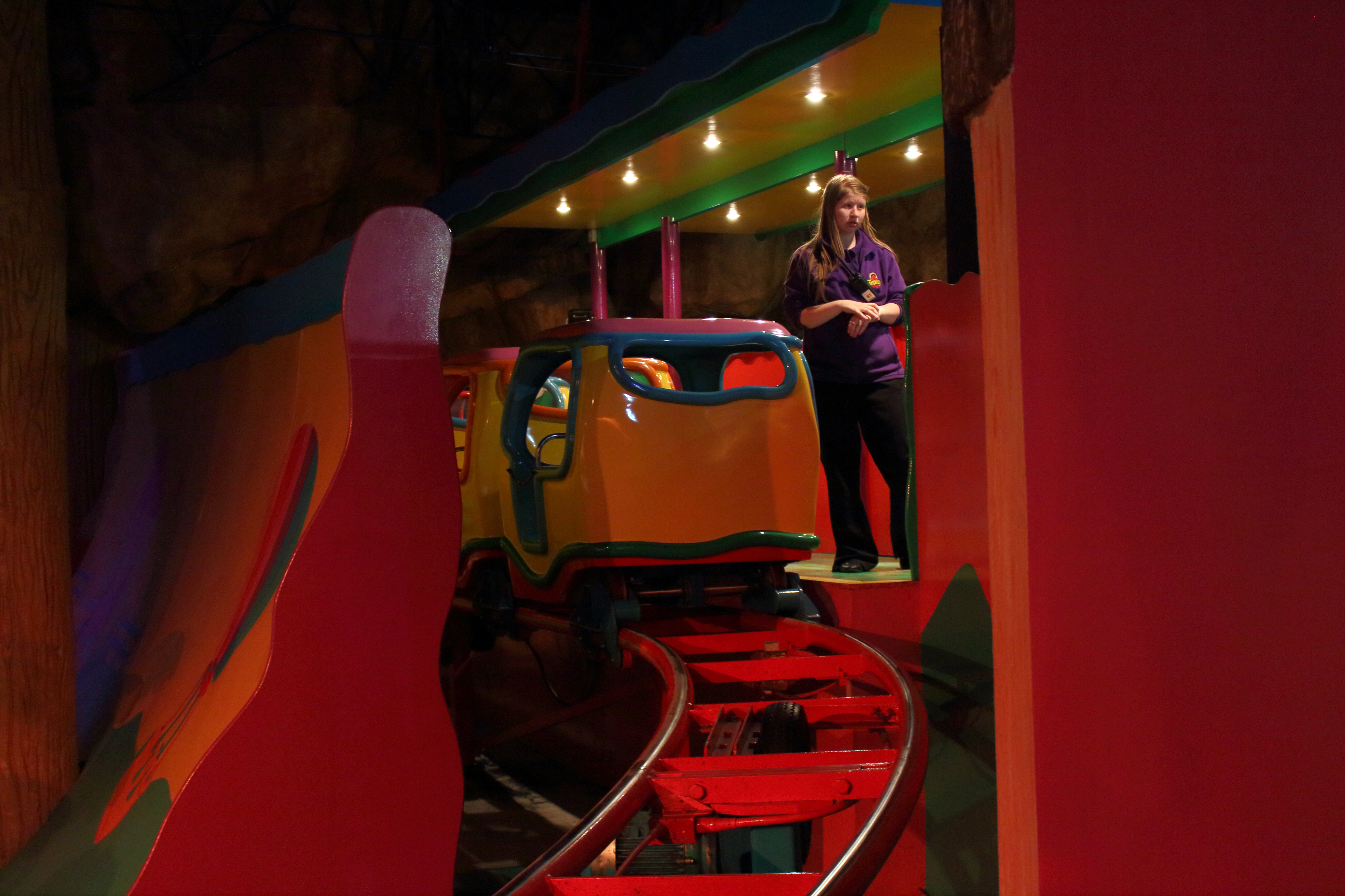Um ehrlich zu sein: Selbst wenn ich gekonnt hätte, hätte ich mich da nicht reingesetzt. Wobei es verrenken eher treffen würde. Eigentlich die perfekte Outdoor-Achterbahn für Kinder. Hier aber eben Indoor.
