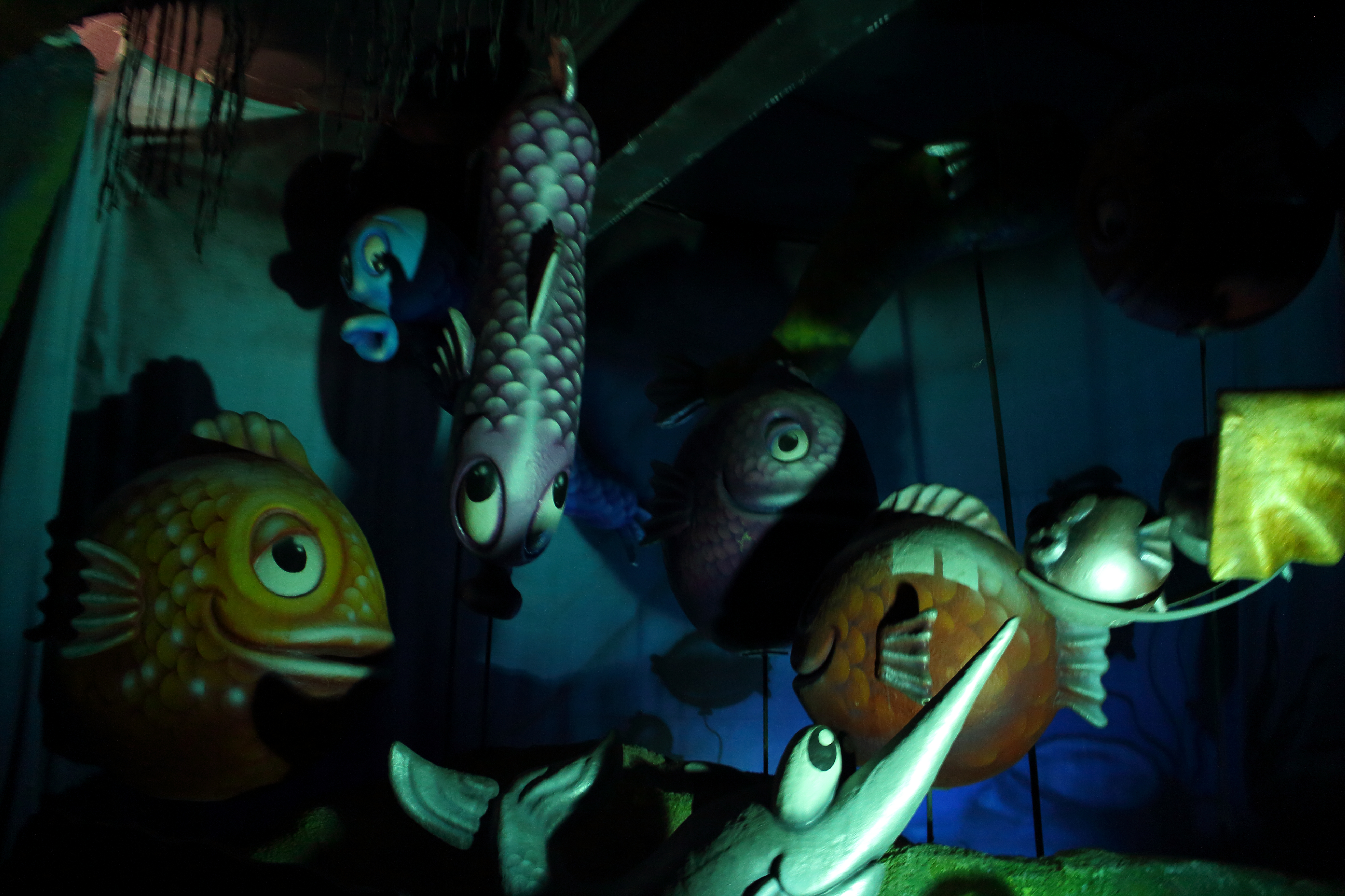 Die Boote schippern dann in der untersten Ebene der Pyramide an Unterwasserszenen vorbei, die auch mal animiert sind.